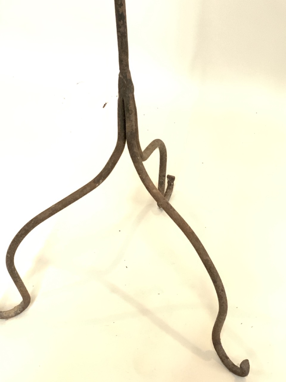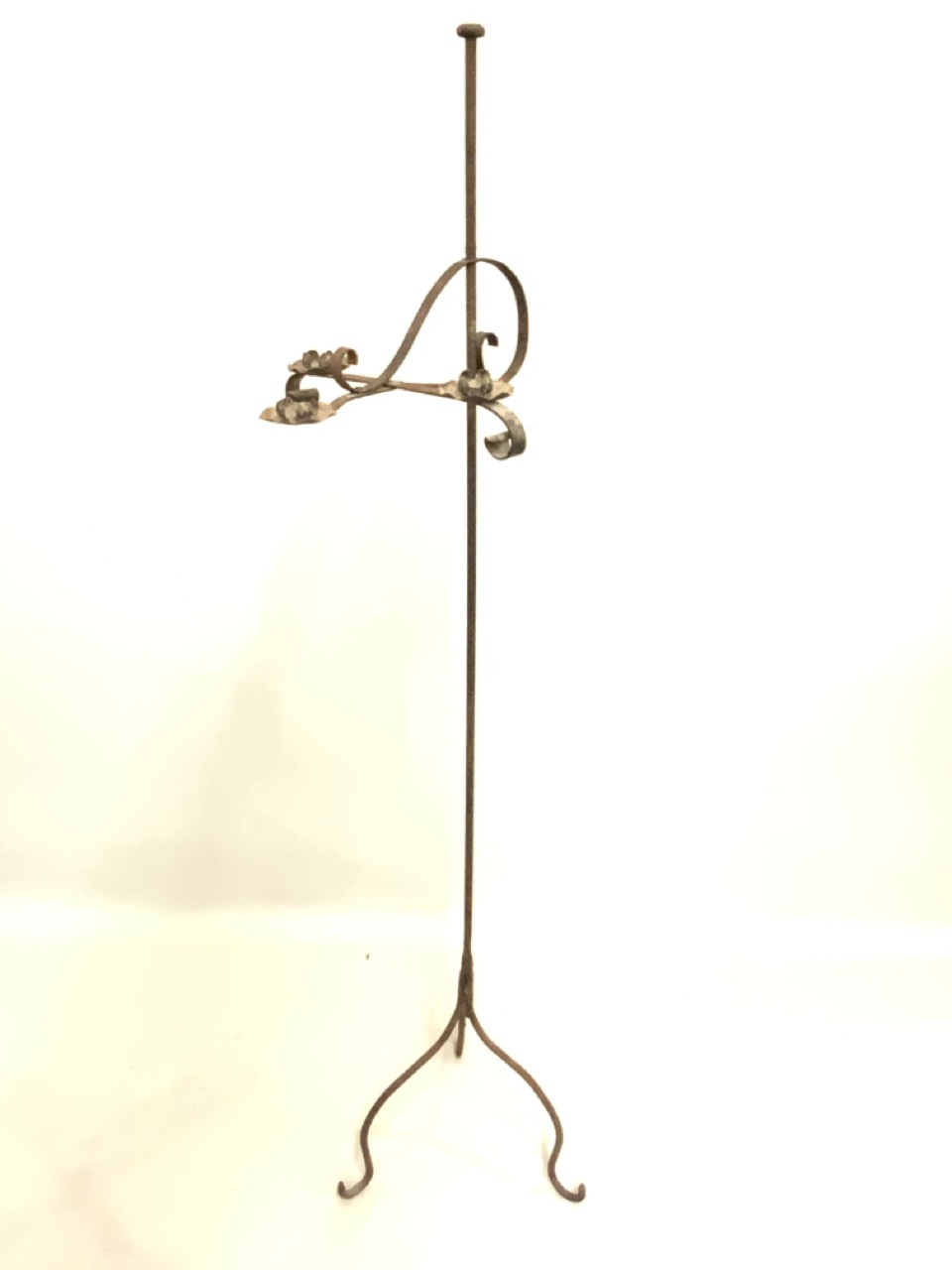 Adjustable 19th century Primitive three arm iron candle floor lamp.