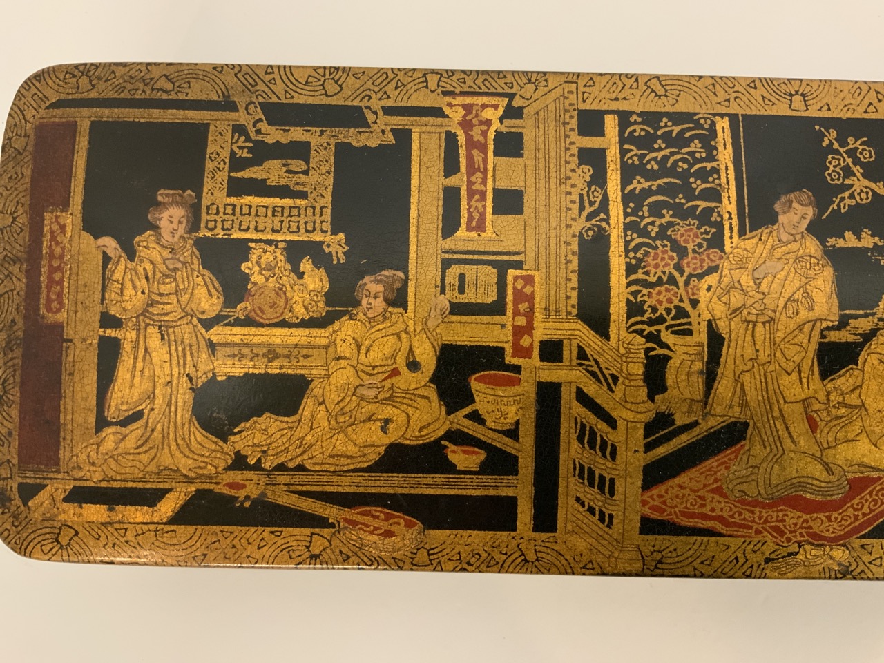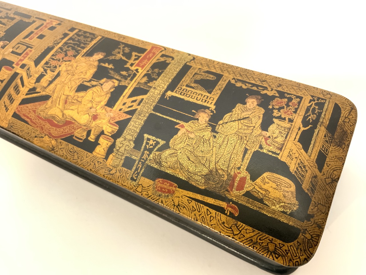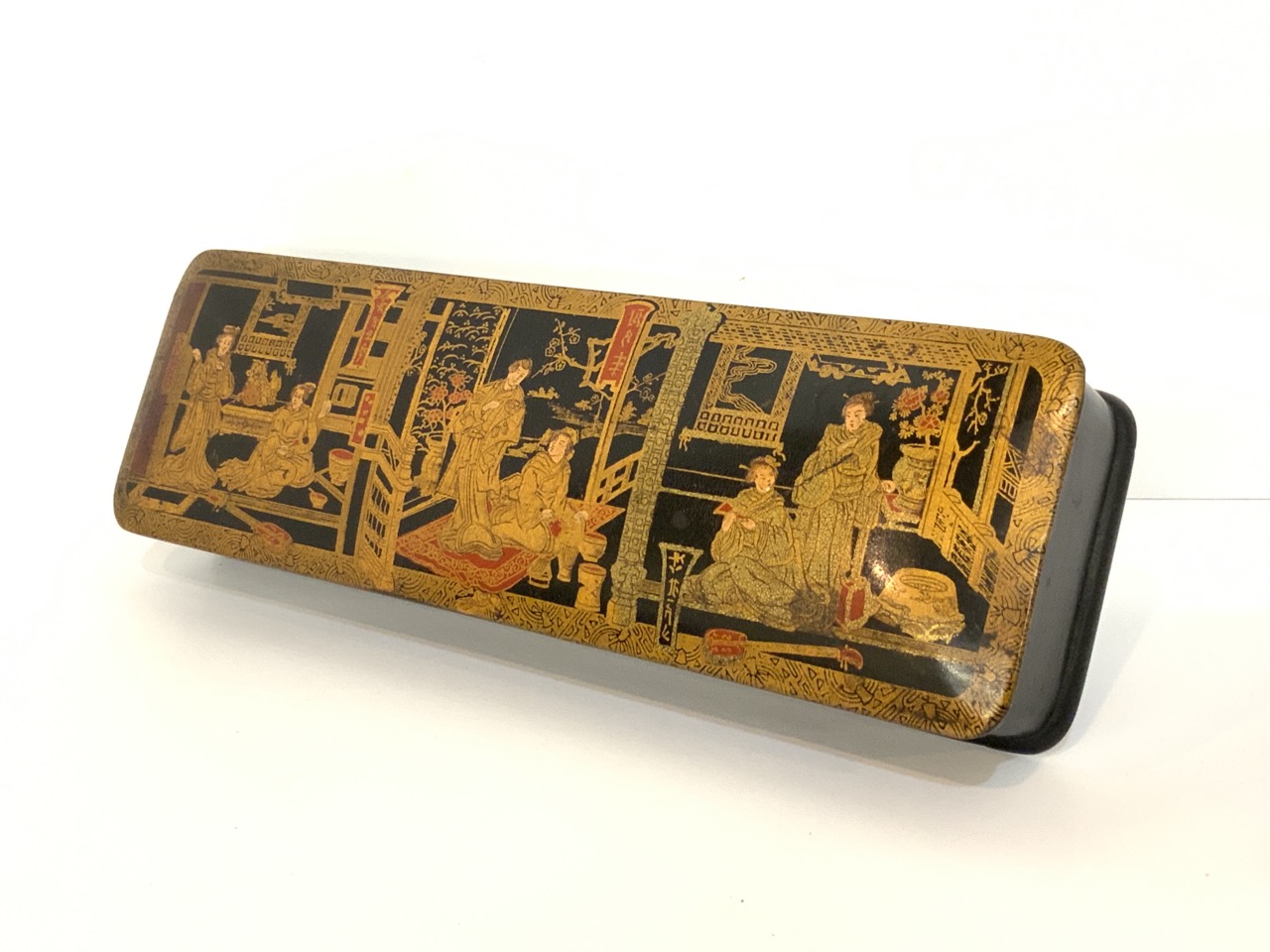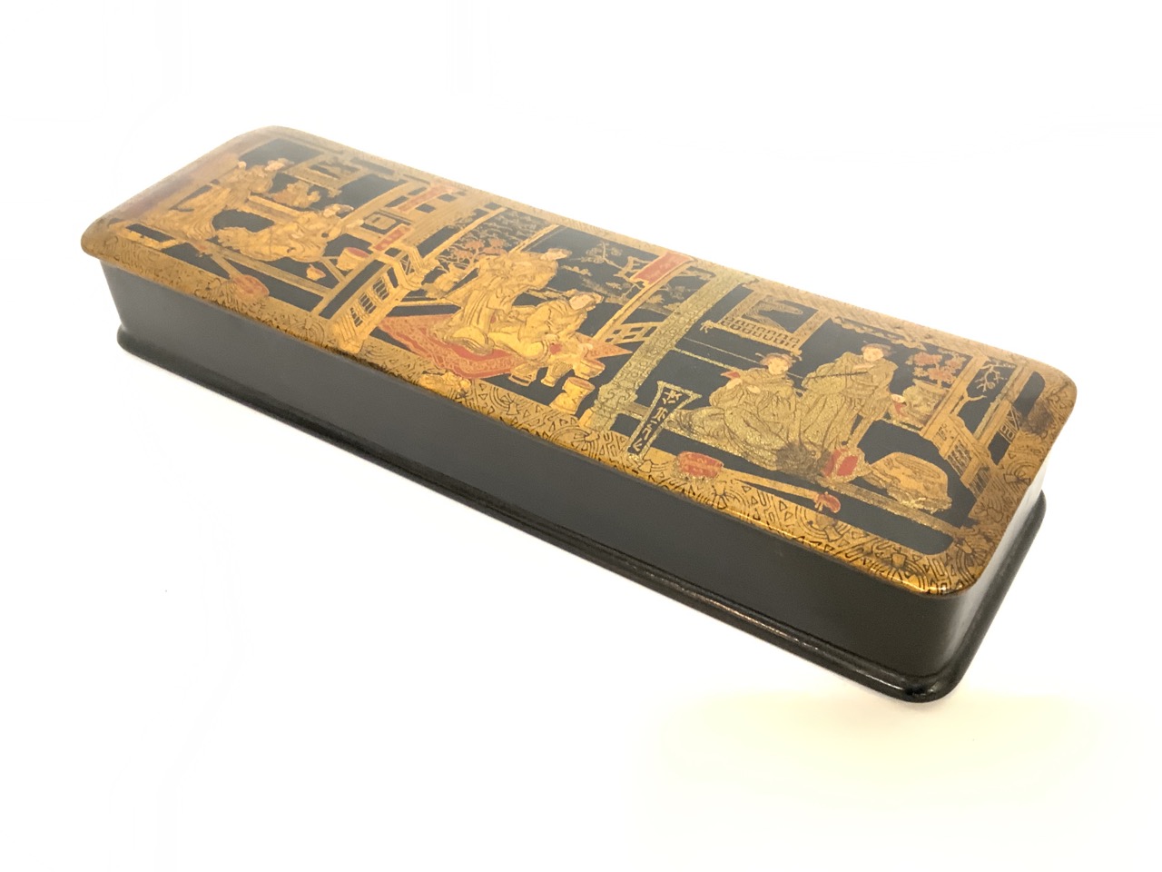 Japanese black lacquered with gold gilt glove box.