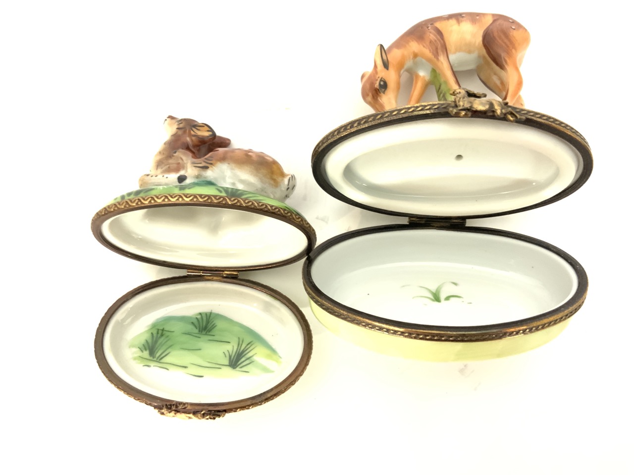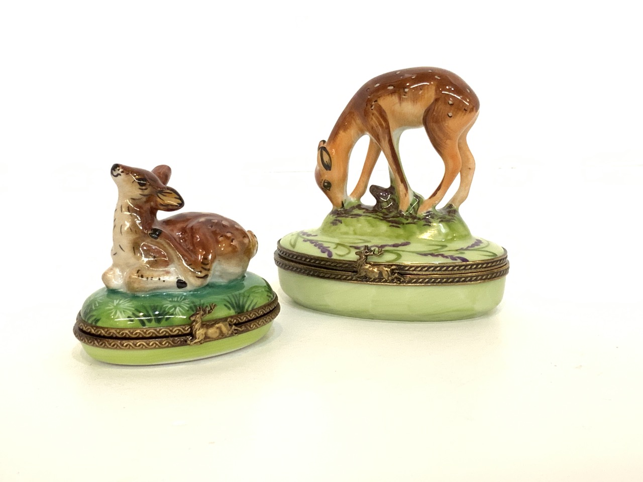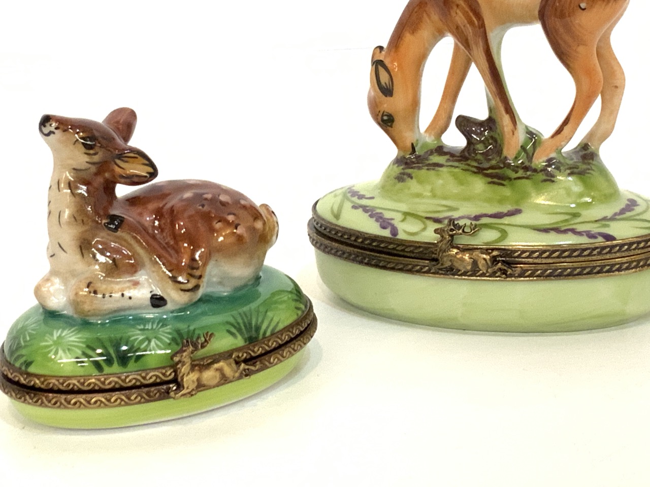 Two (2) Limoges porcelain miniature boxes with deer.