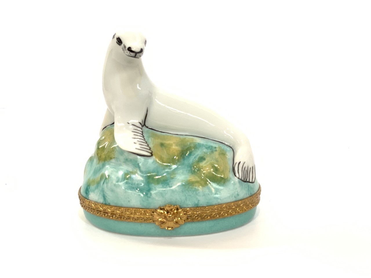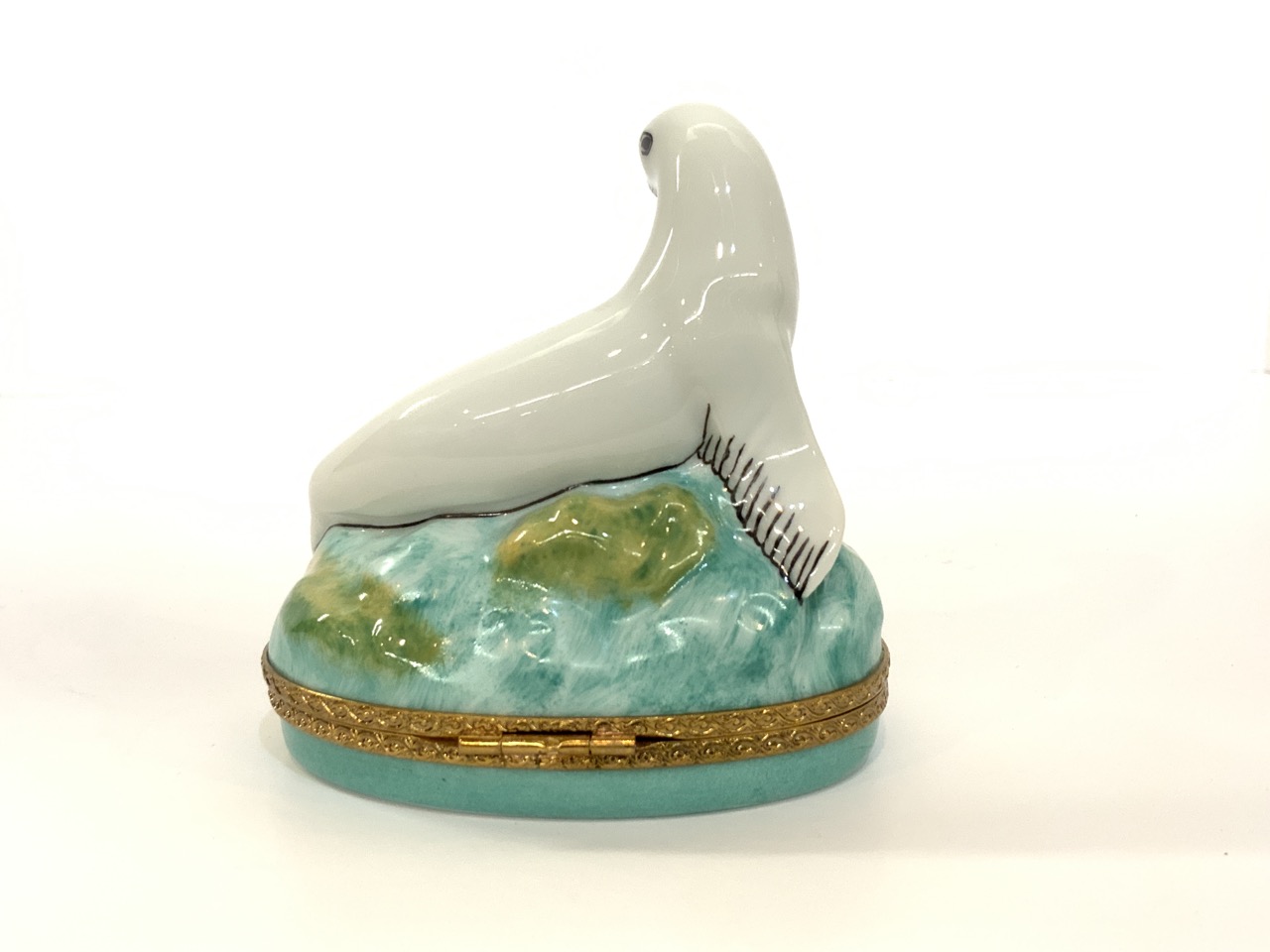 A large Limoges porcelain miniature box with Seal or Sea Lion.