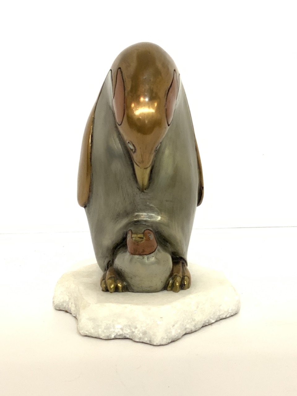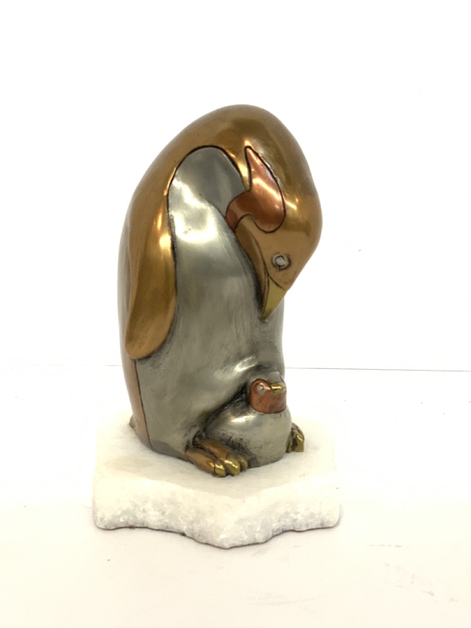 1986 Chesney Studios penguin sculpture. Mixed metal with bronze, copper and brass.