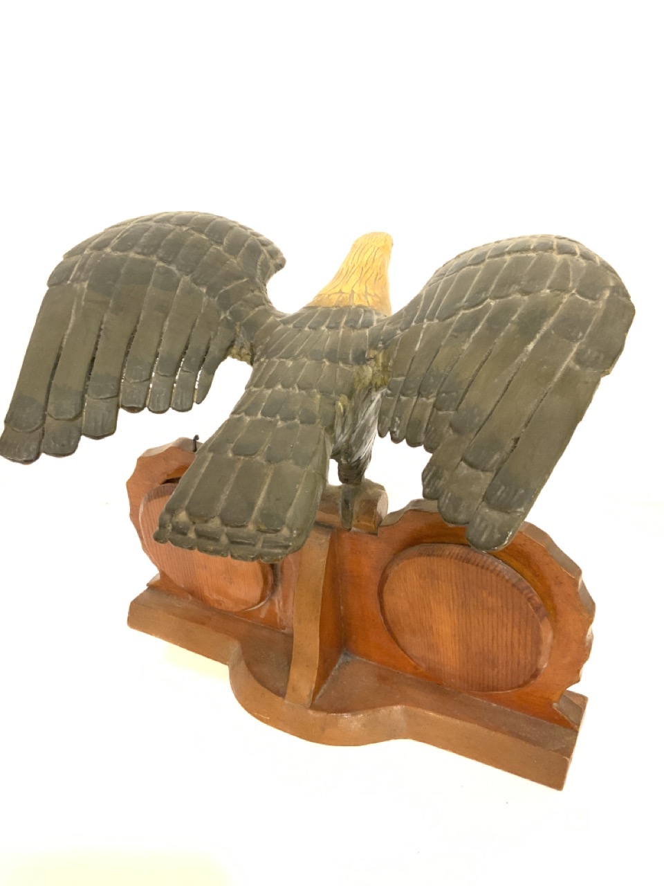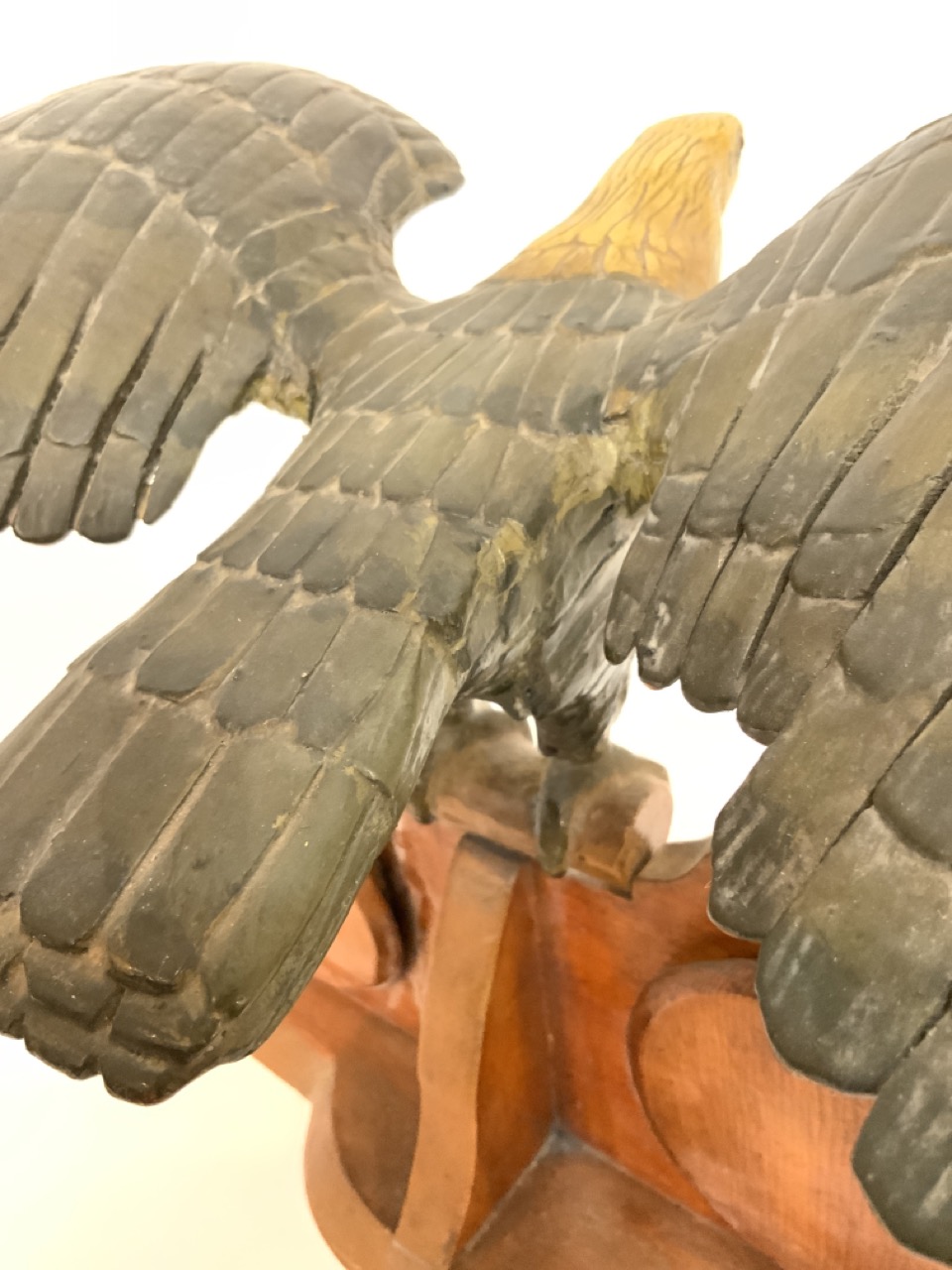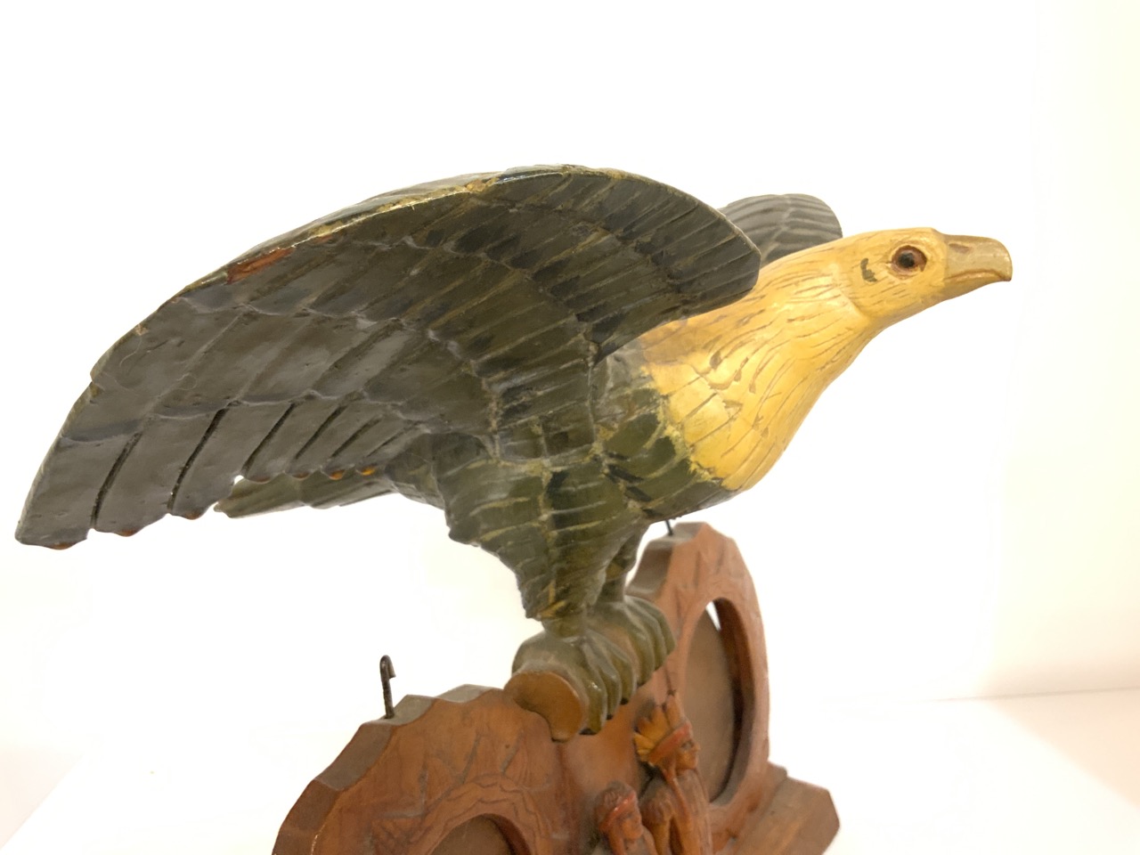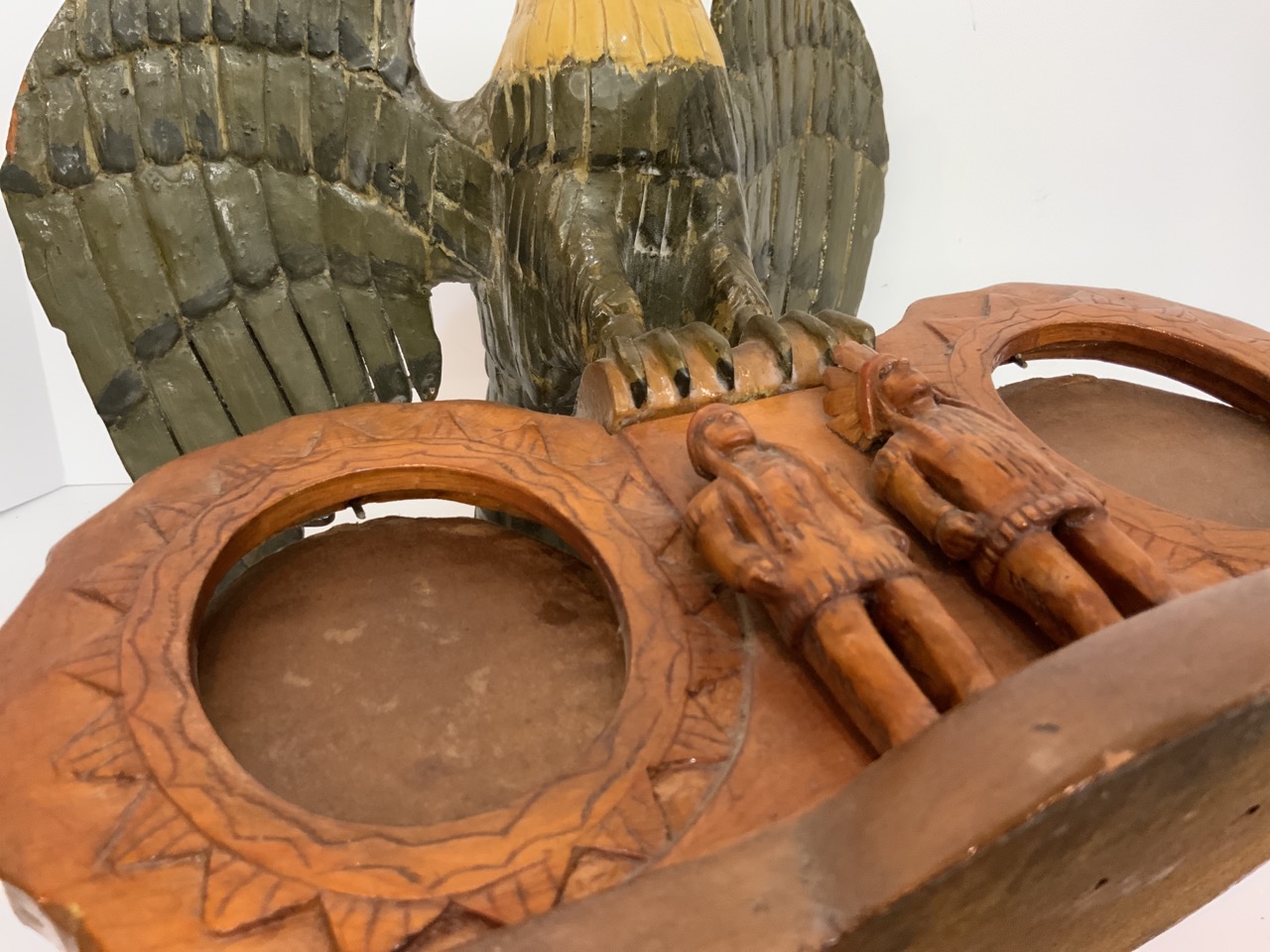 Americana carved folk art wood frame with eagle, double frame and hand carved American Indians at front and center.