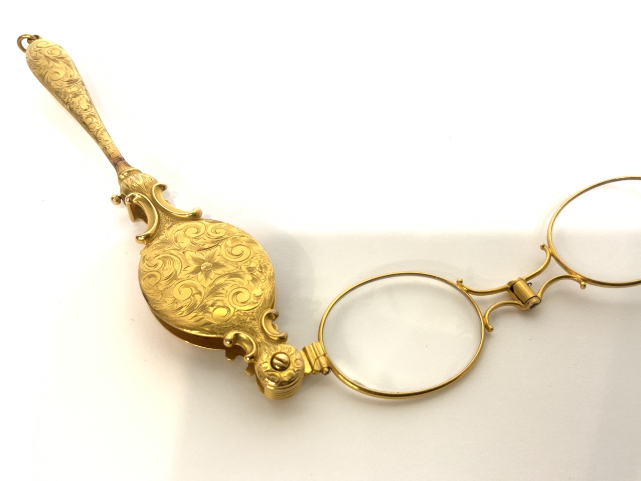 A fine pair of 14k yellow gold opera glasses. Early 20th century.