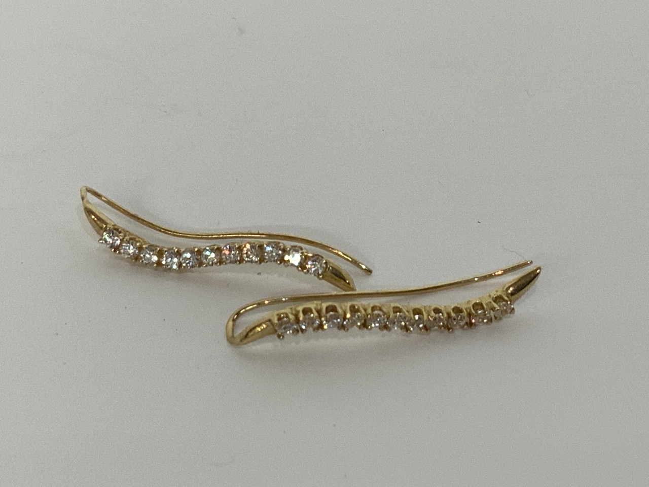 A pair of diamond earrings. Drop design with eleven brilliant diamond points.