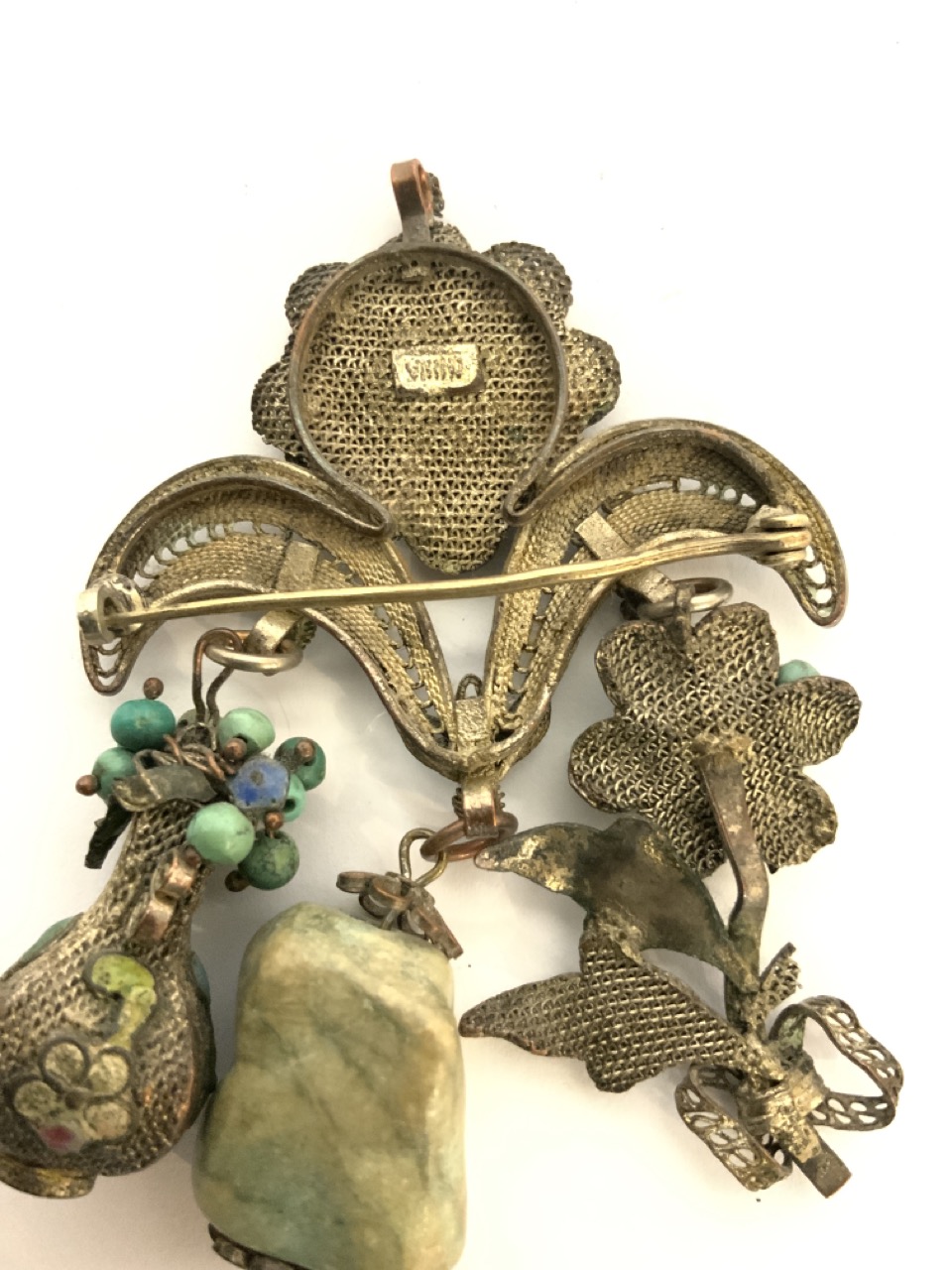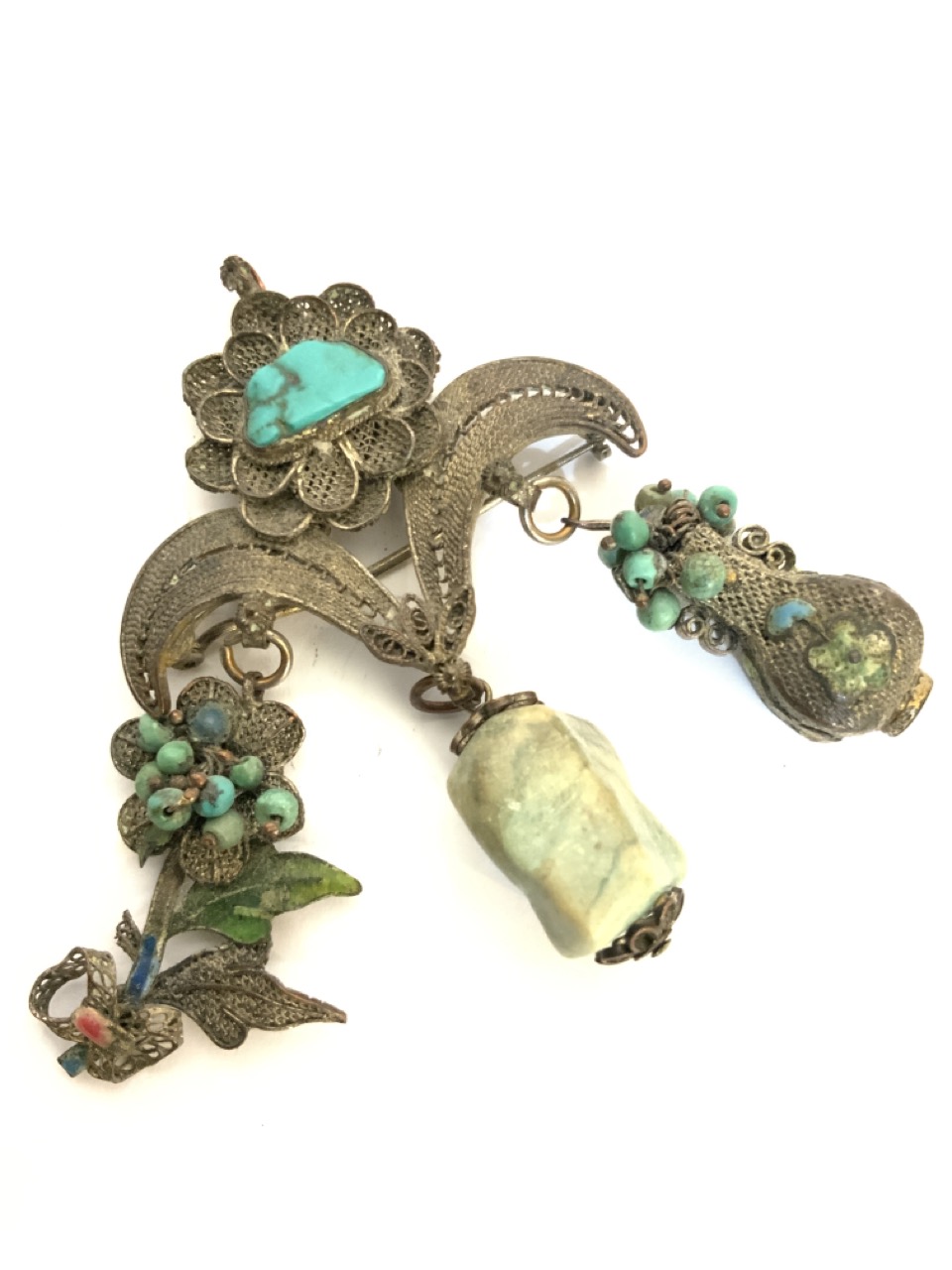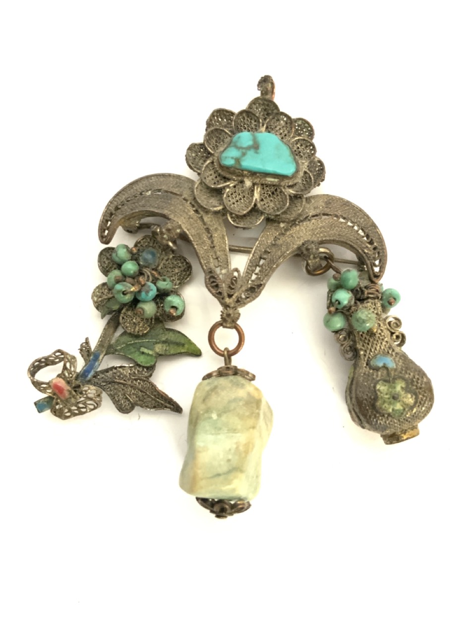 Chinese turquoise filligree brooch pin.