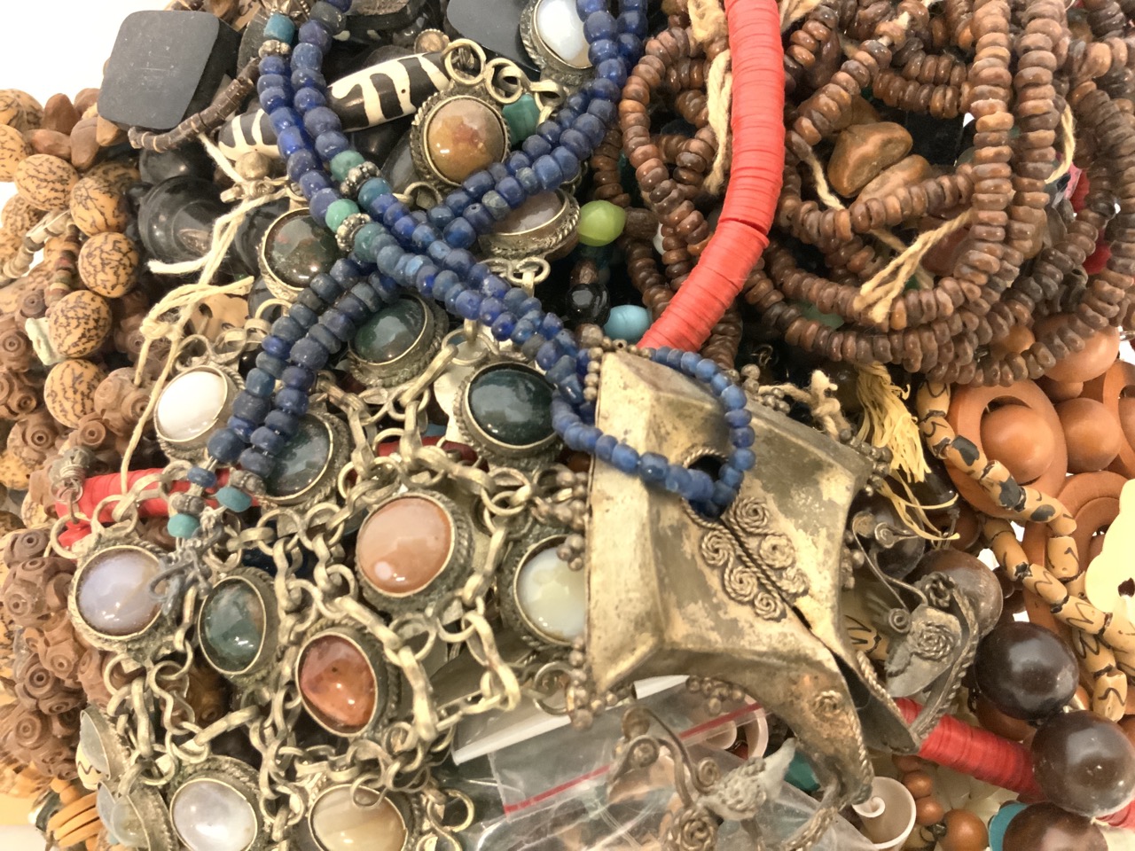 Eleven (11) pounds of assorted tribal trade beads and jewelry. Mid Eastern, African, Asian etc.