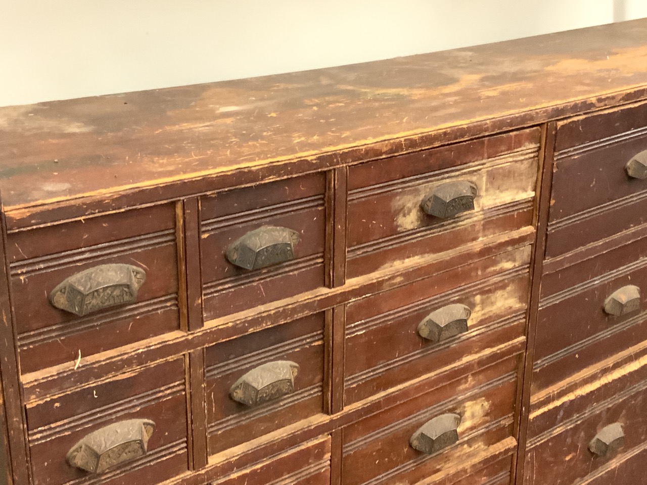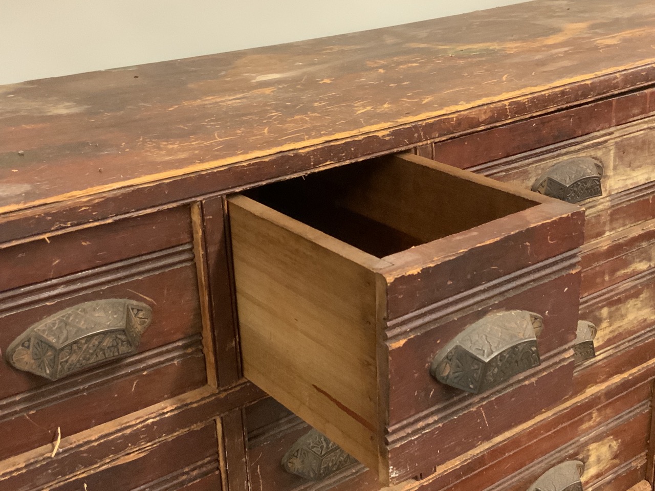 Pantry Cabinet with twenty one drawers at base and shelf top. Finish loss noted. Please see photograph preview or call.