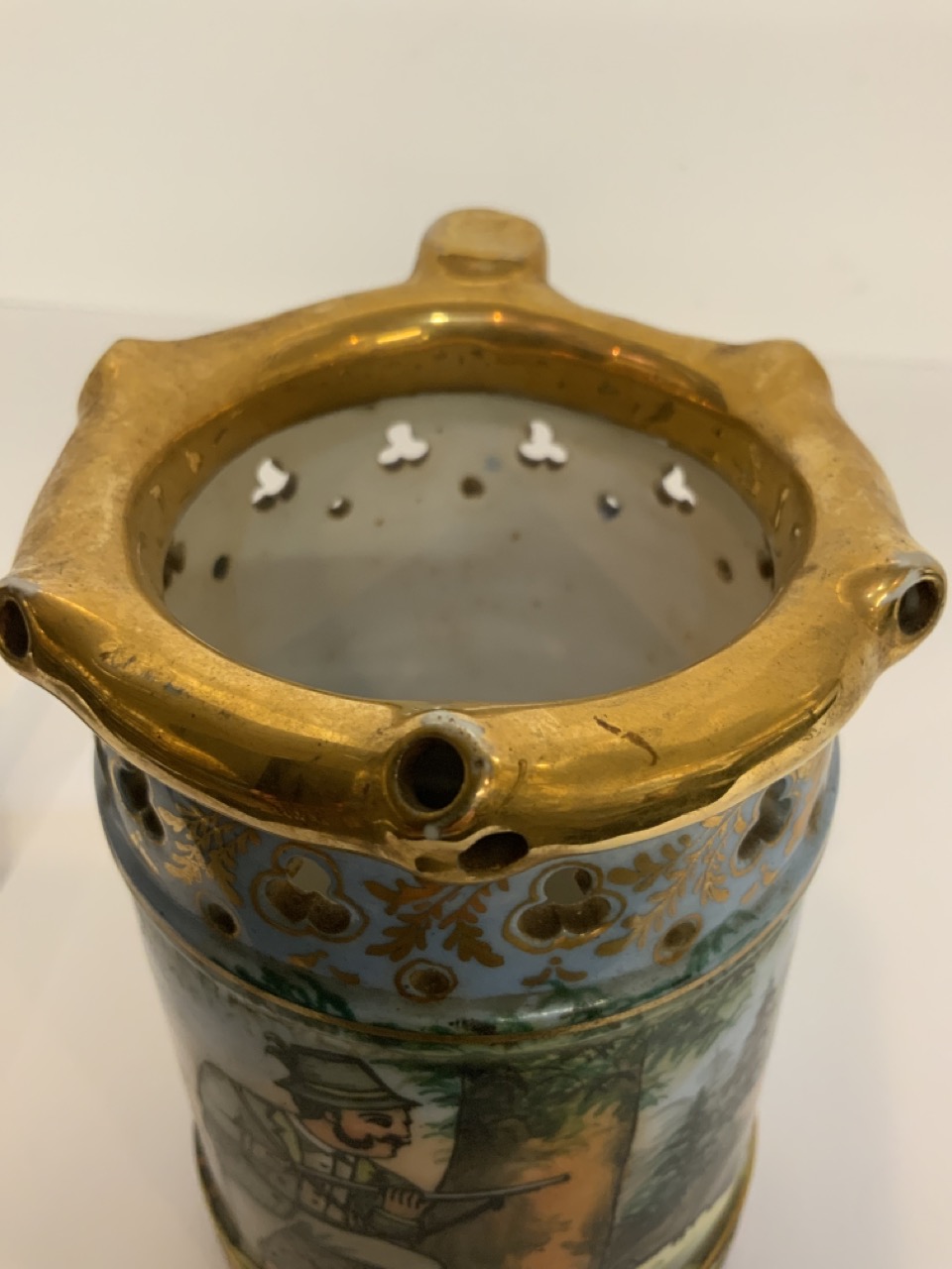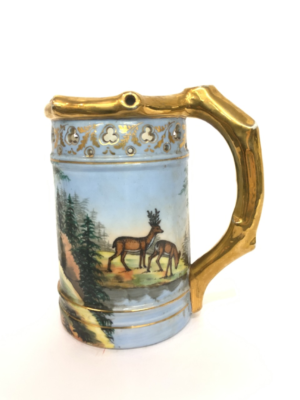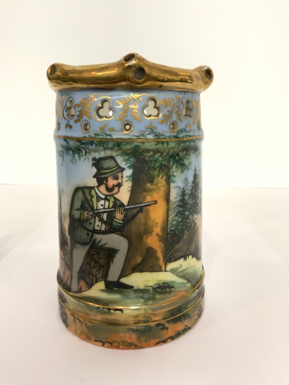 German "Hunt Scene" porcelain tankard.