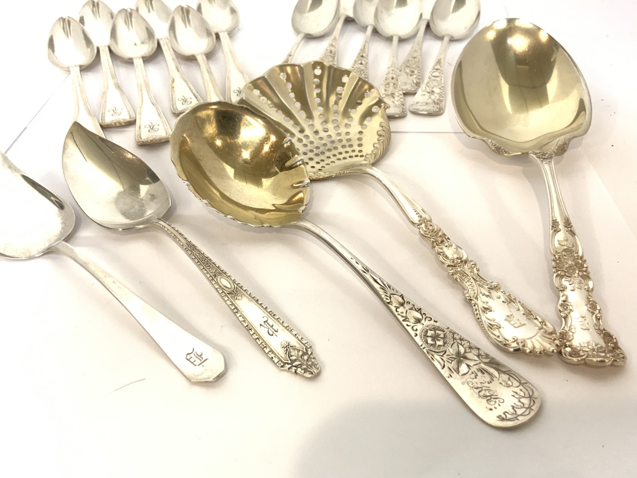 Assorted estate compiled silver flatware grouping. Including Gorham and Frank Whiting...