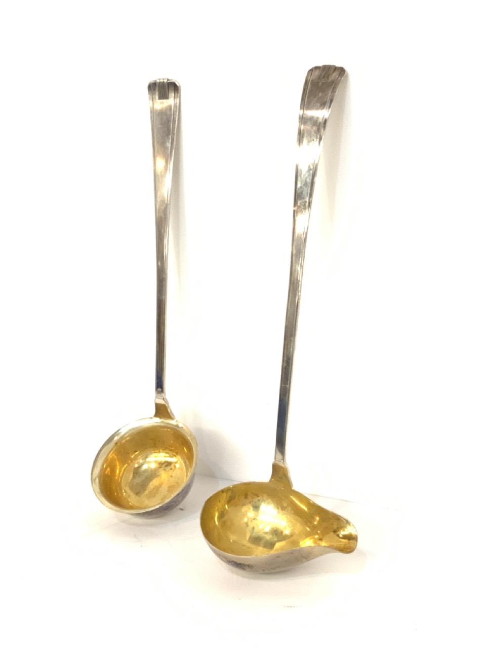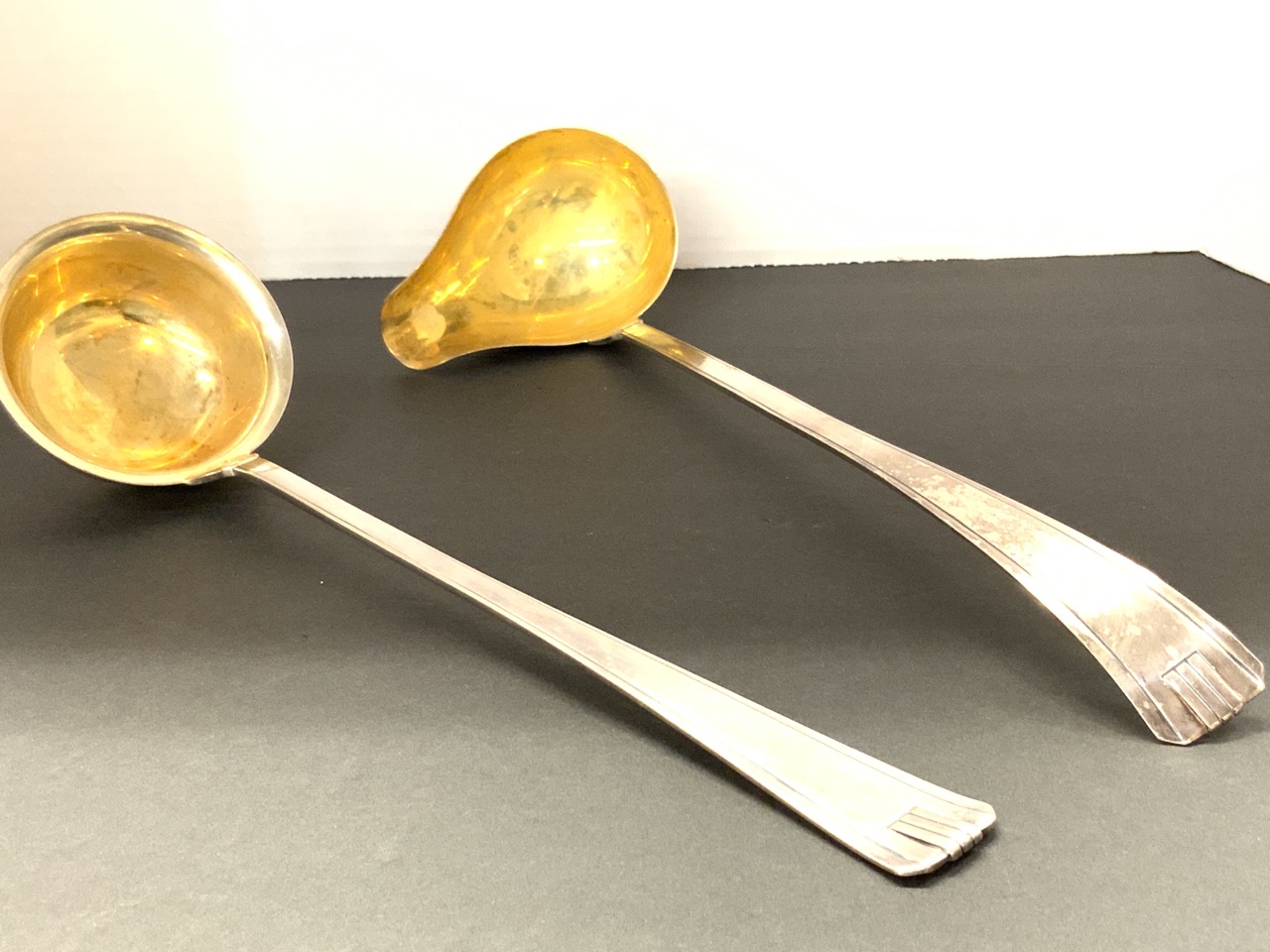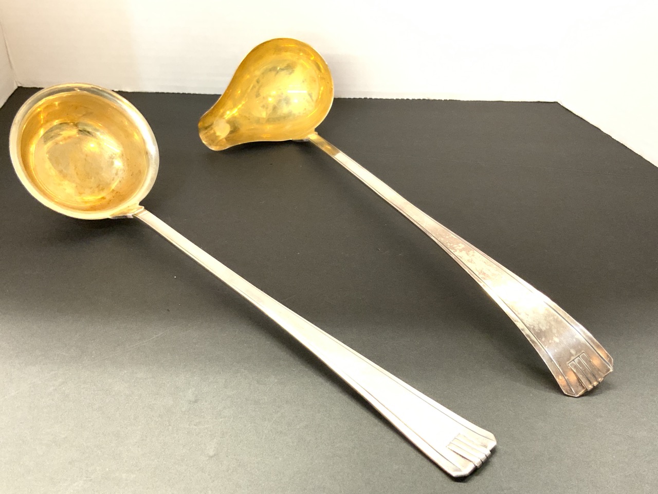 Two (2) Antique 800 European Silver Ladles With Gold Wash.