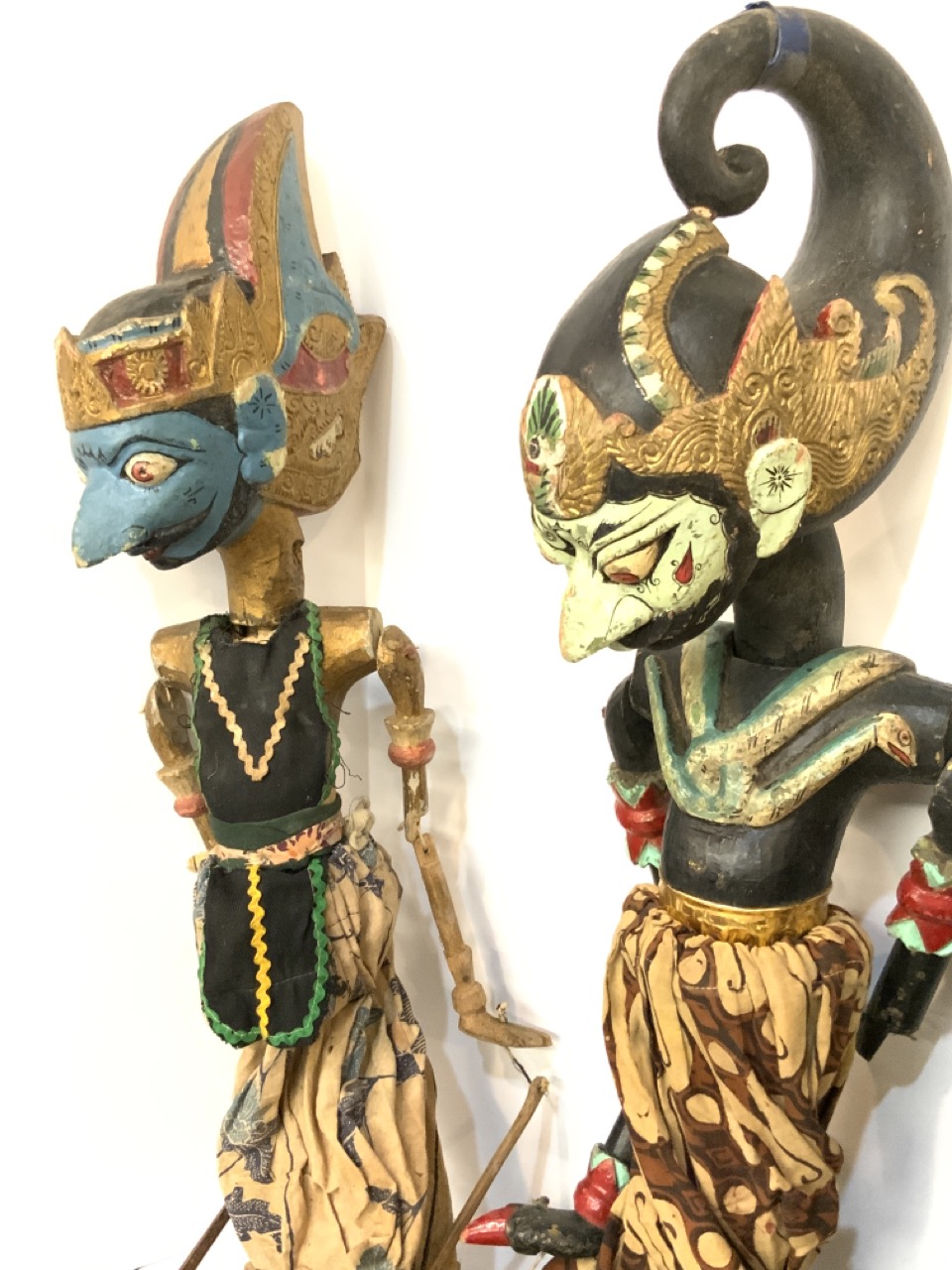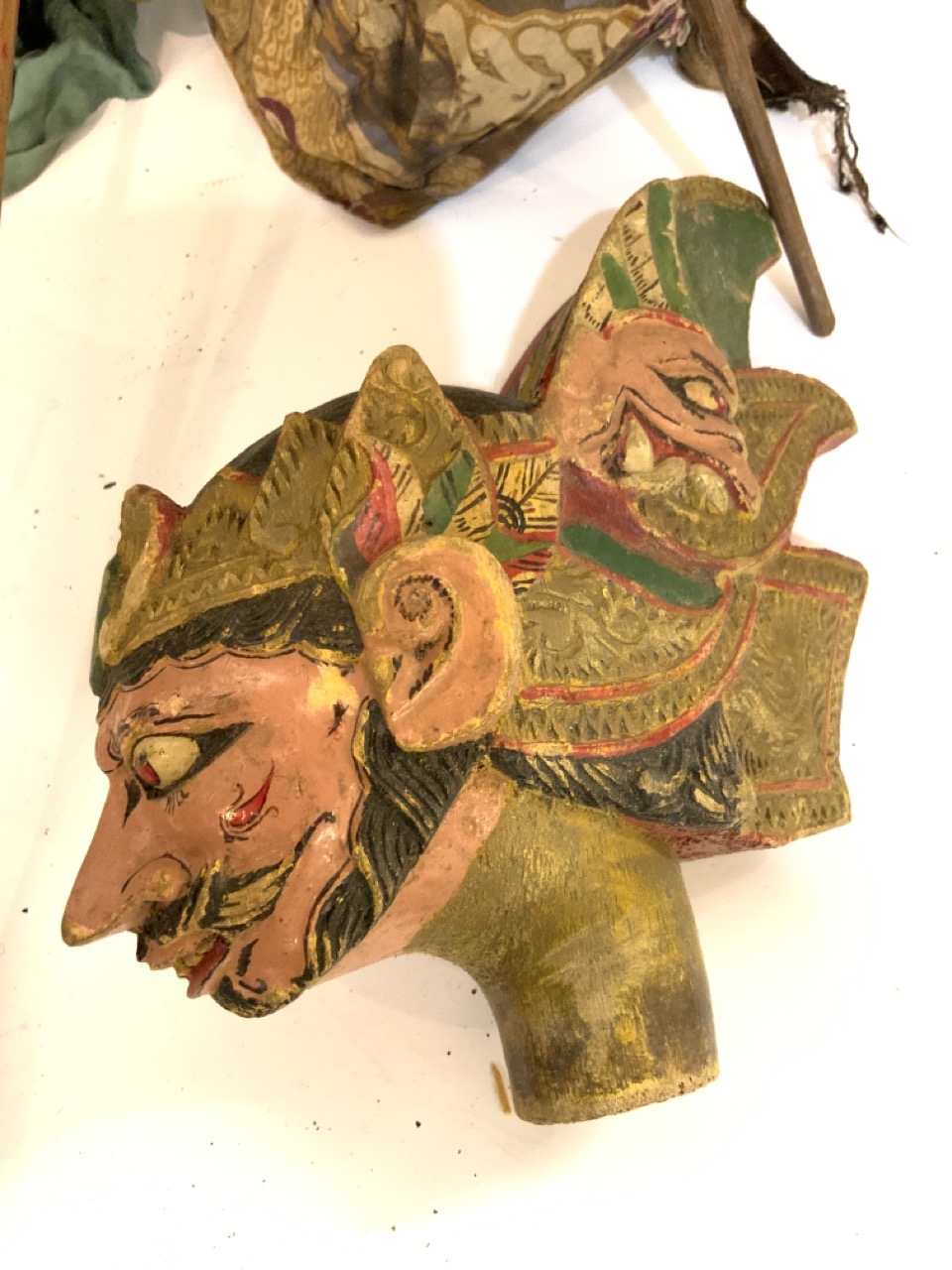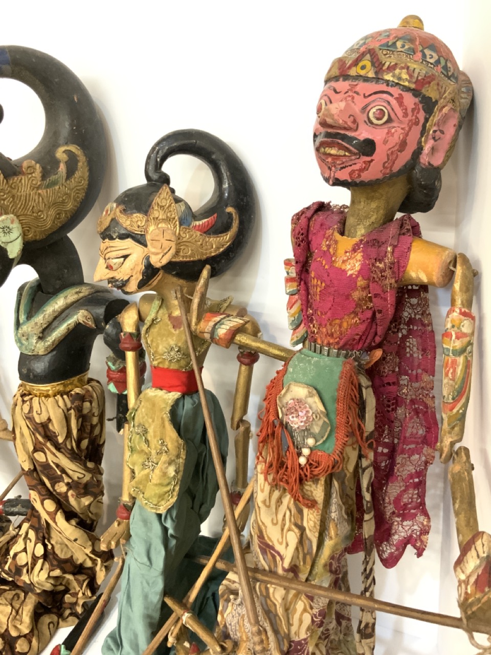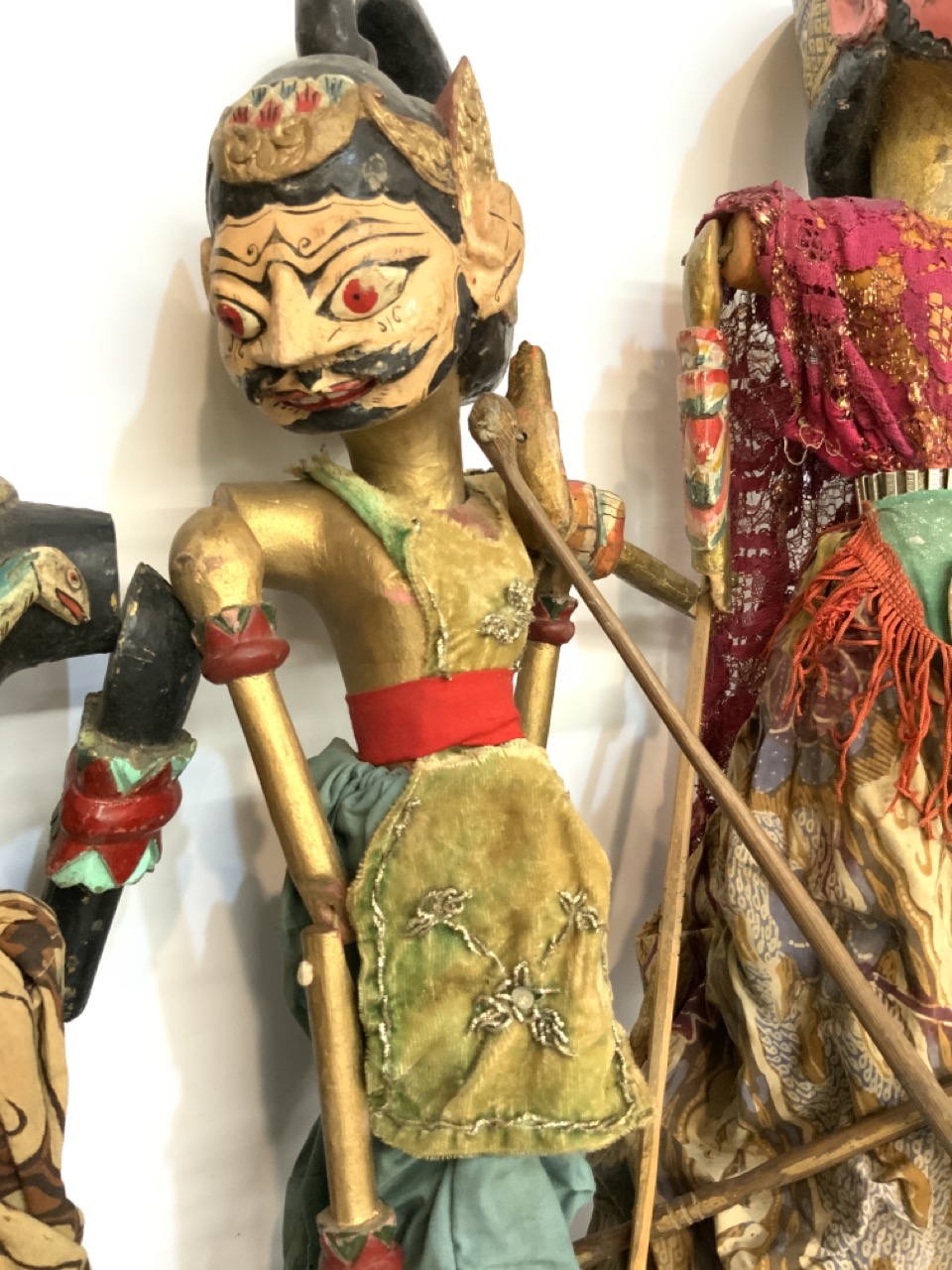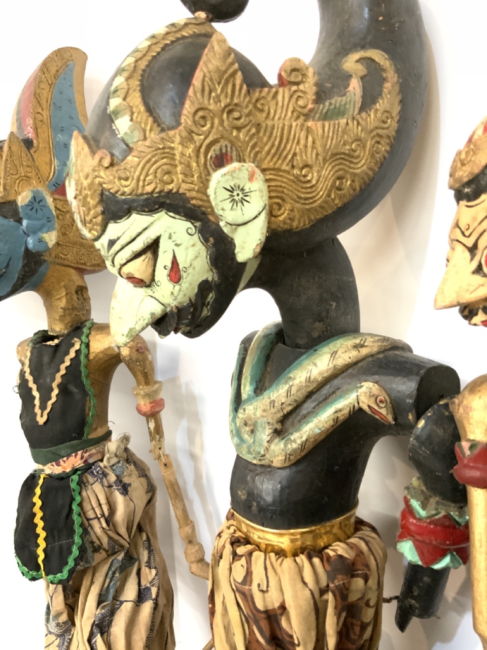 Four (4) Indonesian puppets group. 19th/20th century. Please see photograph preview. Heads may not be exact matches to body as all were found in a trunk and we needed to match. Some damage. Please see photograph preview or call.