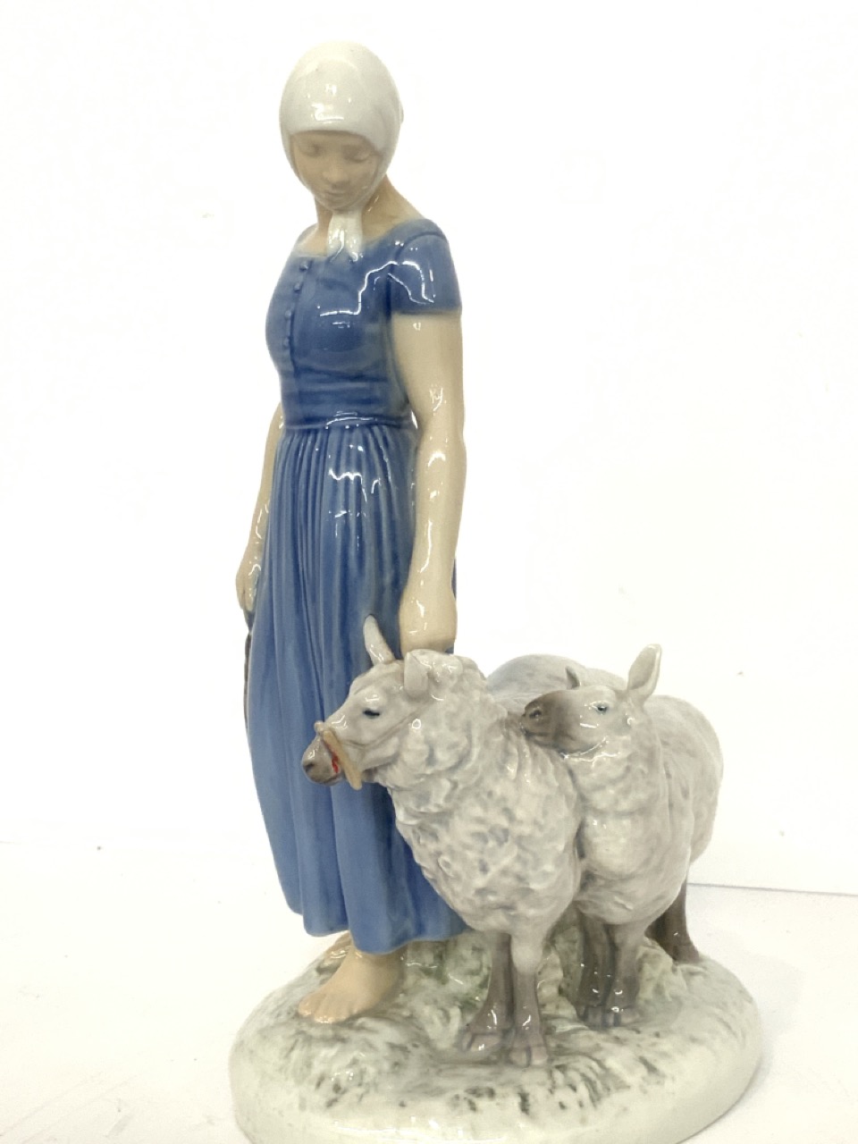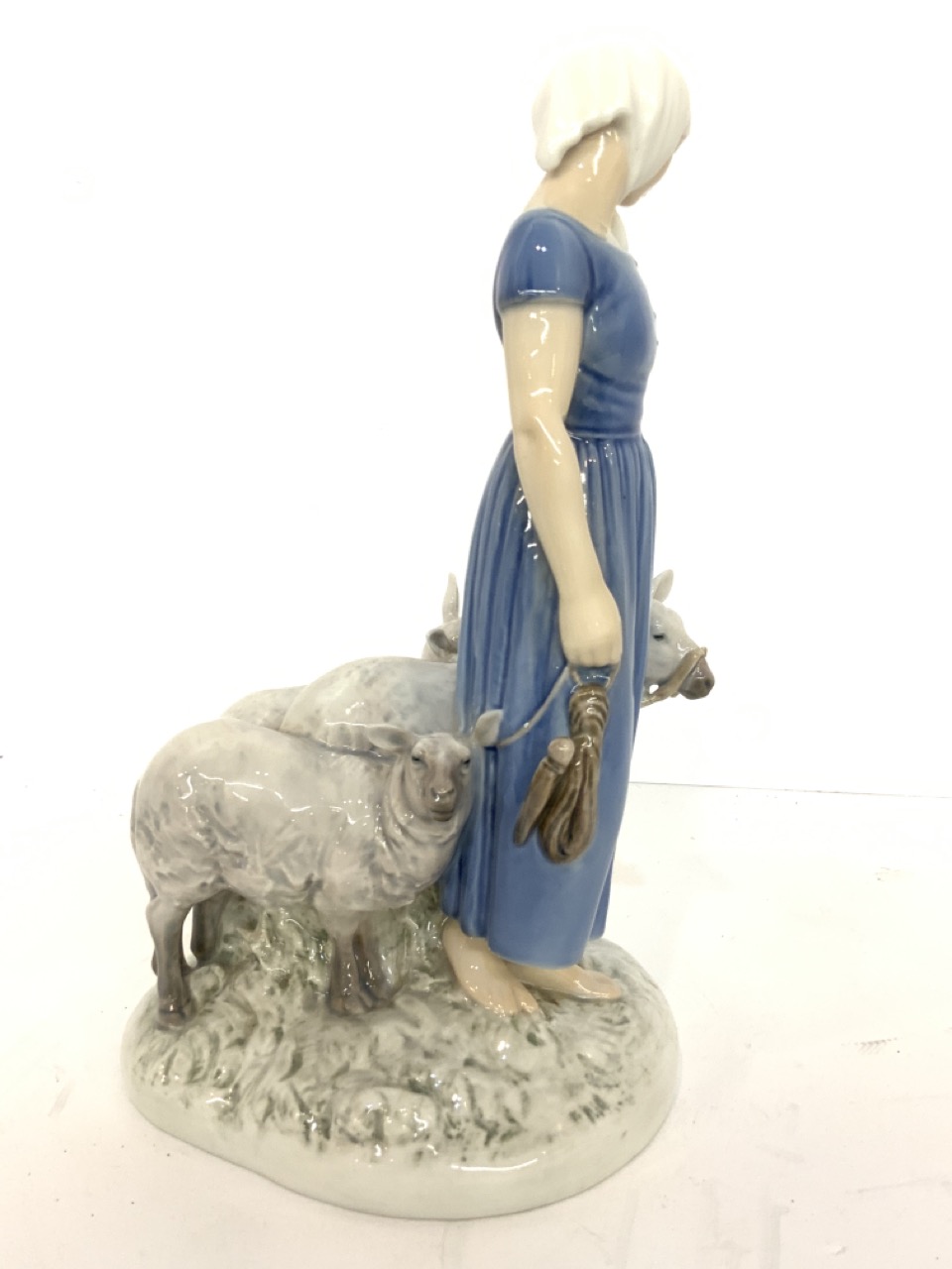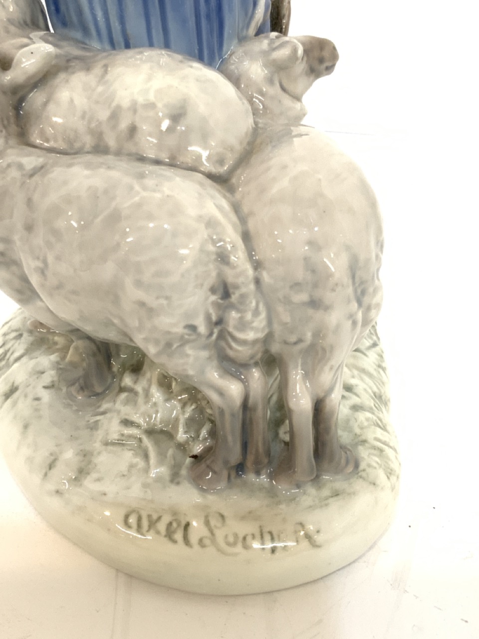 Bing & Grondahl "Girl With Sheep" 2010. Nice full bodied trio of sheep with girl. Signed Axel Locher.