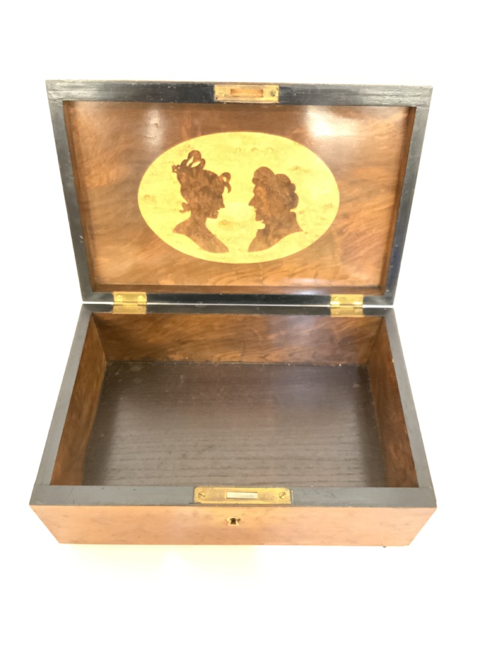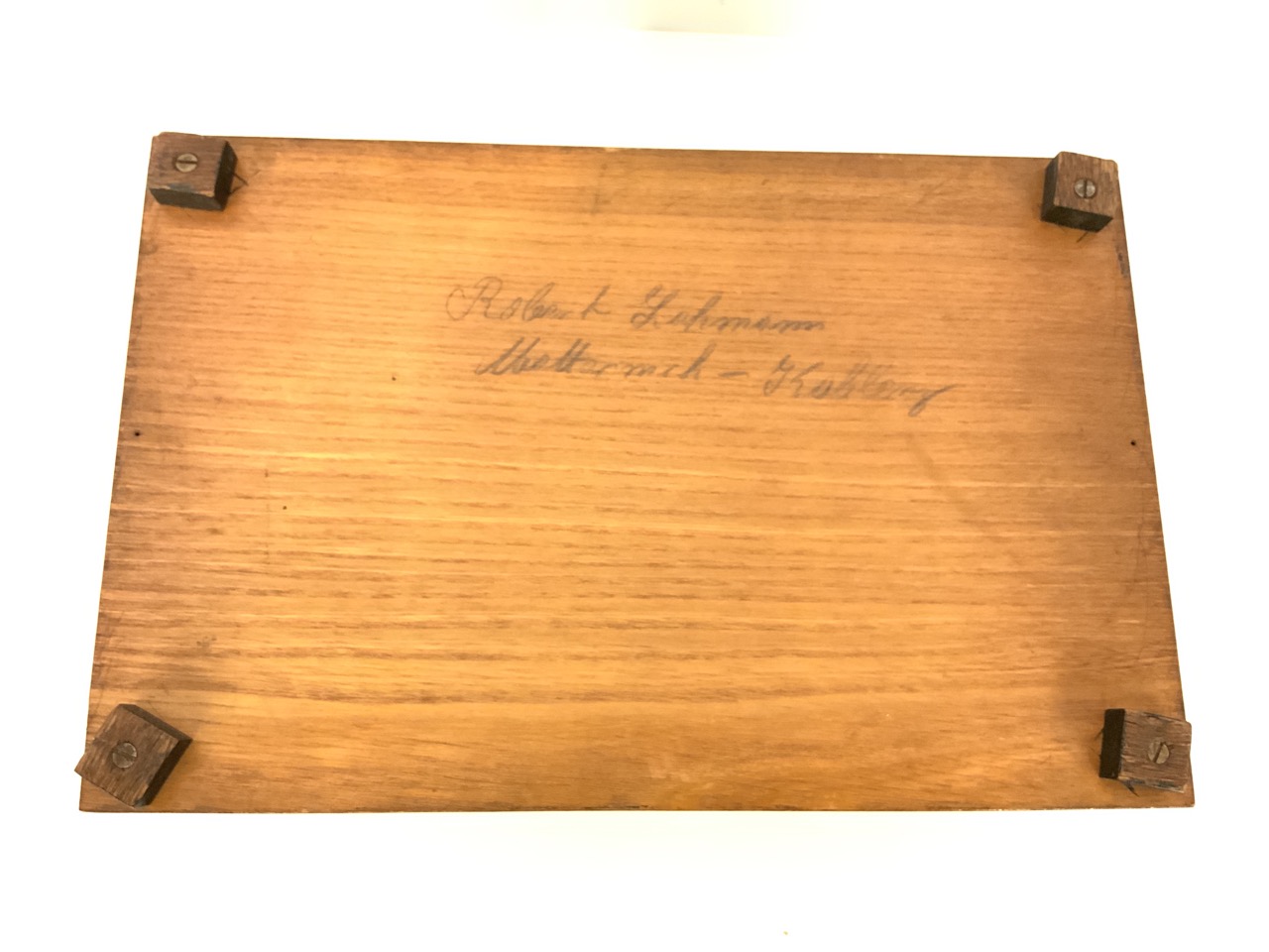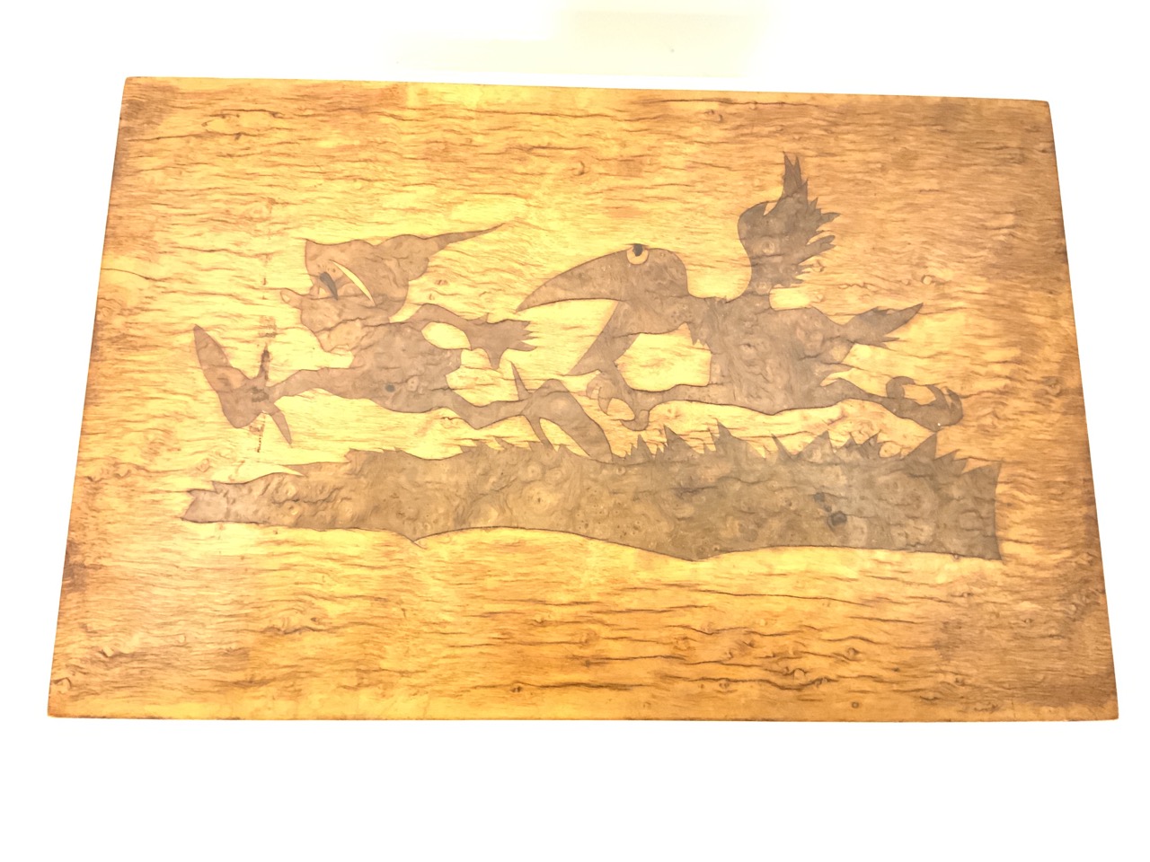 An vintage Pinocchio marquetry box. Pinocchio being chased by giant bird.