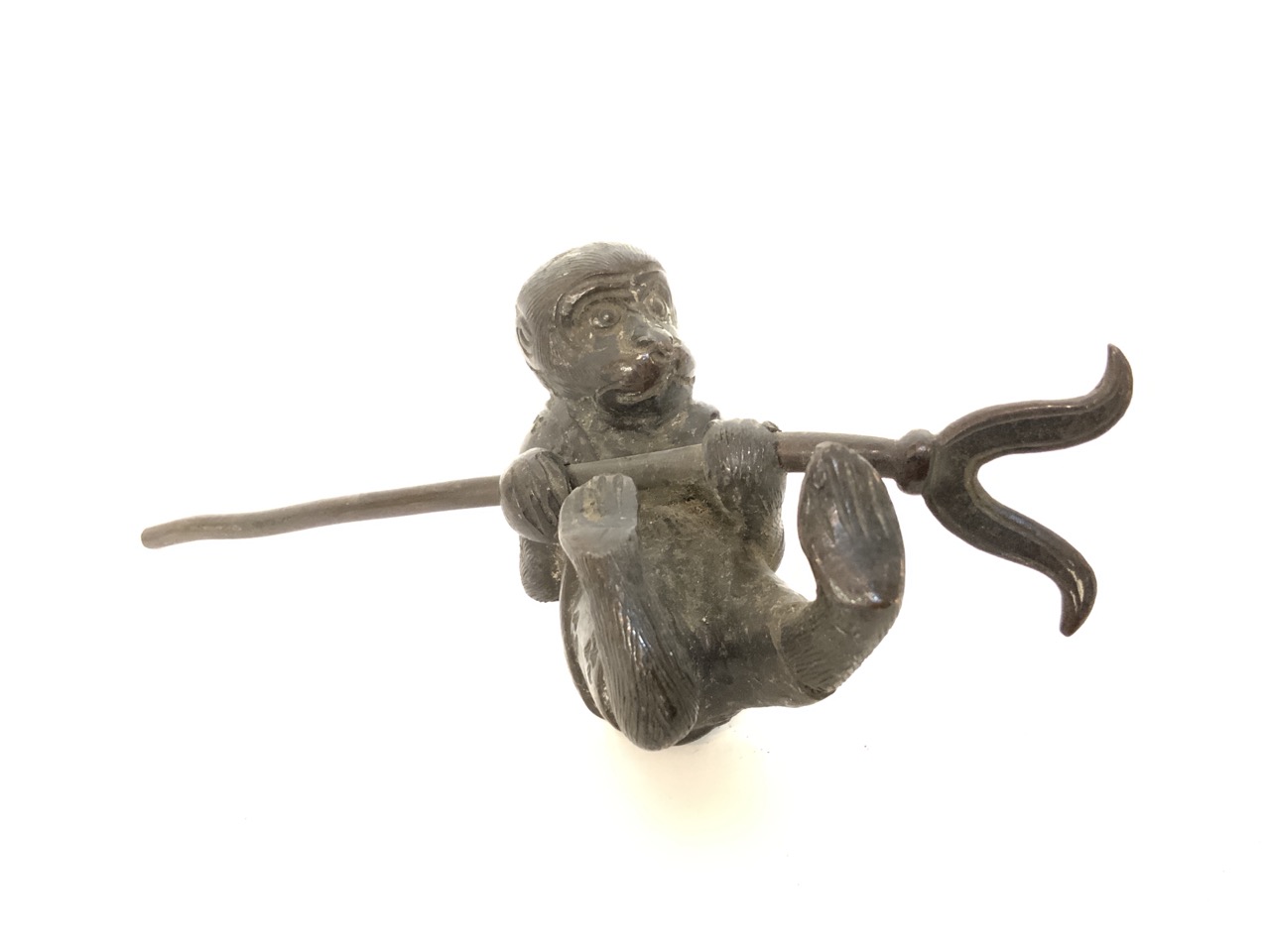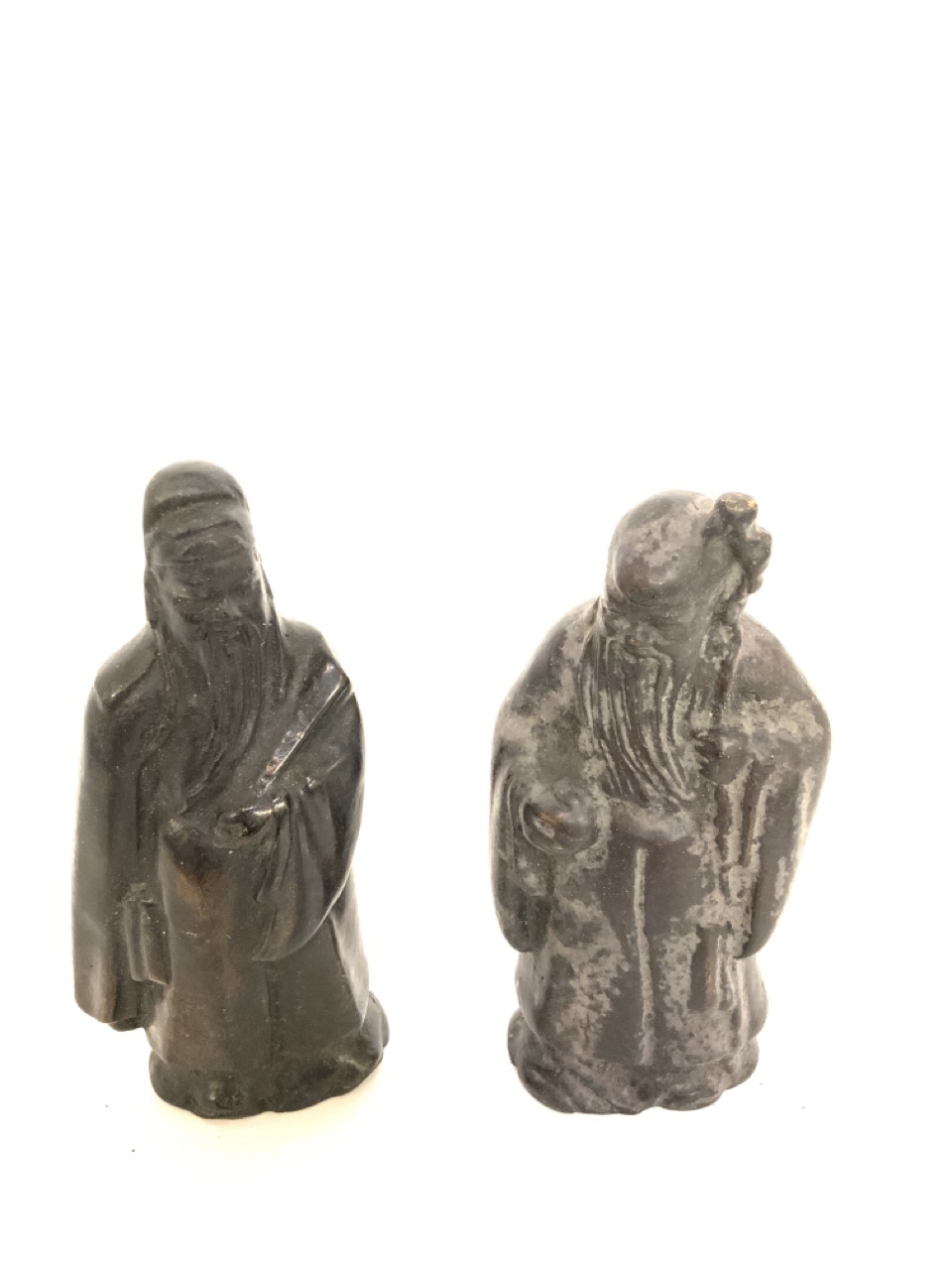 Two bronze scholars and bronze monkey (Missing base) 19th century. Estate found.