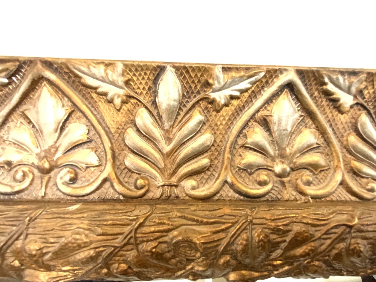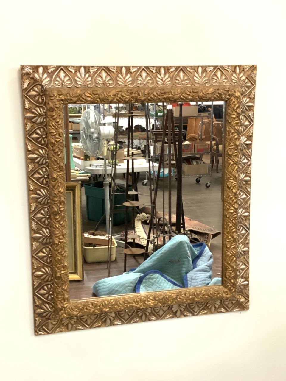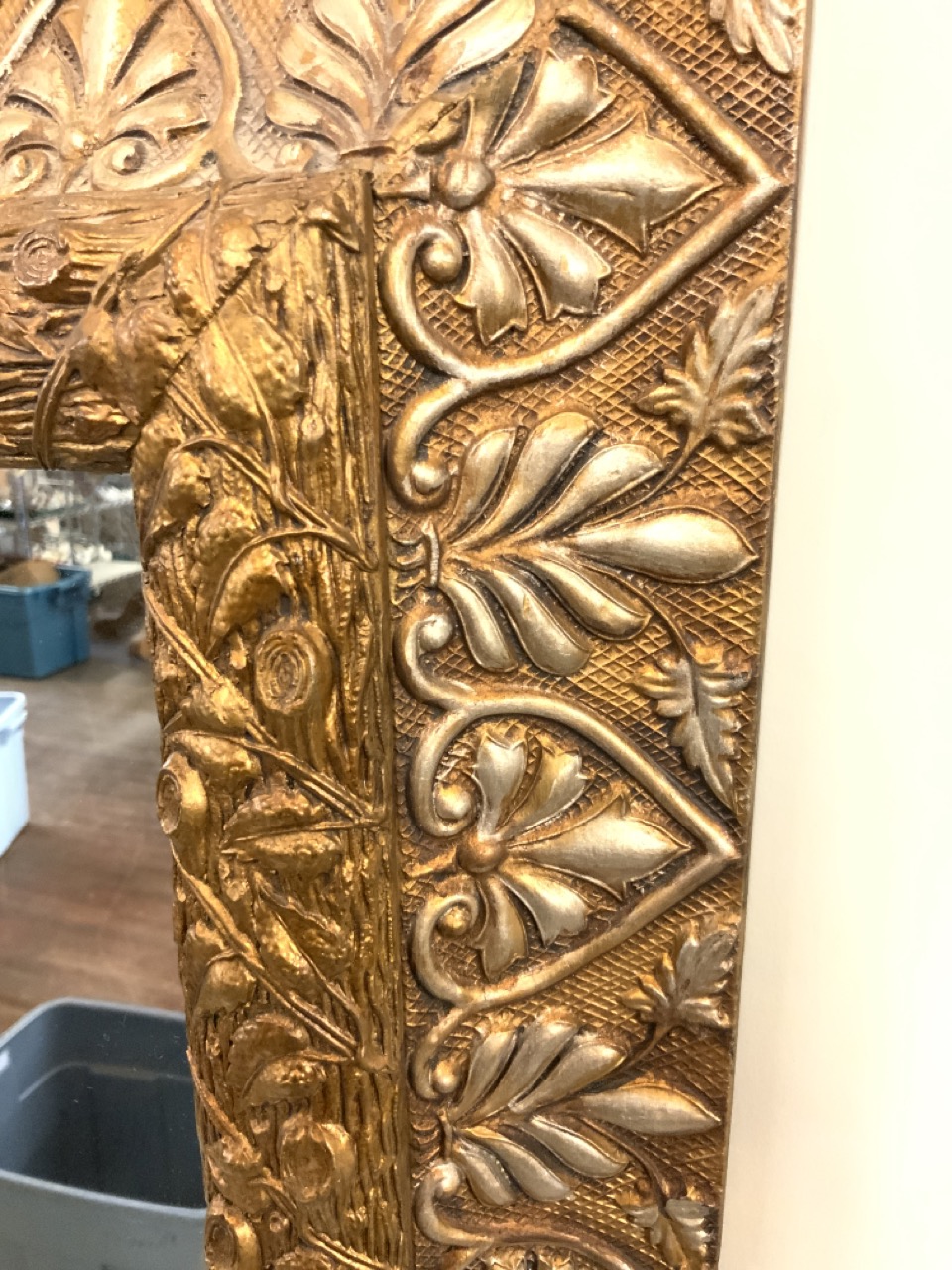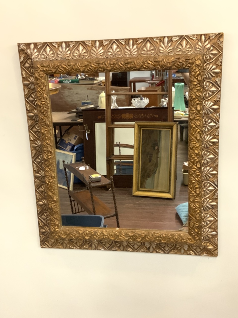 A decorative gold gilt wall mirror.