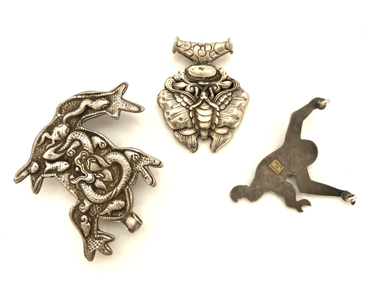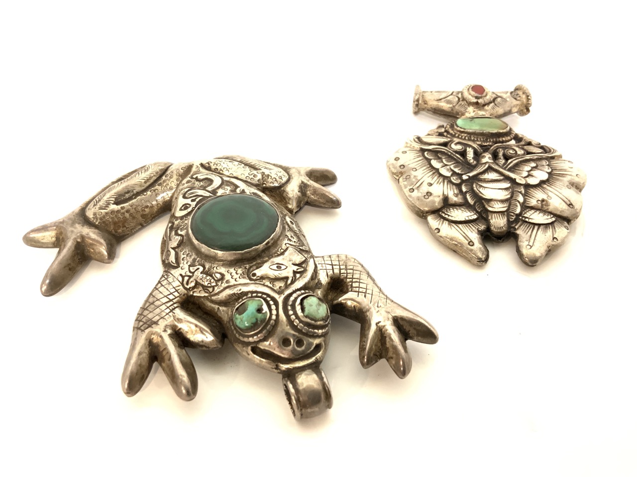 Three (3) large sterling silver animal pendants from Nepal. Pieces tested and are 900 silver or better.