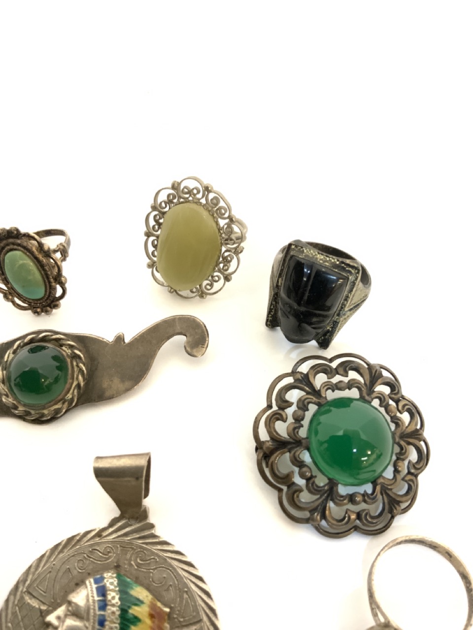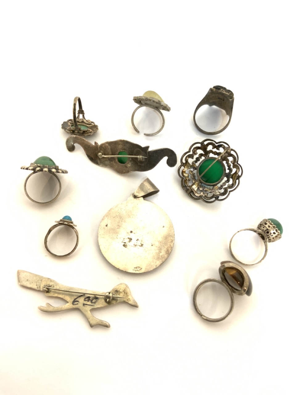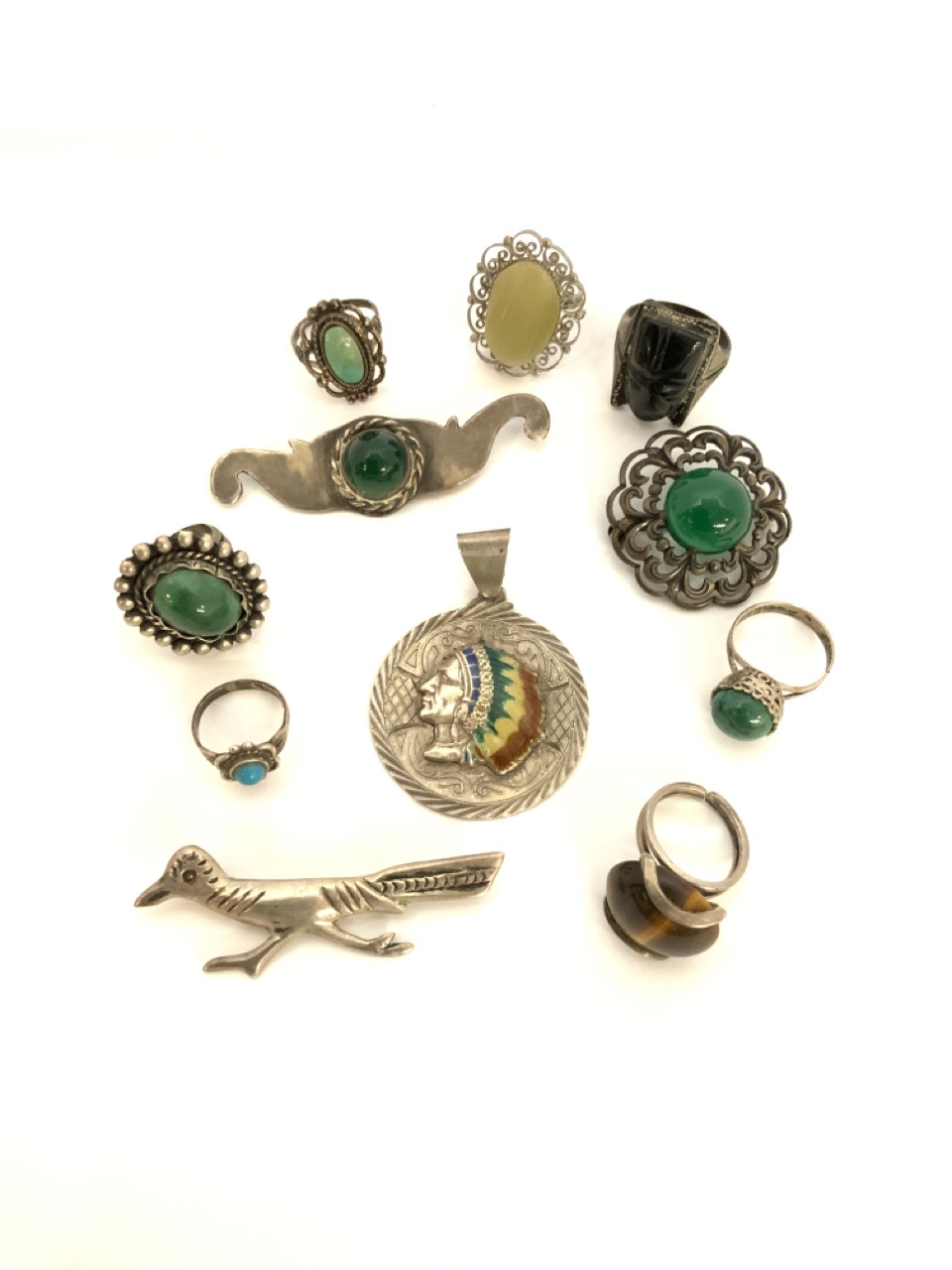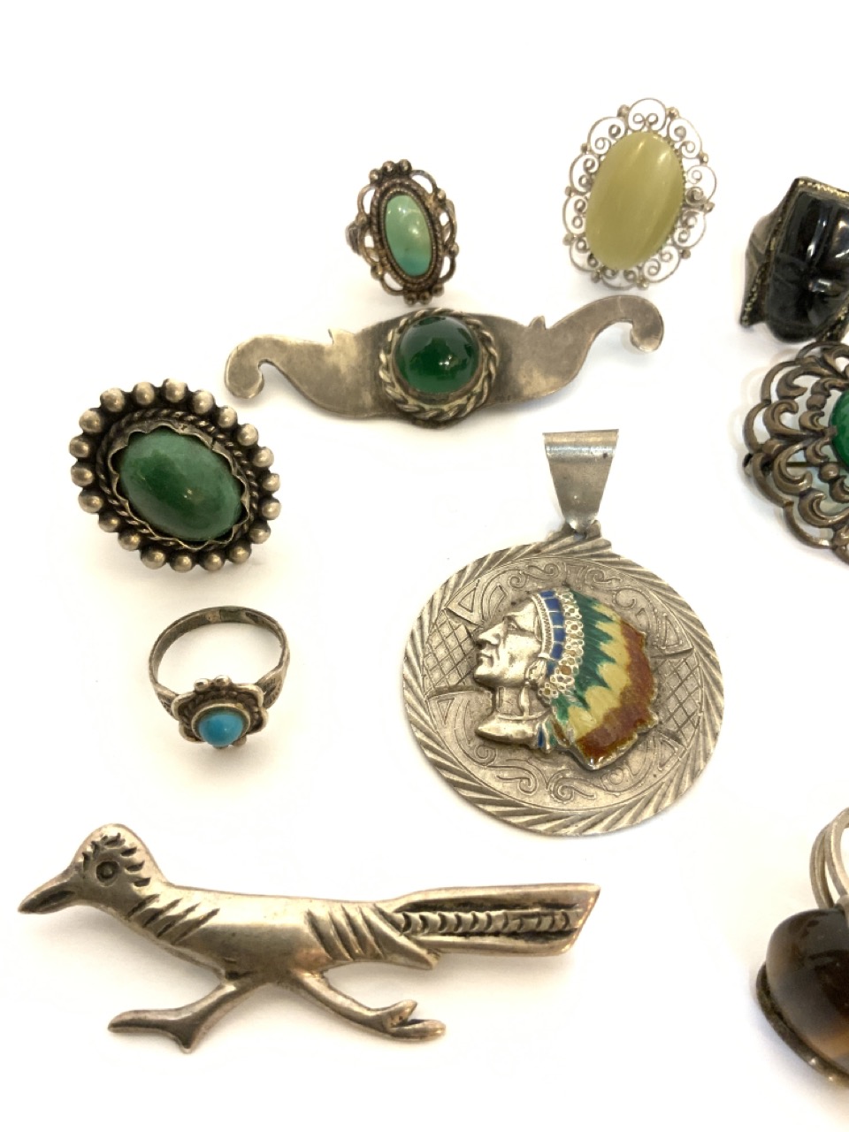 Vintage Indian and Mexican sterling silver jewelry group.