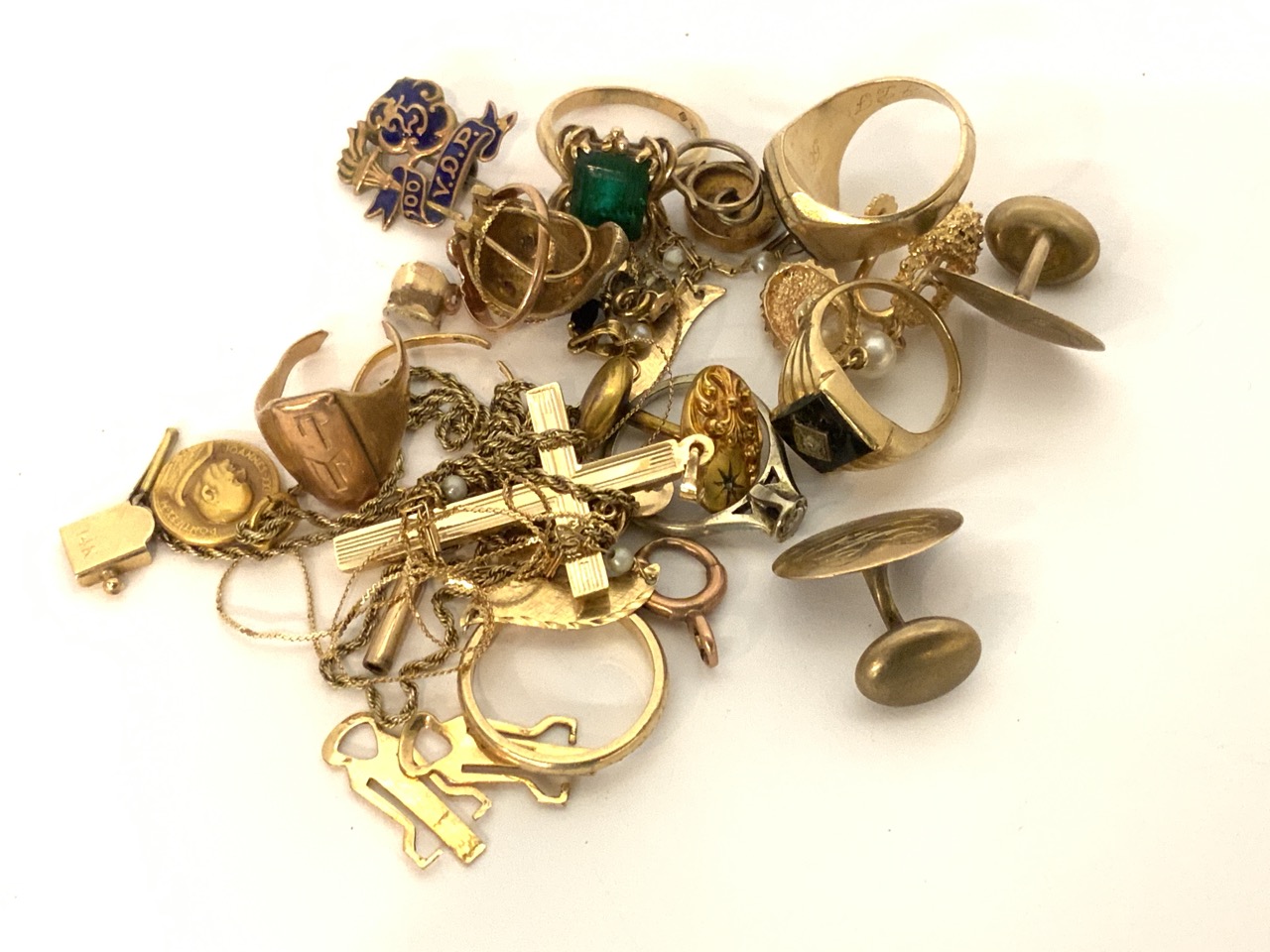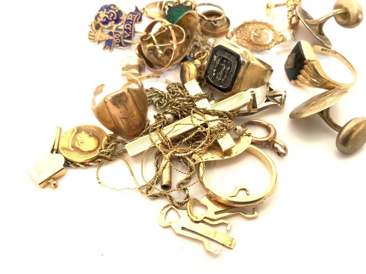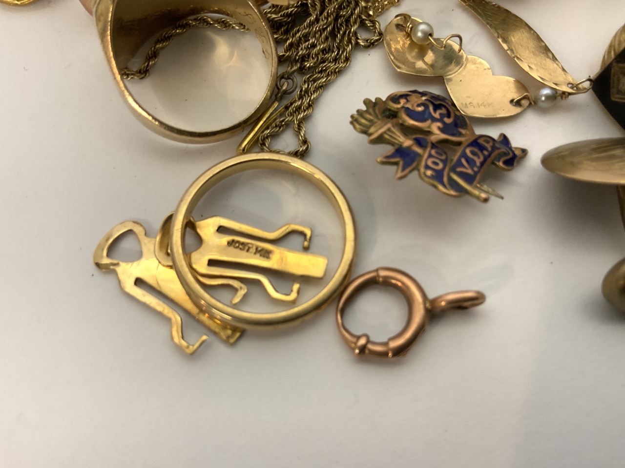Most 14k and marked, other pieces tested if not marked. Rings, pendants, charms etc.. No returns.