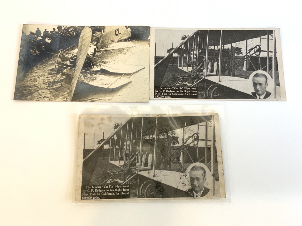 Three (3) Original C.P. Cal Rodgers postcards. Flight from New York To California for a Hearst $50,000 Prize.