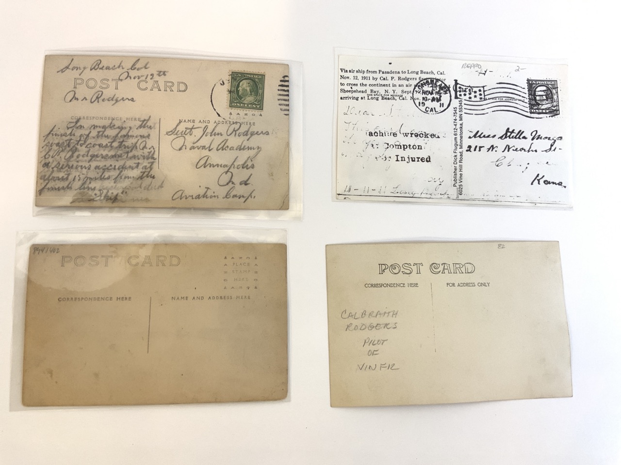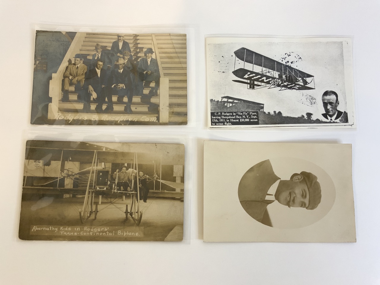 Four (4) C.P. Rodgers postcards. Second from top is a copy (Vin Fiz Flyer). Three are original to period.