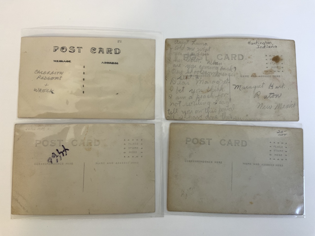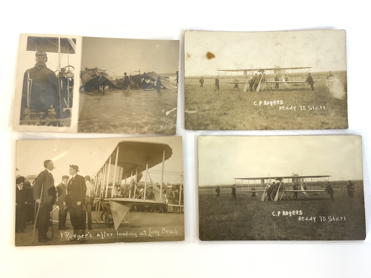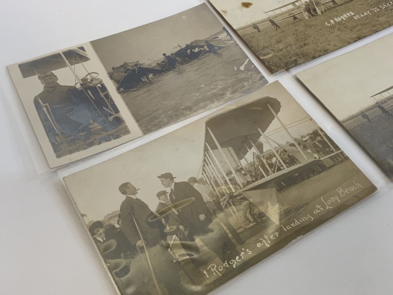 Four (4) Original postcards, Ready to Start and After Landing At Longbeach. Wreckage etc.