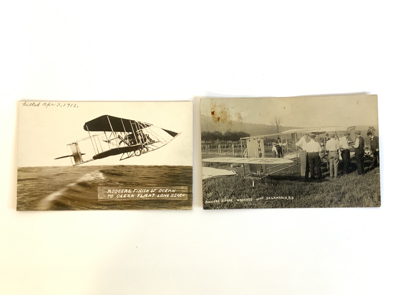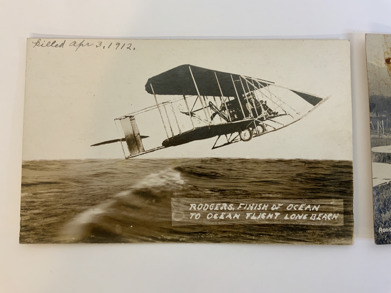 Two (2) C.P. Rodgers flight of Ocean to ocean flight, Long Beach and Near Salamanca. Original postcards to period.