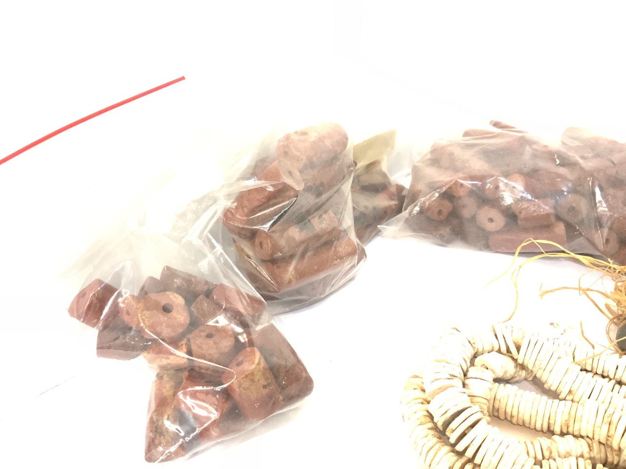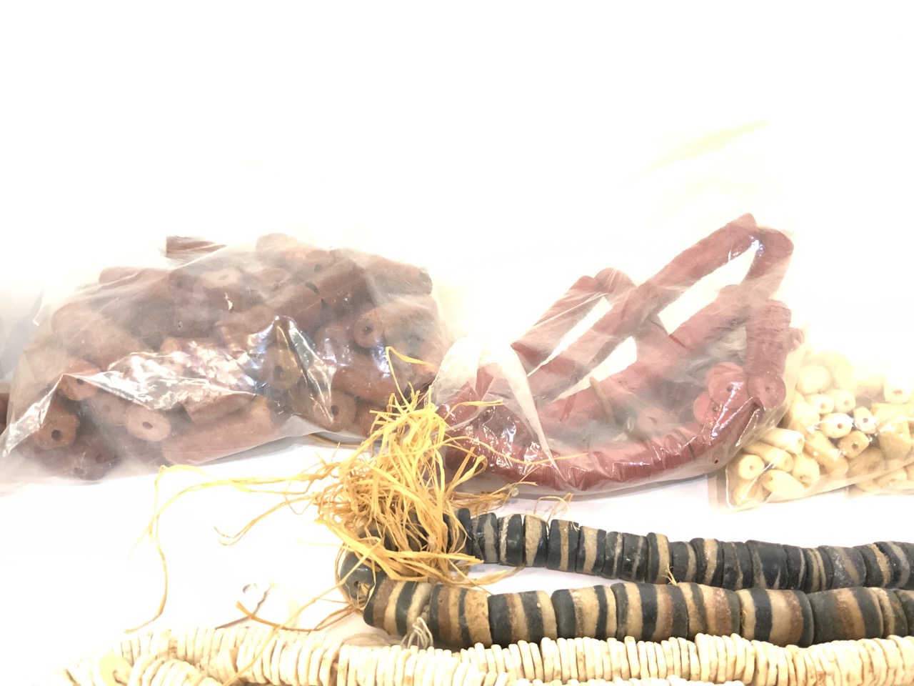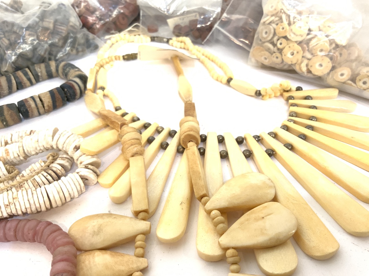 Compiled groupins of African trade bead strands and necklaces. As seen in photograph preview.