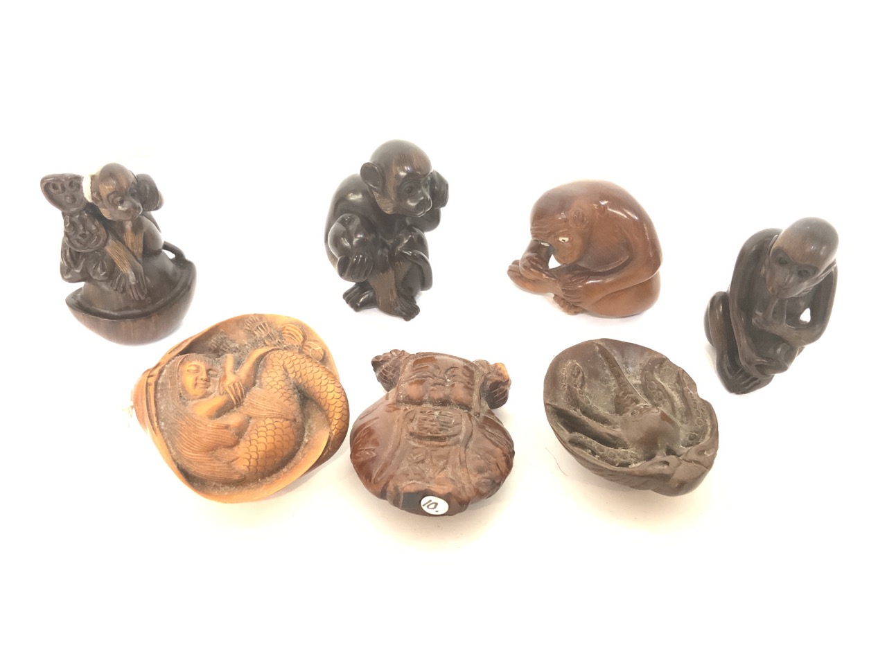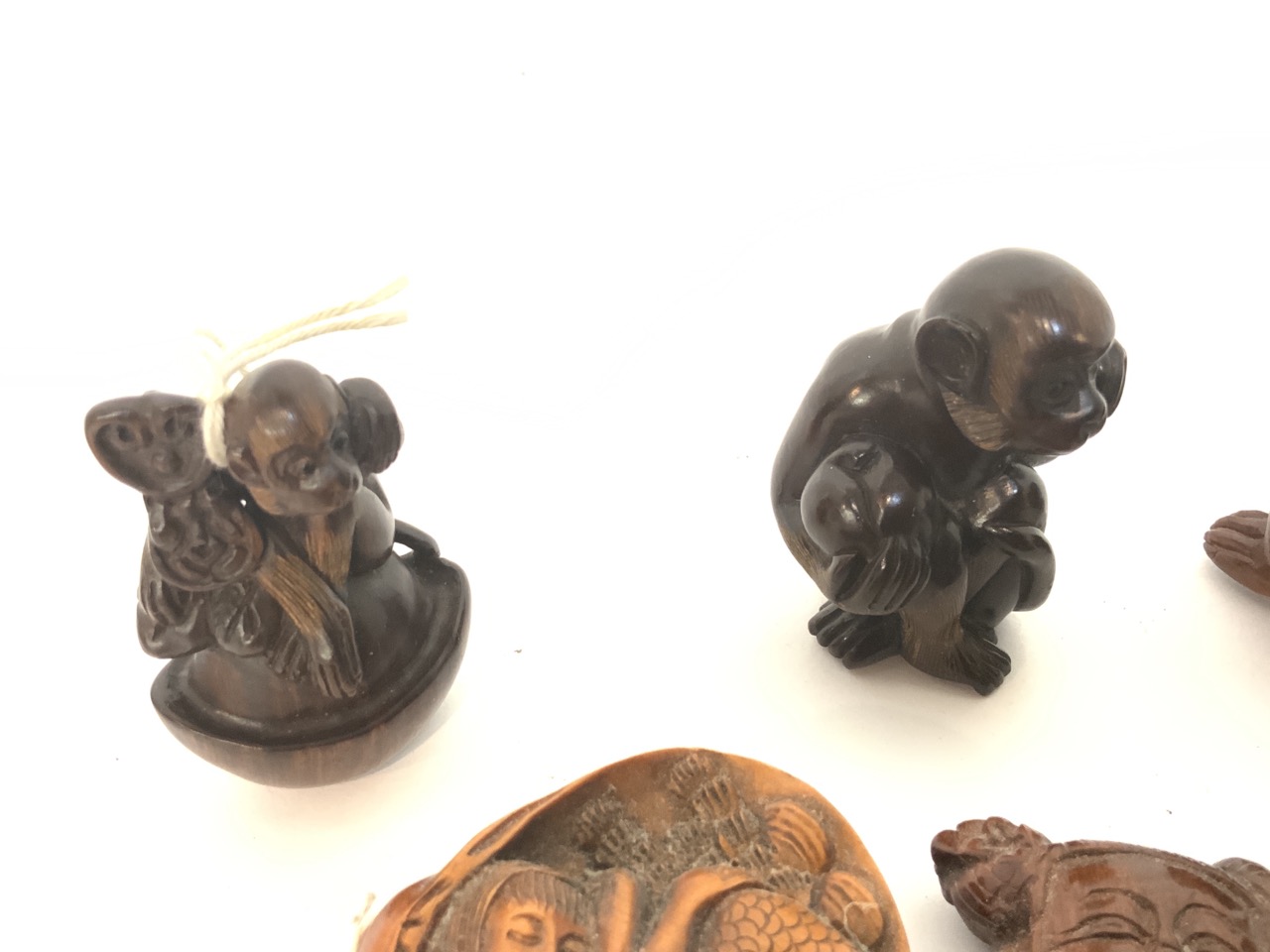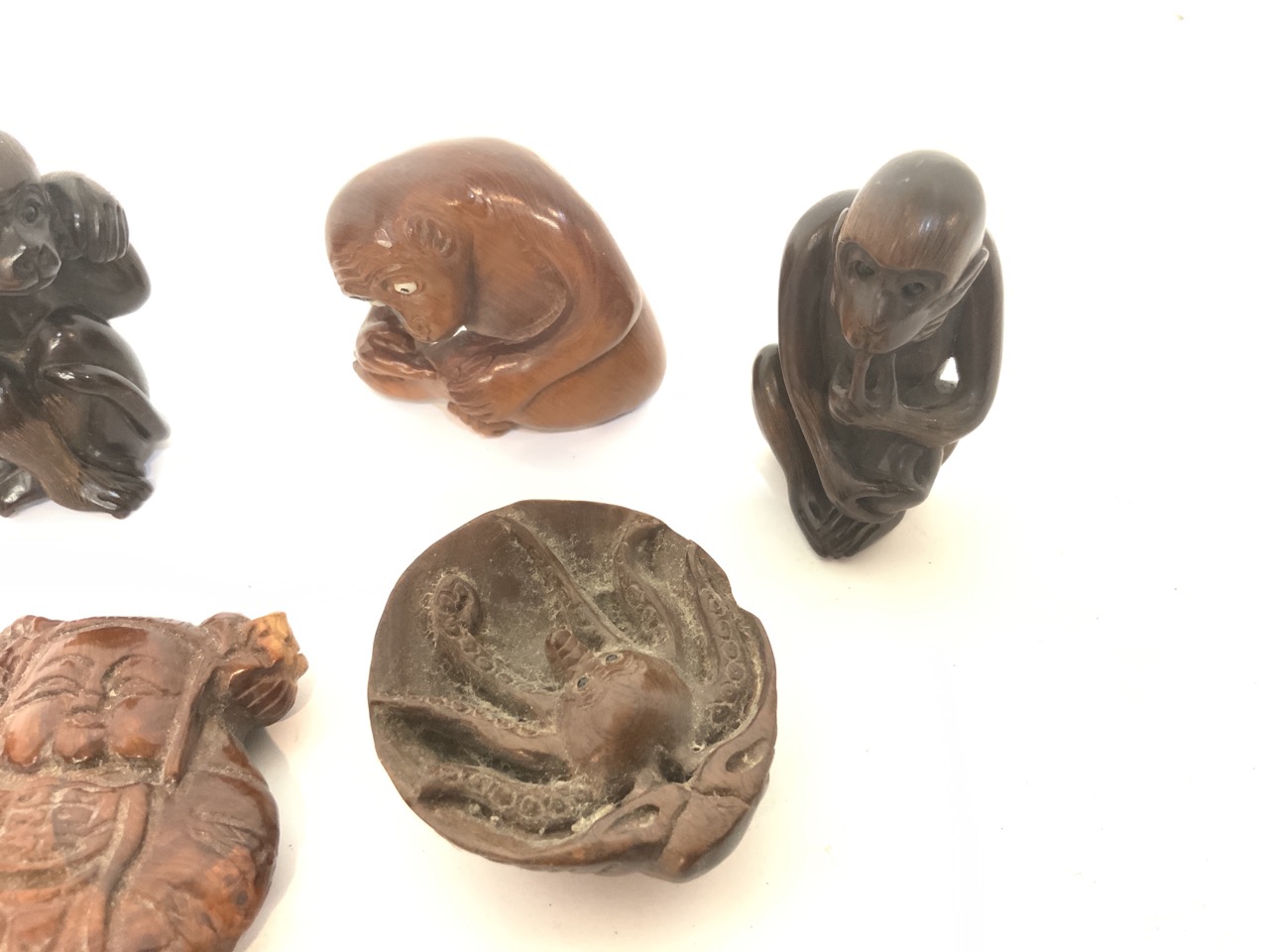 Approx. 2" diameter Japanese carved wood netsuke group.