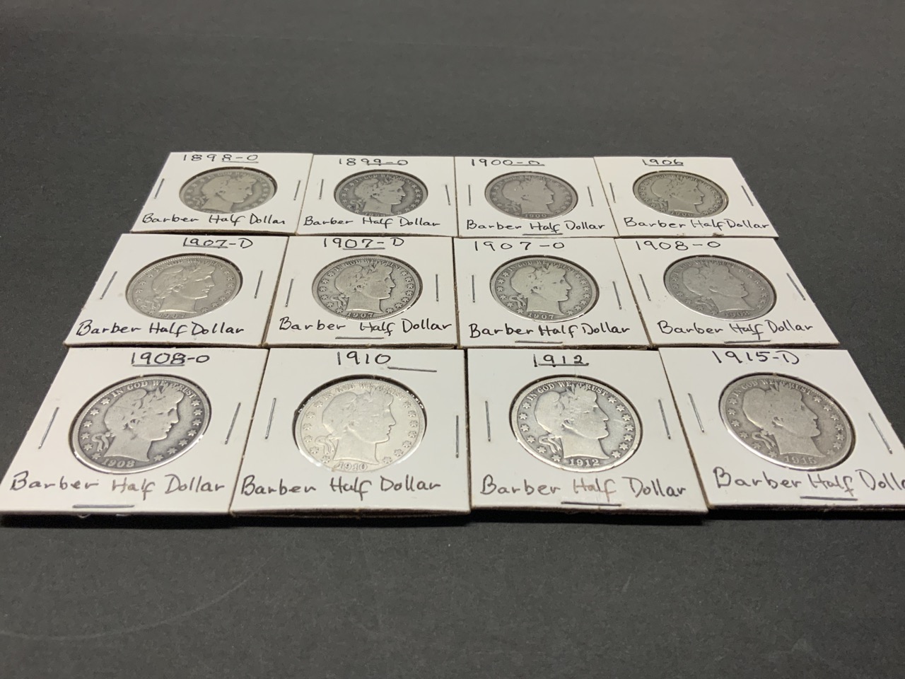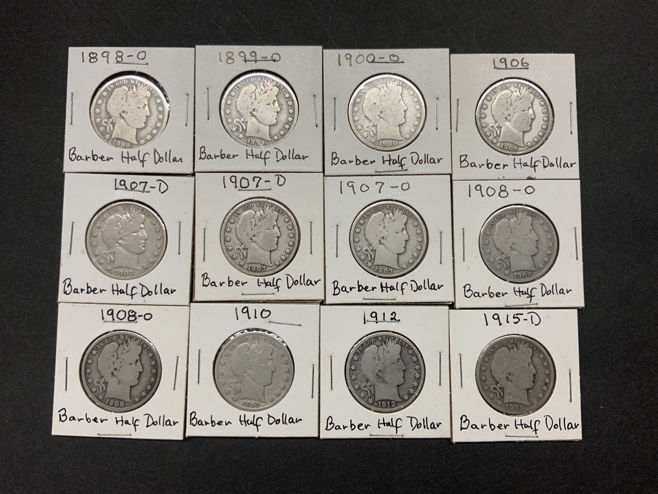 Twelve (12) U.S. Silver Barber Half Dollars (1898-1915)