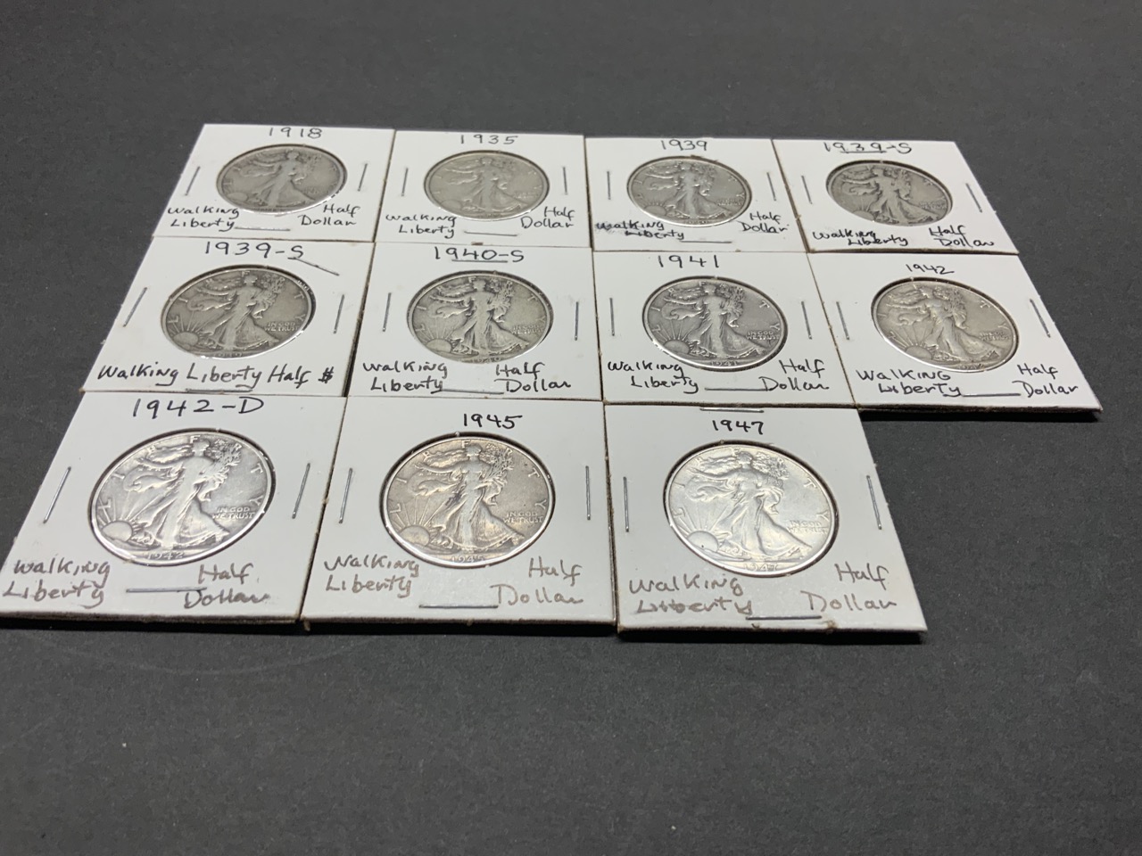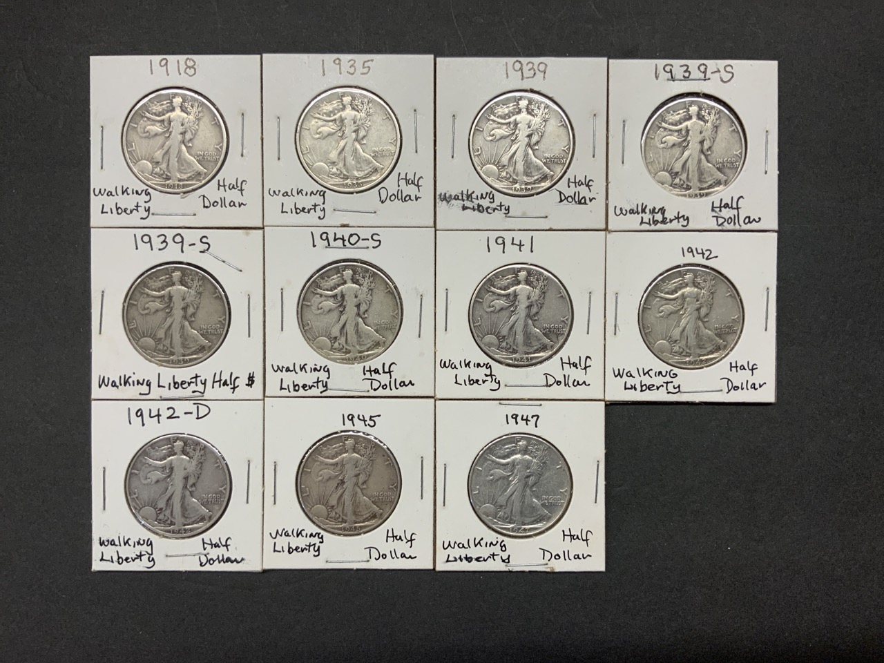 Eleven (11) Walking U.S. Liberty Half Dollars