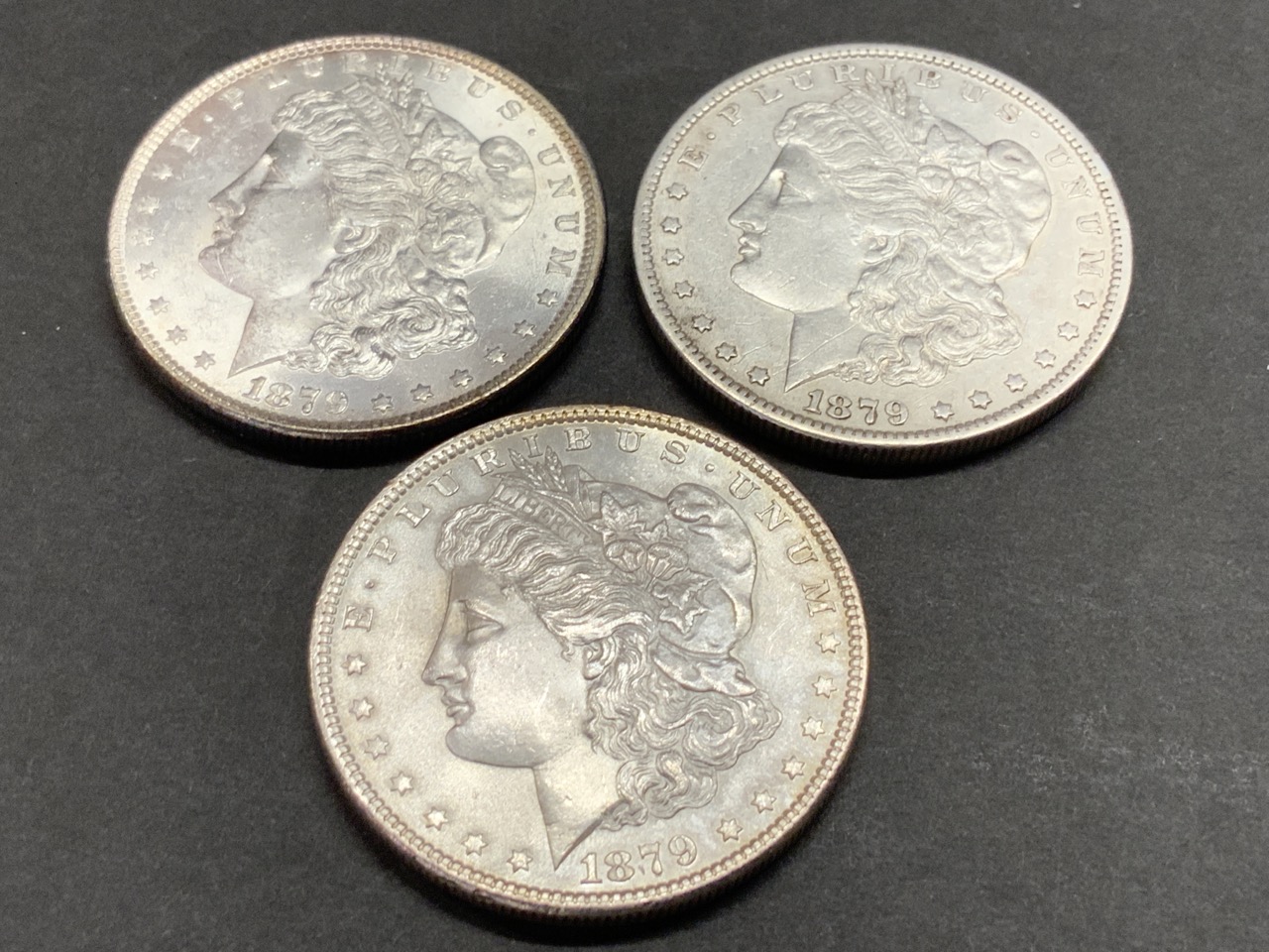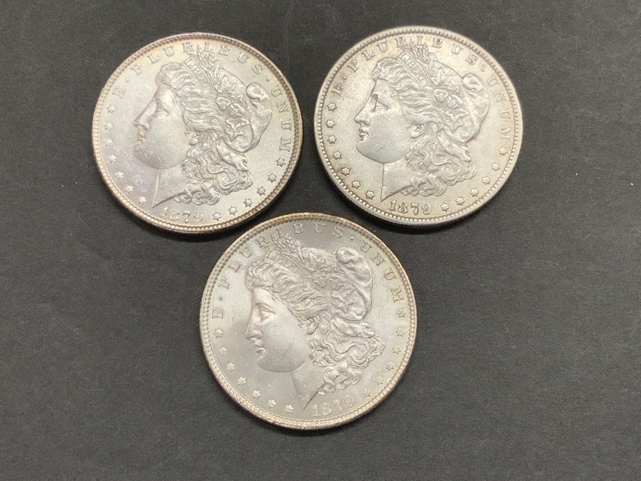 Three (3) 1879 Morgan U.S. Silver Dollars.
