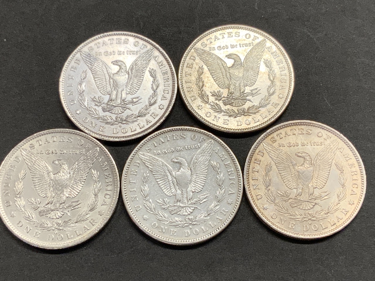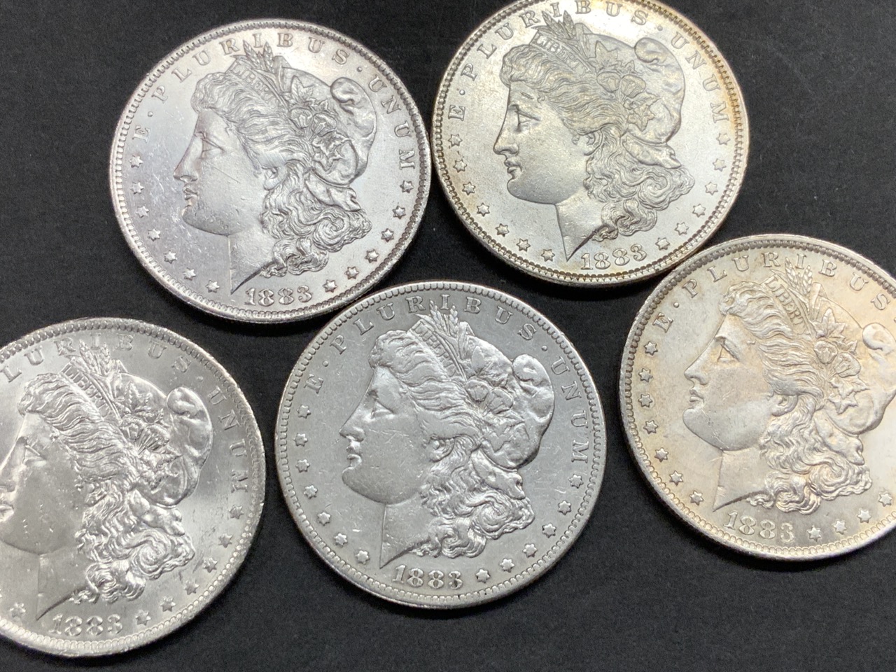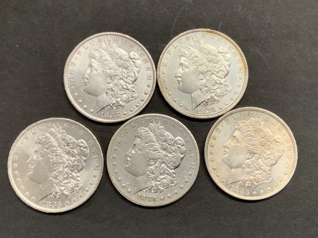 Five (5) 1883 U.S. Morgan Silver Dollars.