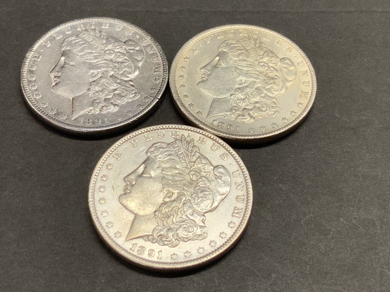 Three (3) 1891 Morgan U.S. Silver Dollars