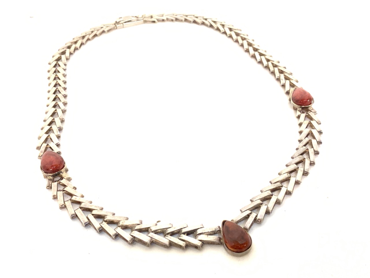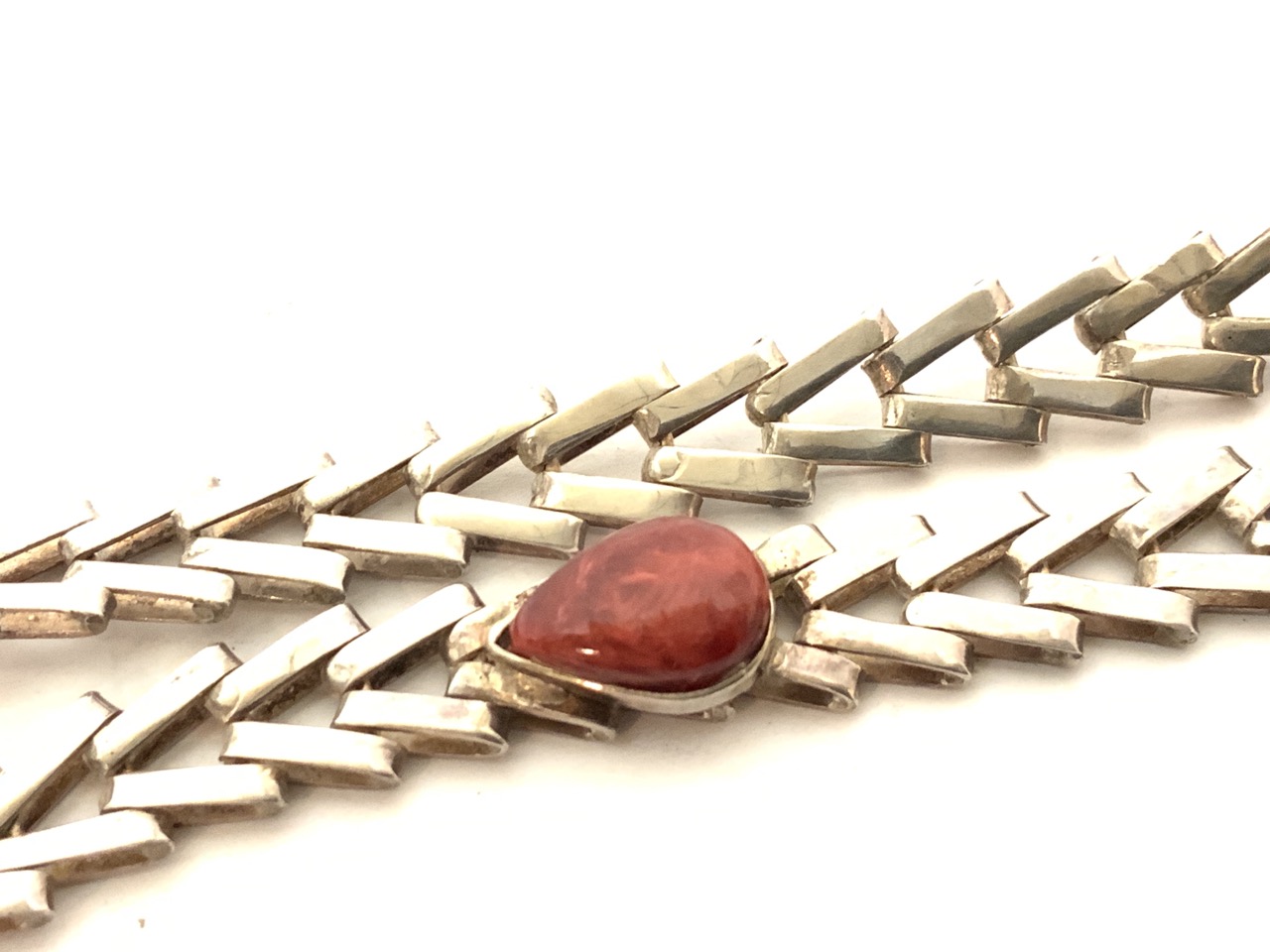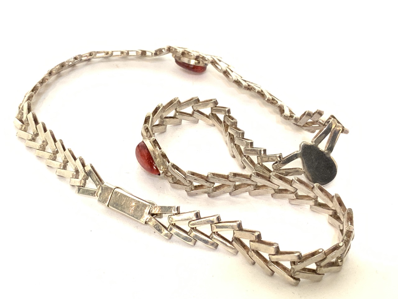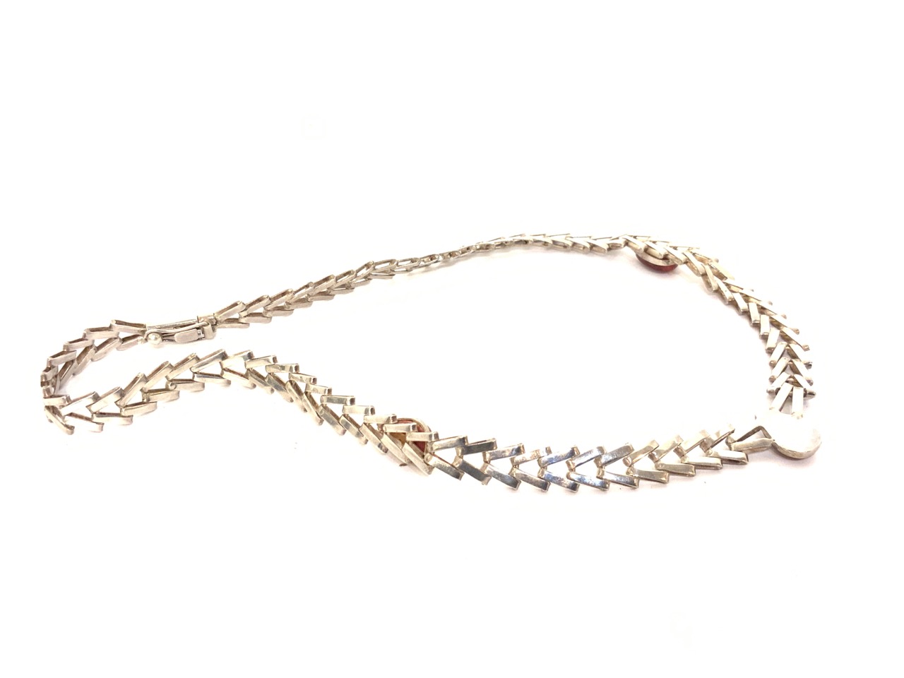 Heavy sterling silver necklace with inset red stones.