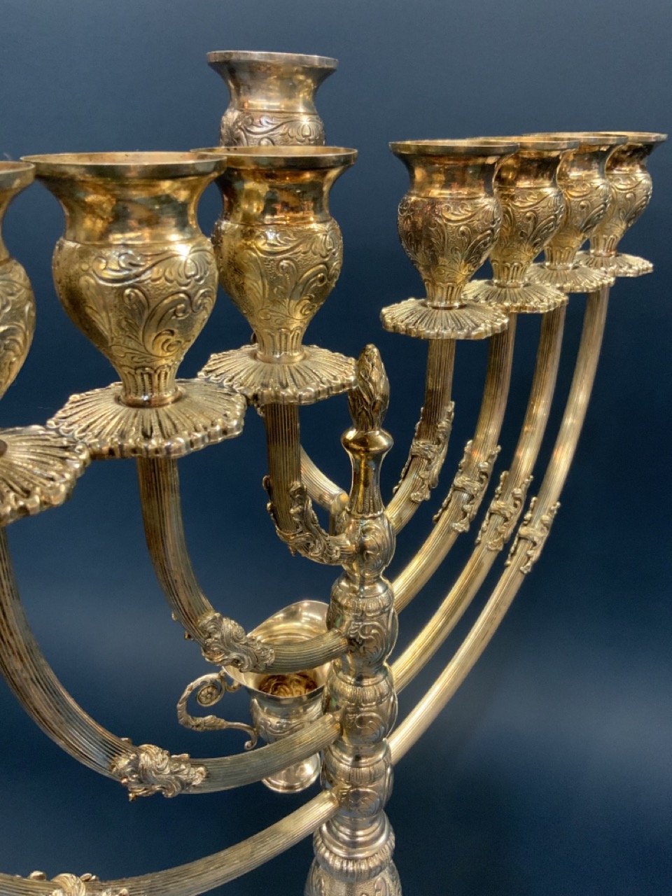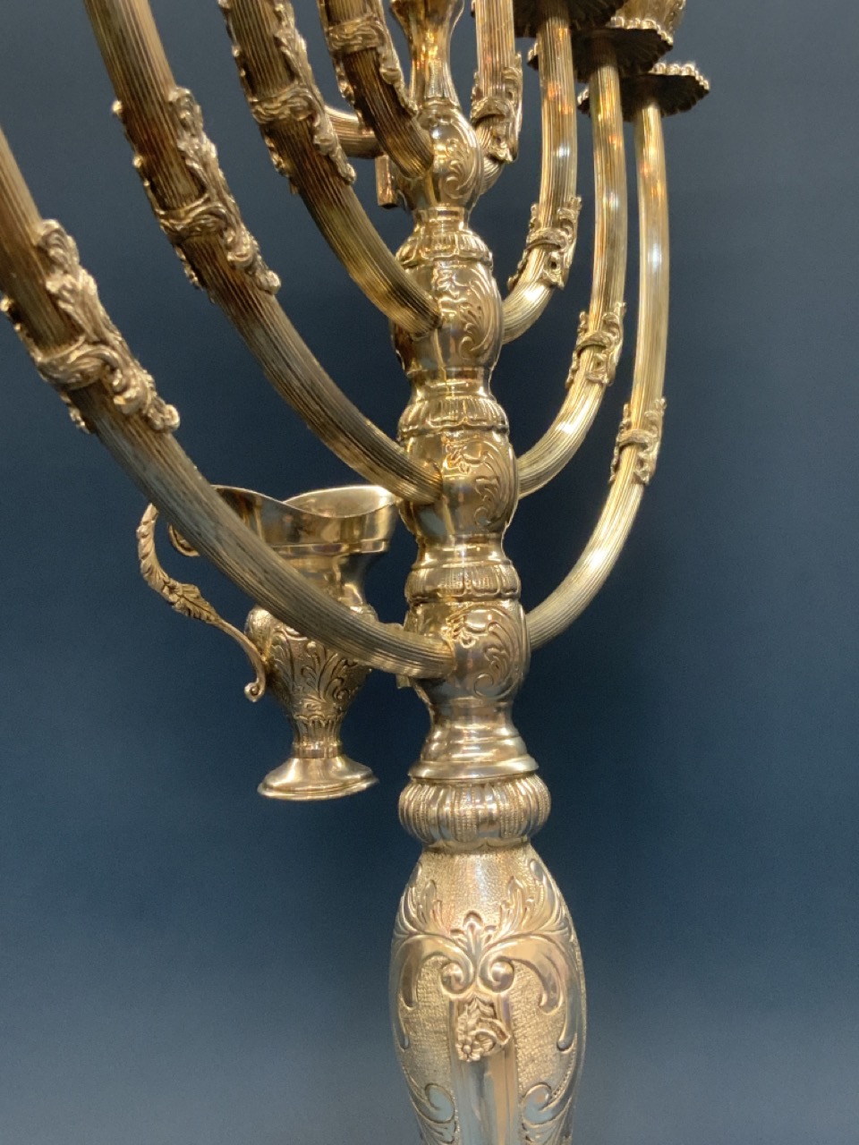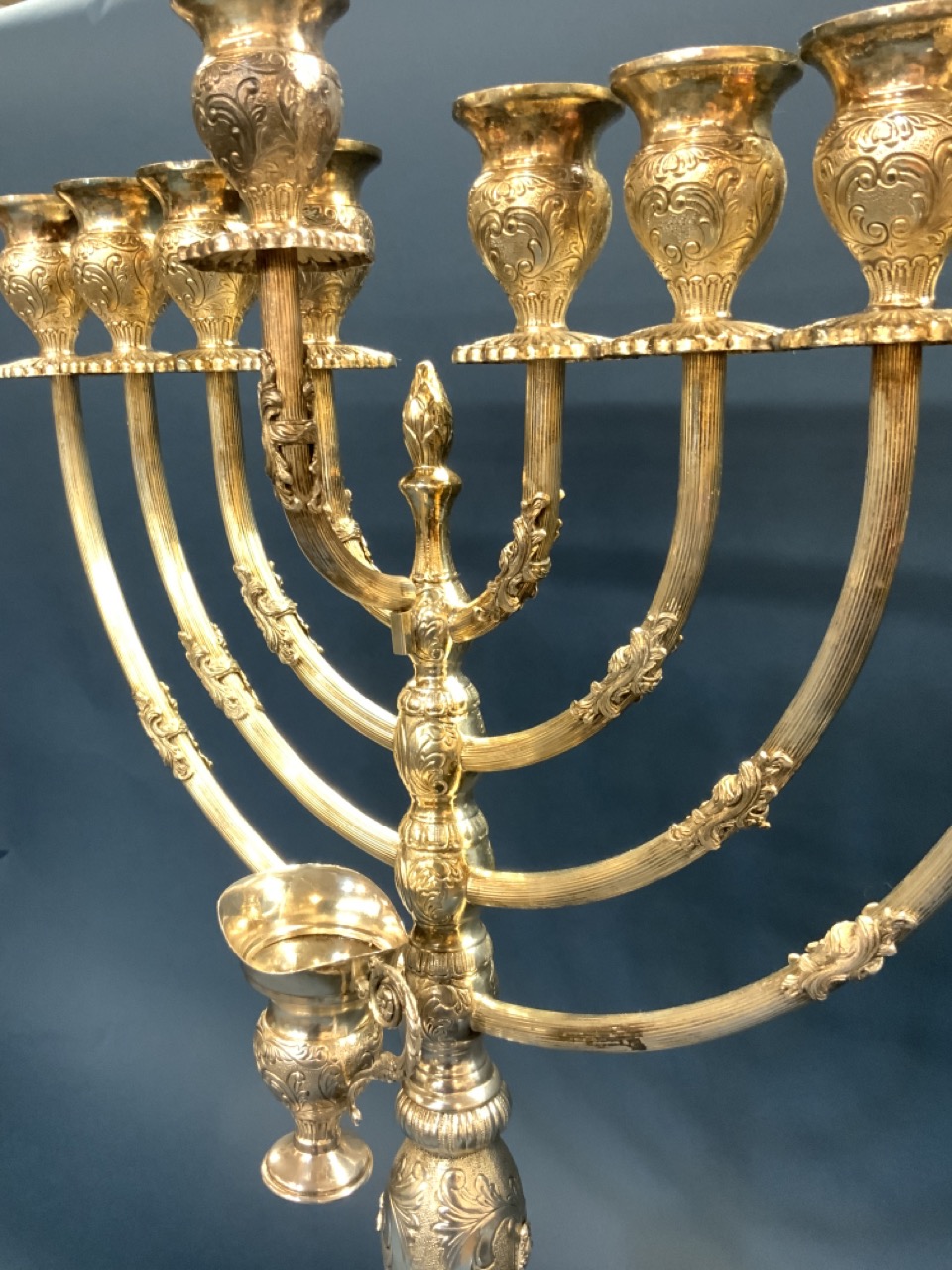 A fine Hazorfim Judaica sterling silver Hanukkah Menorah.