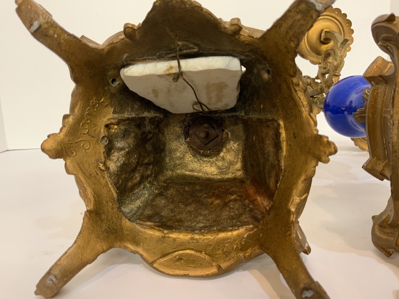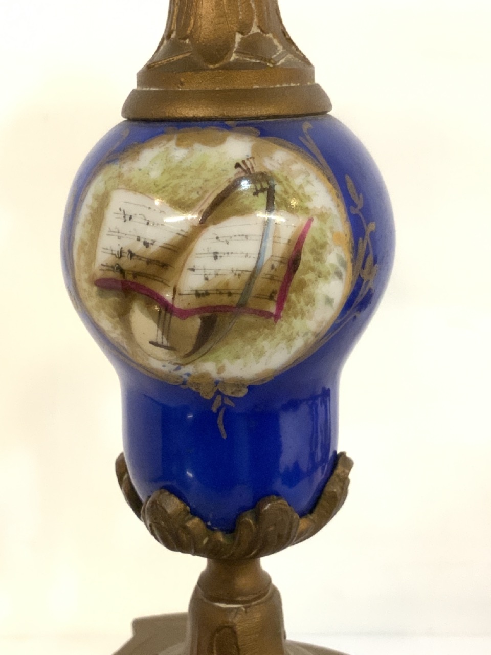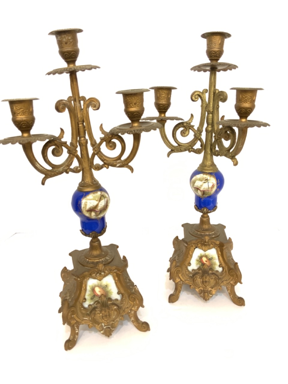 A pair of bronze candelabra with Sevres attributed porcelain inserts.