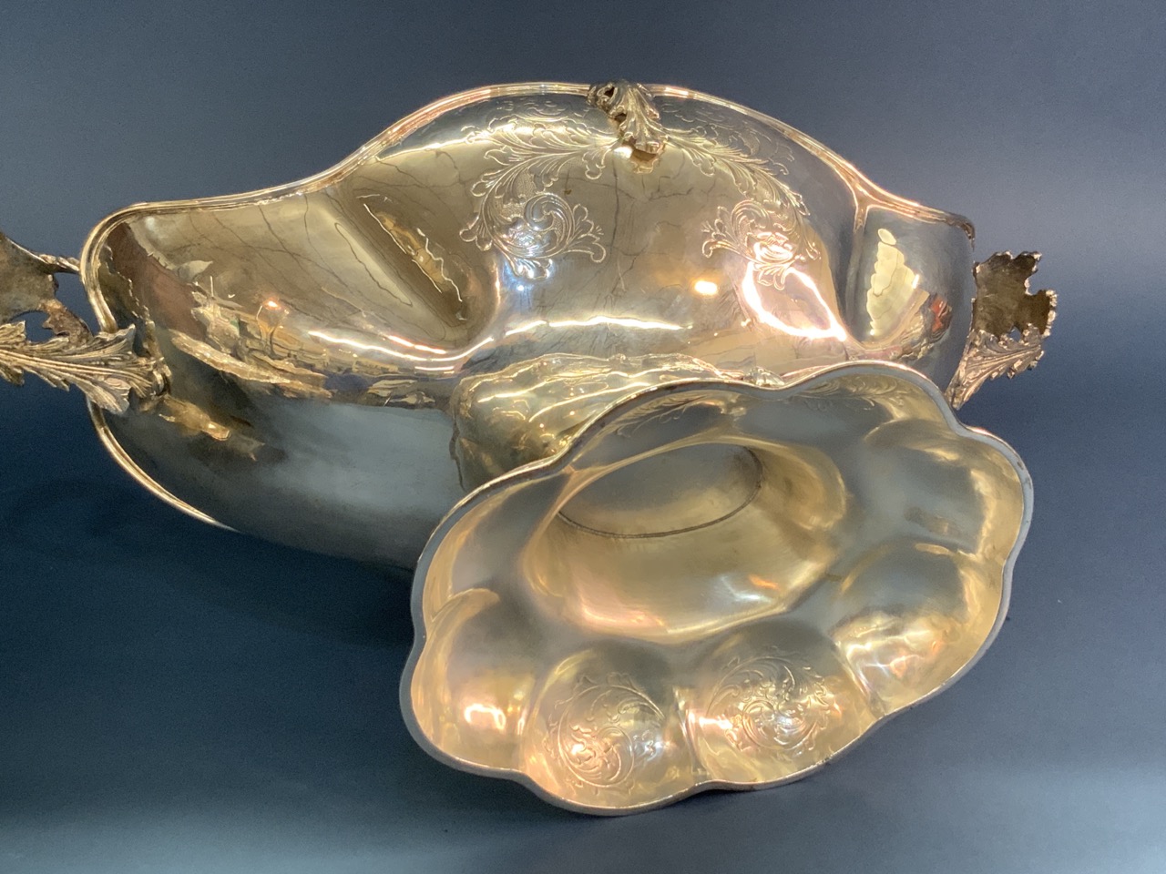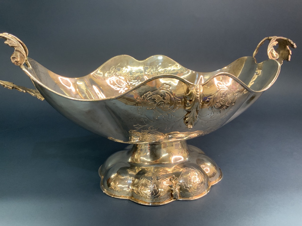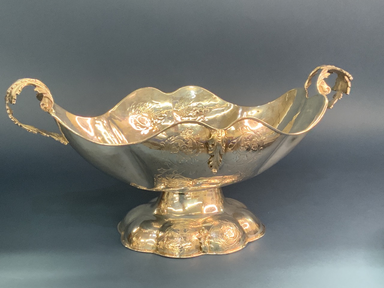 A large 17 1/2" span sterling silver double handled bowl.