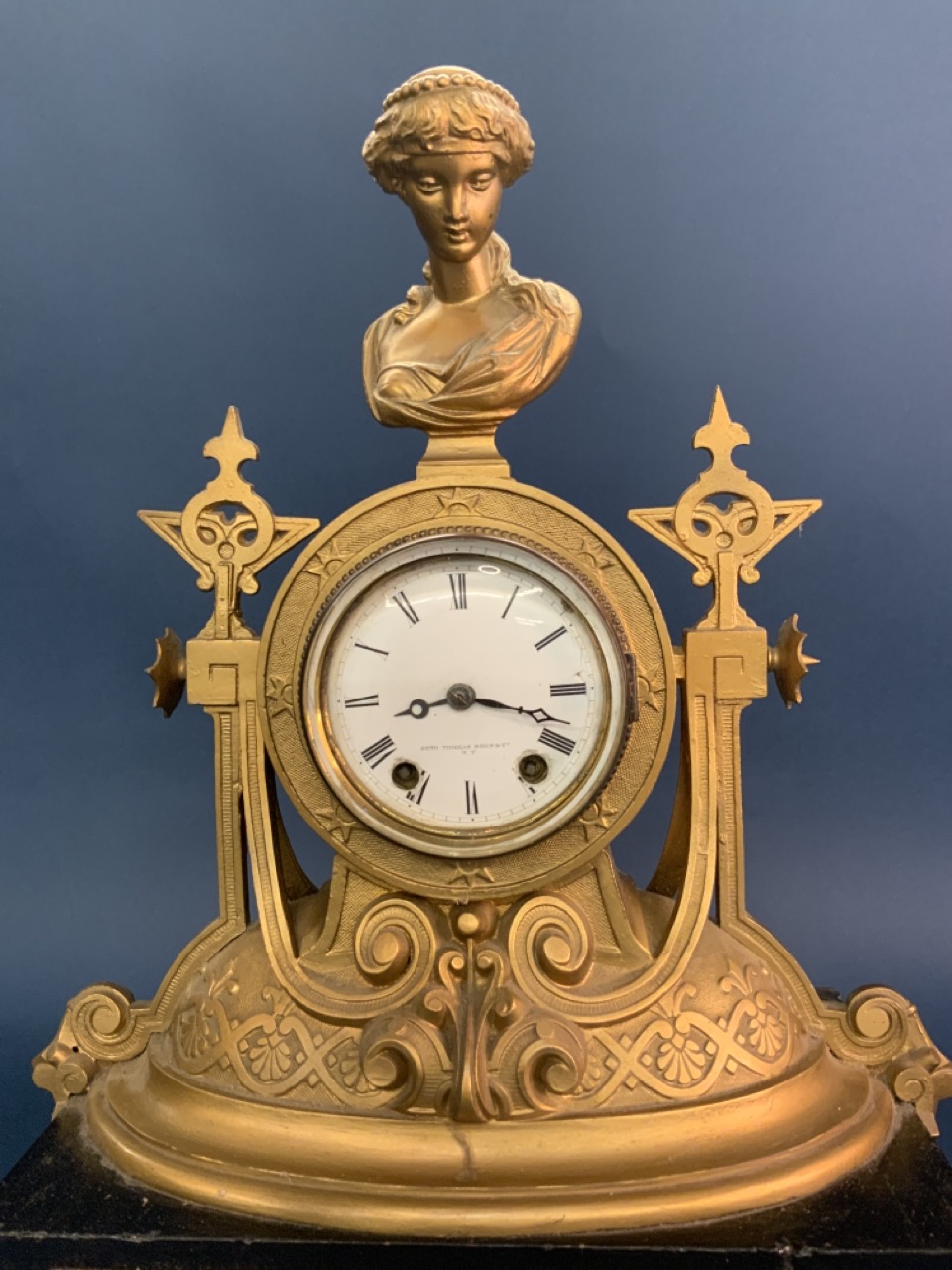 A fine Seth Thomas Sons And Company New York 19th century figural mantel clock. Note tested. Appearing all original. Nice patina.