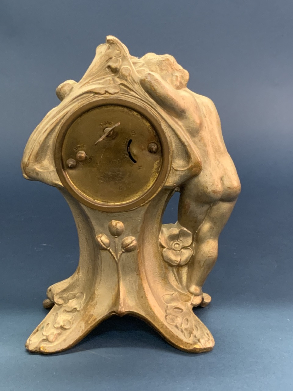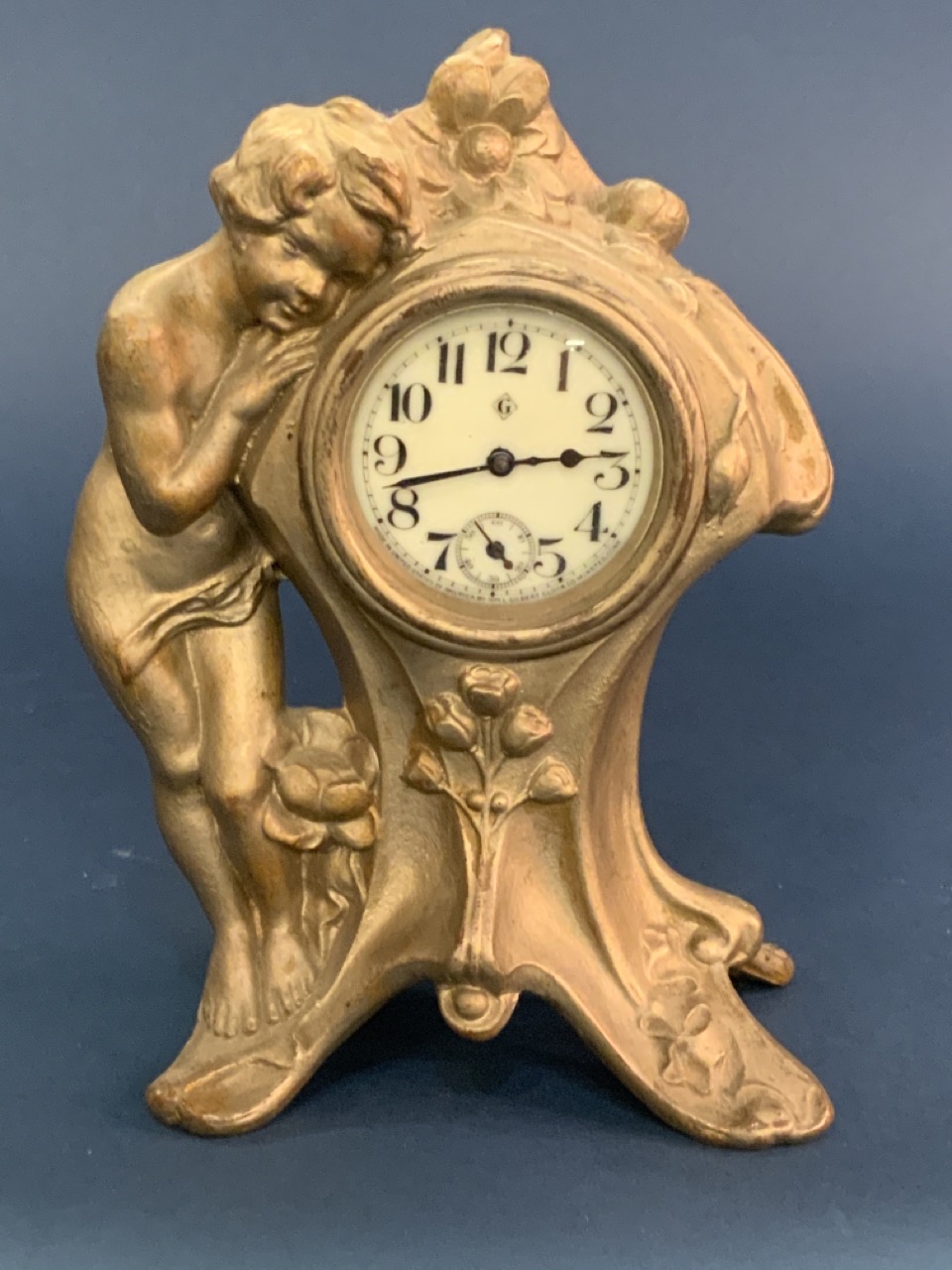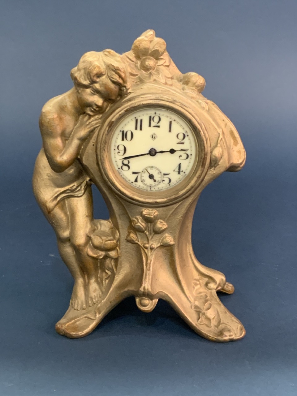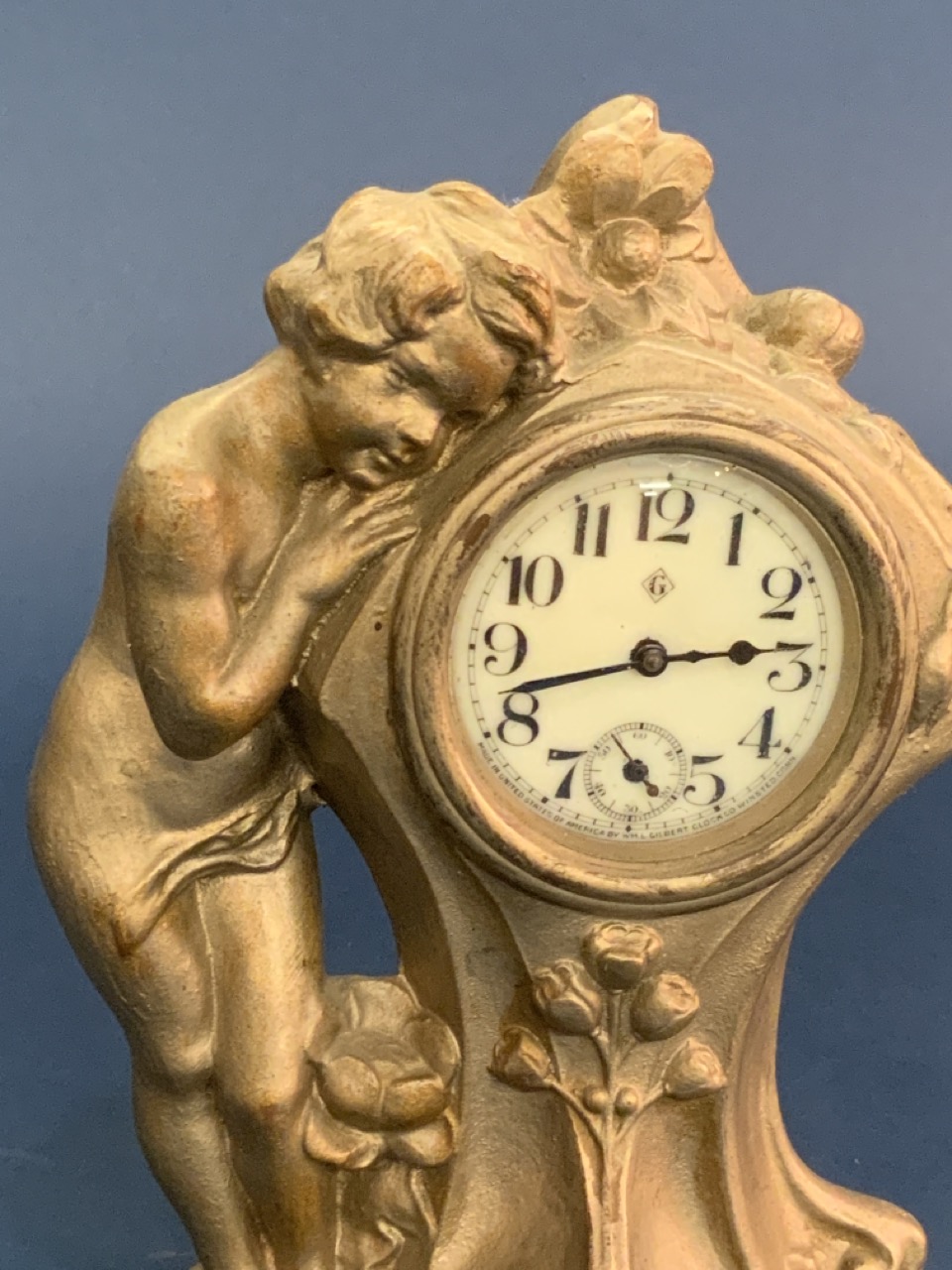 A small Art Nouveau clock with child by Gilbert Clock Company.