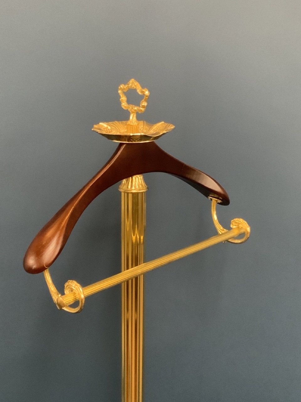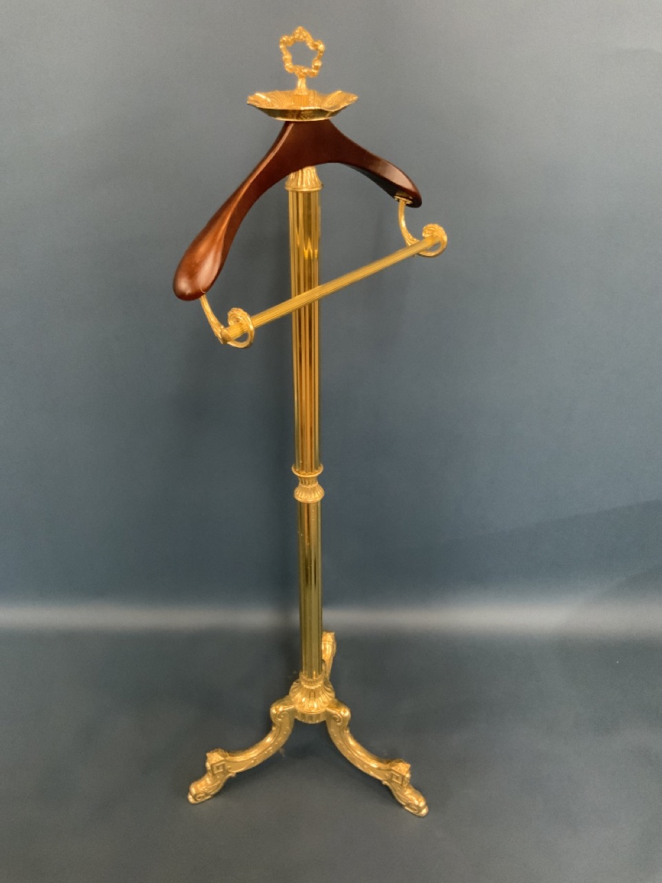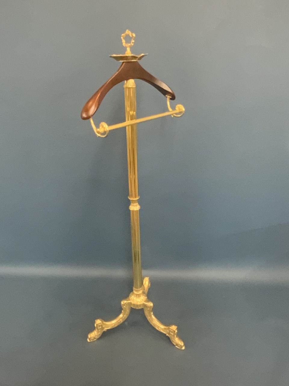 Contemporary Brass And Hardwood Men's Dressing Stand.