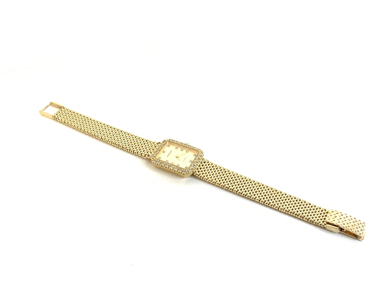 A fine Horizon lady's 14k yellow gold diamond wristwatch.