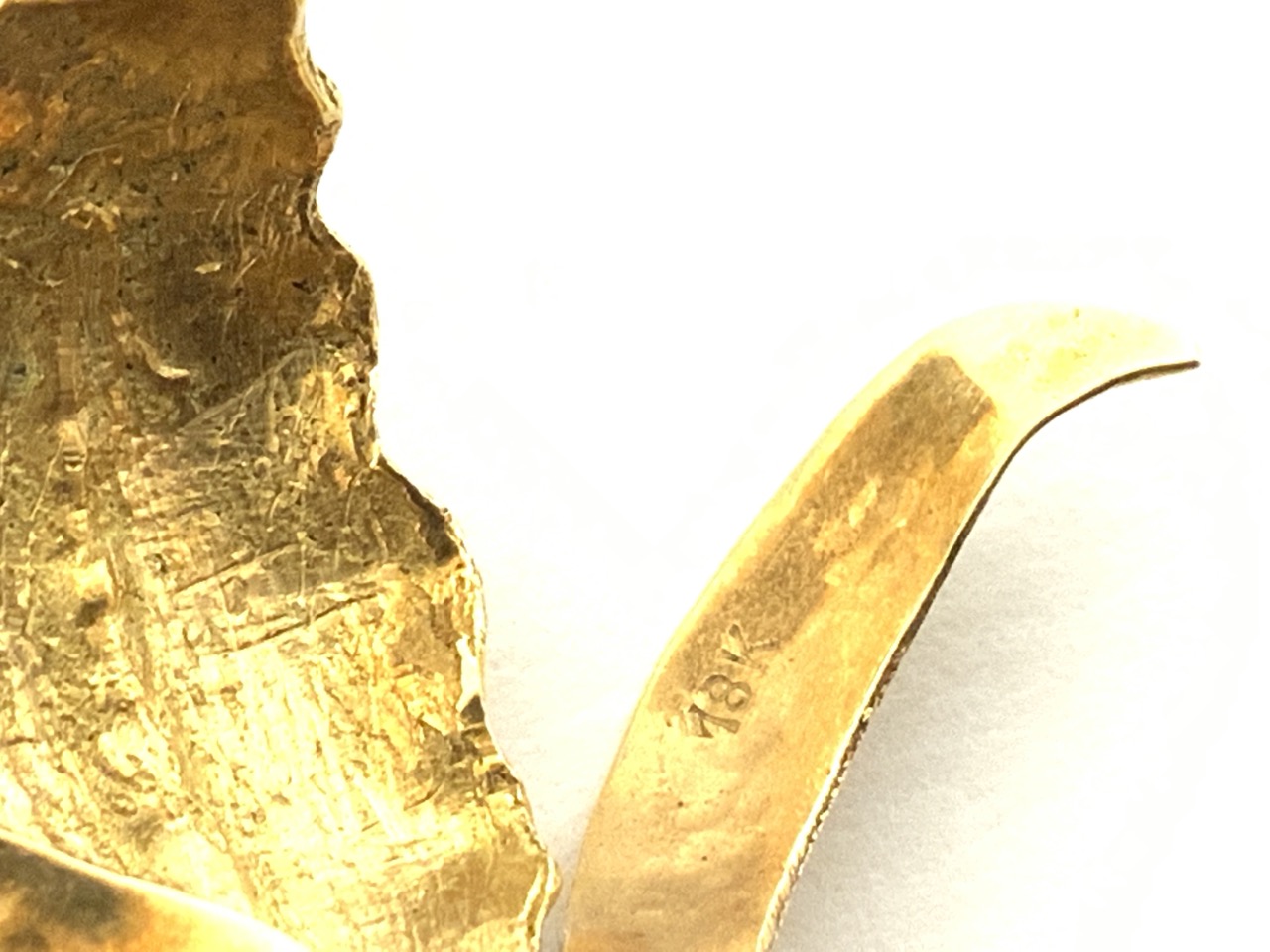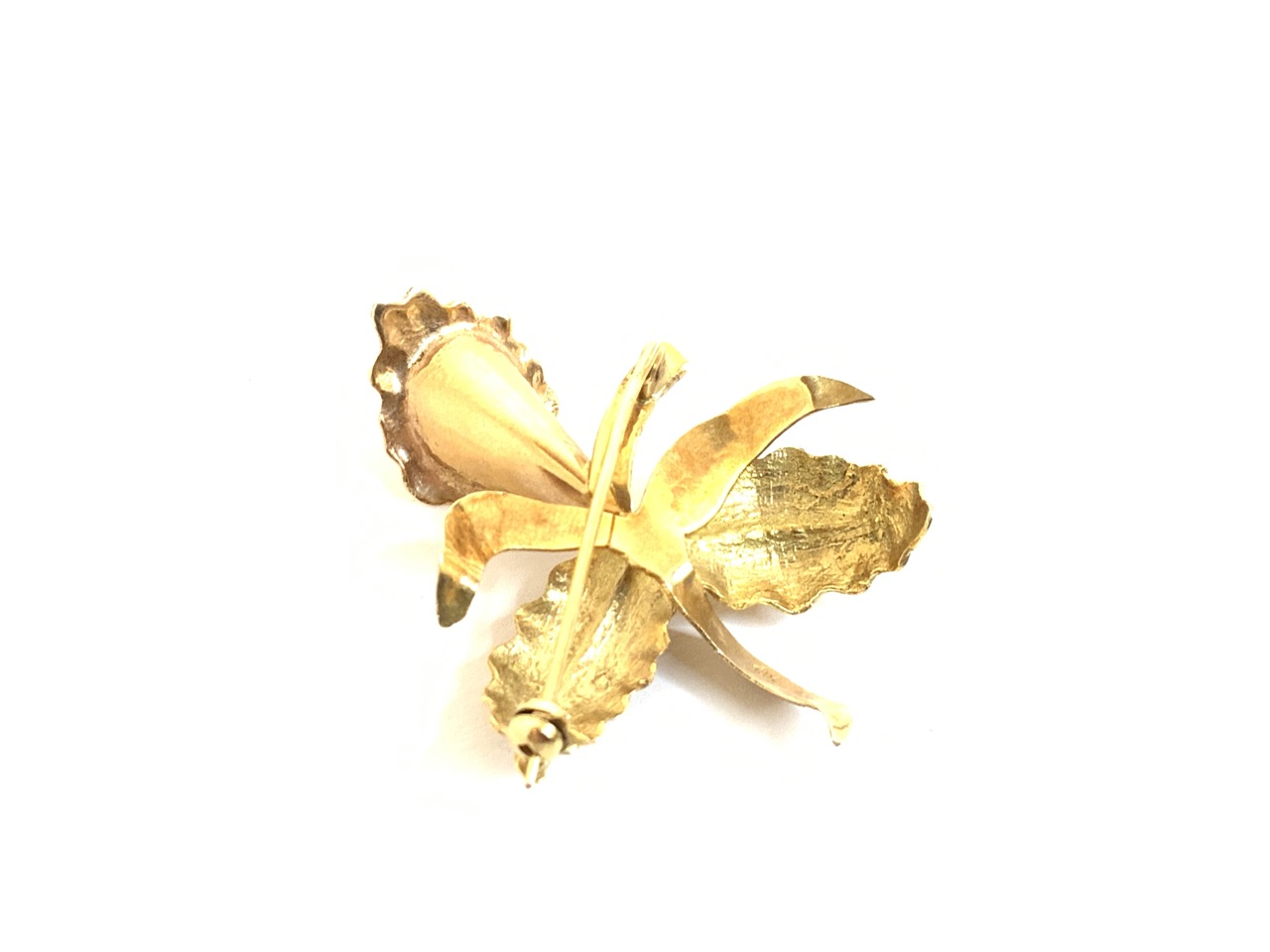 18k Yellow Gold Flower Pin With Emerald Stone.