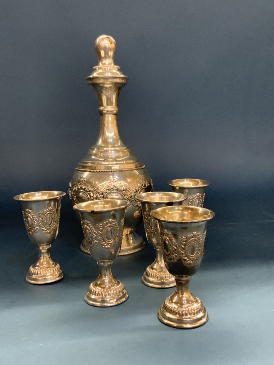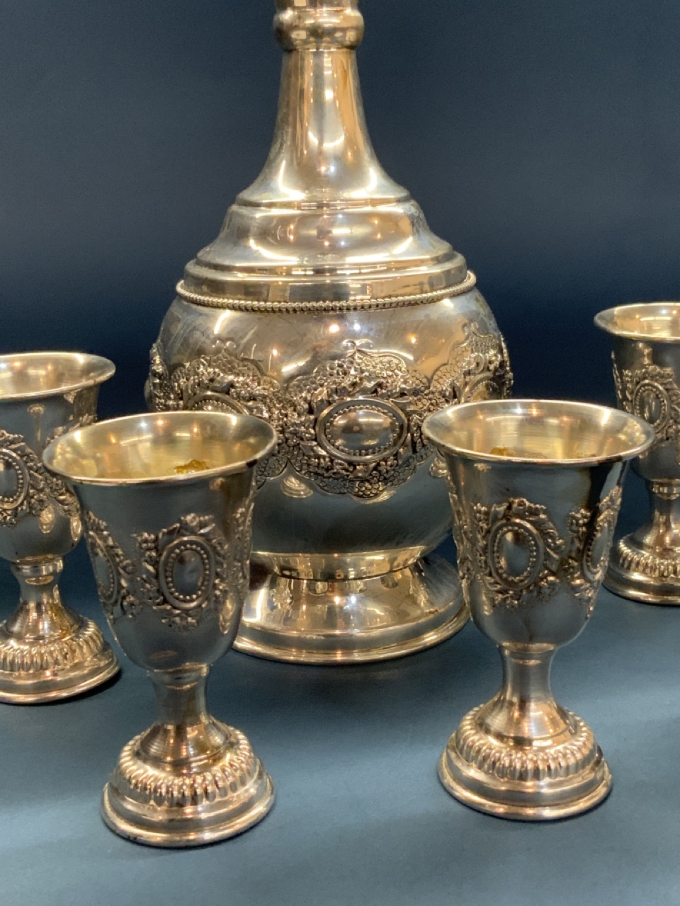 HADAD Judaica Sterling Silver 925 Wine Decanter And Five cordial cups.