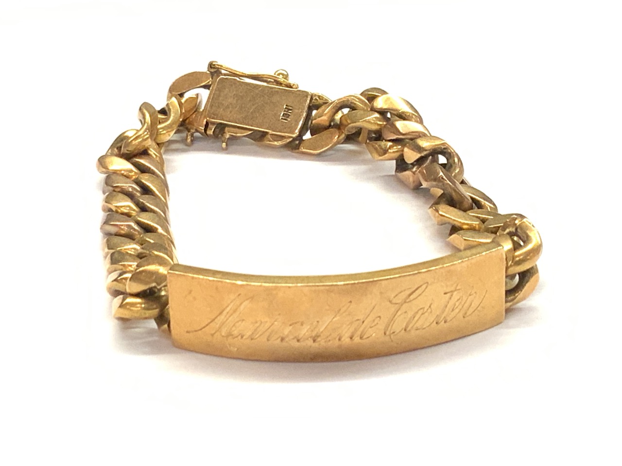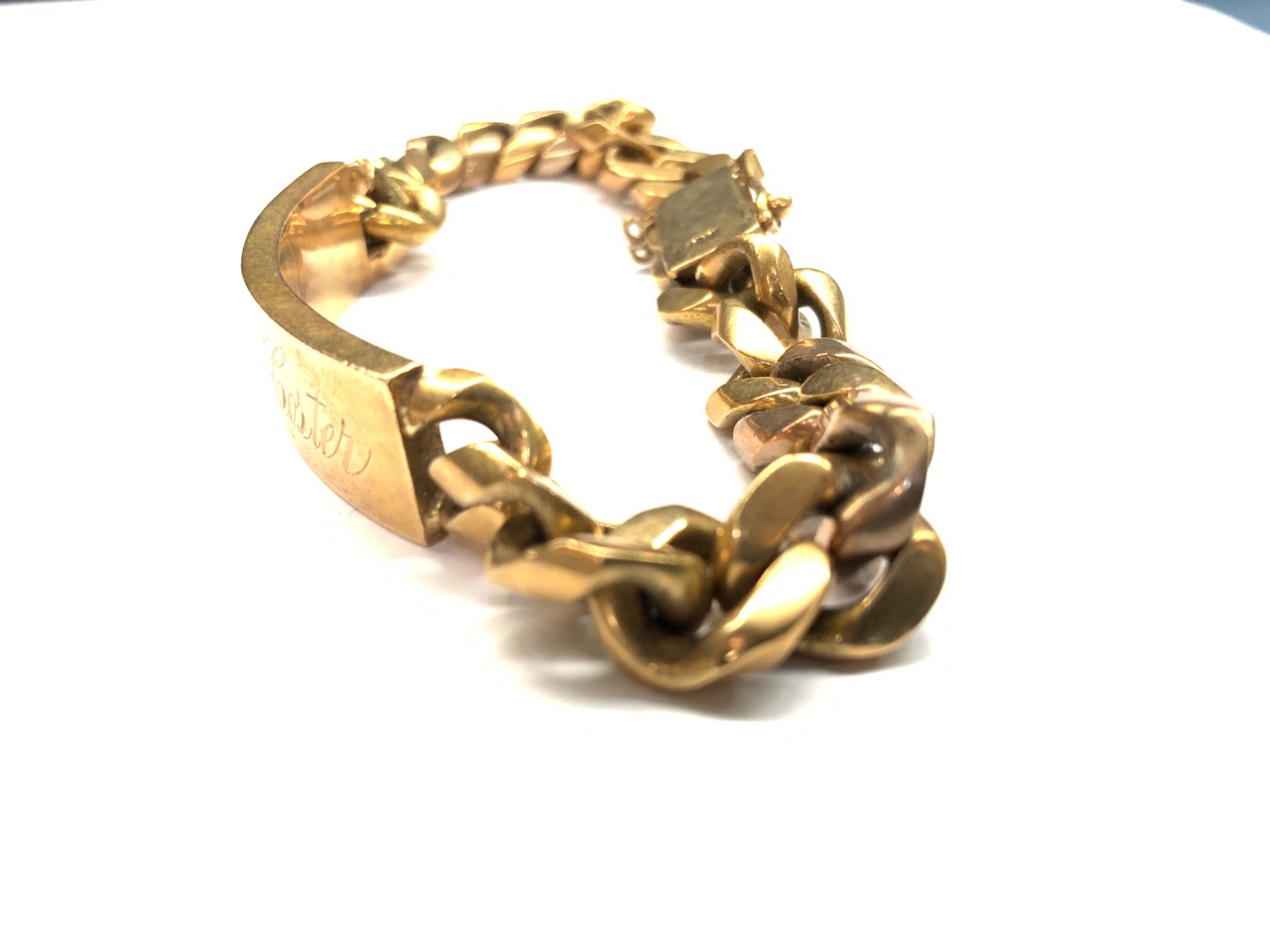 Heavy 18k yellow gold Cuban link ID bracelet.
