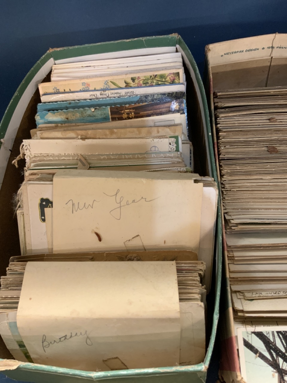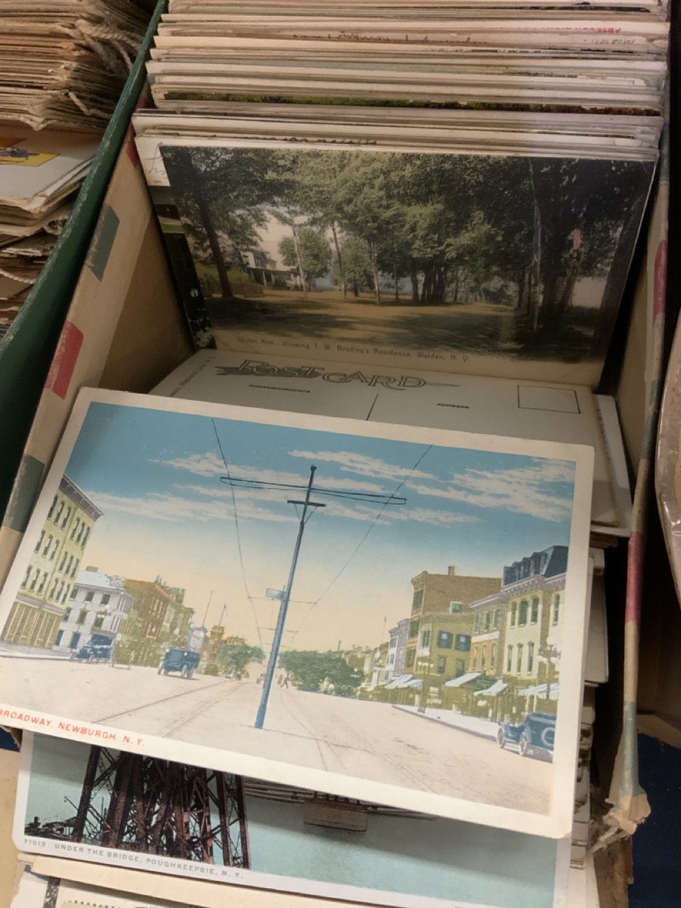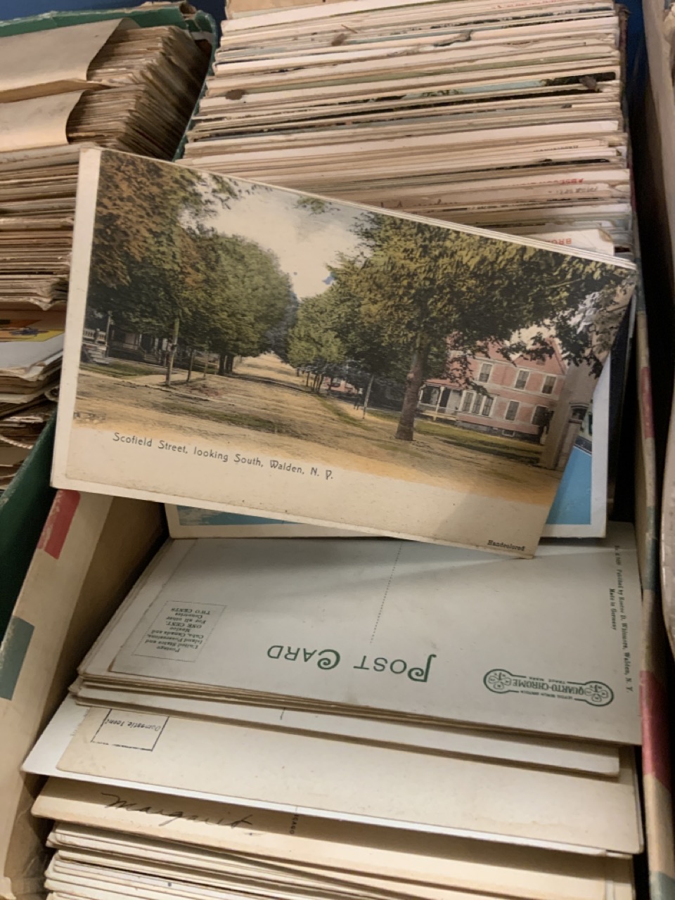 Three shoe boxes full of unsorted postcards. Internationa, Local Hudson Valley, States, Holidays and stack of CDV cards including Ulysses S. Grant , Johnson, Italian General and much more! Please sse photograph preview.