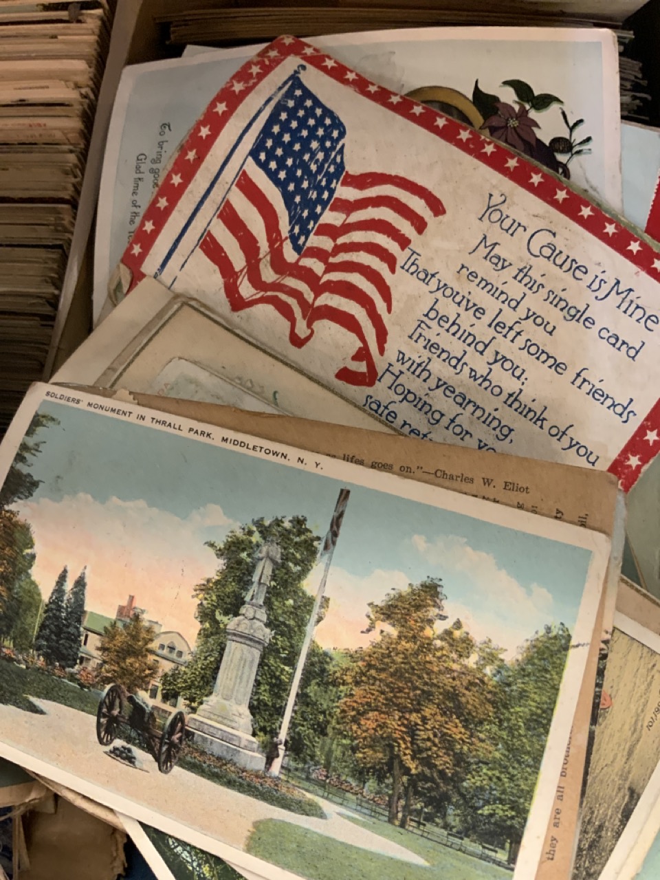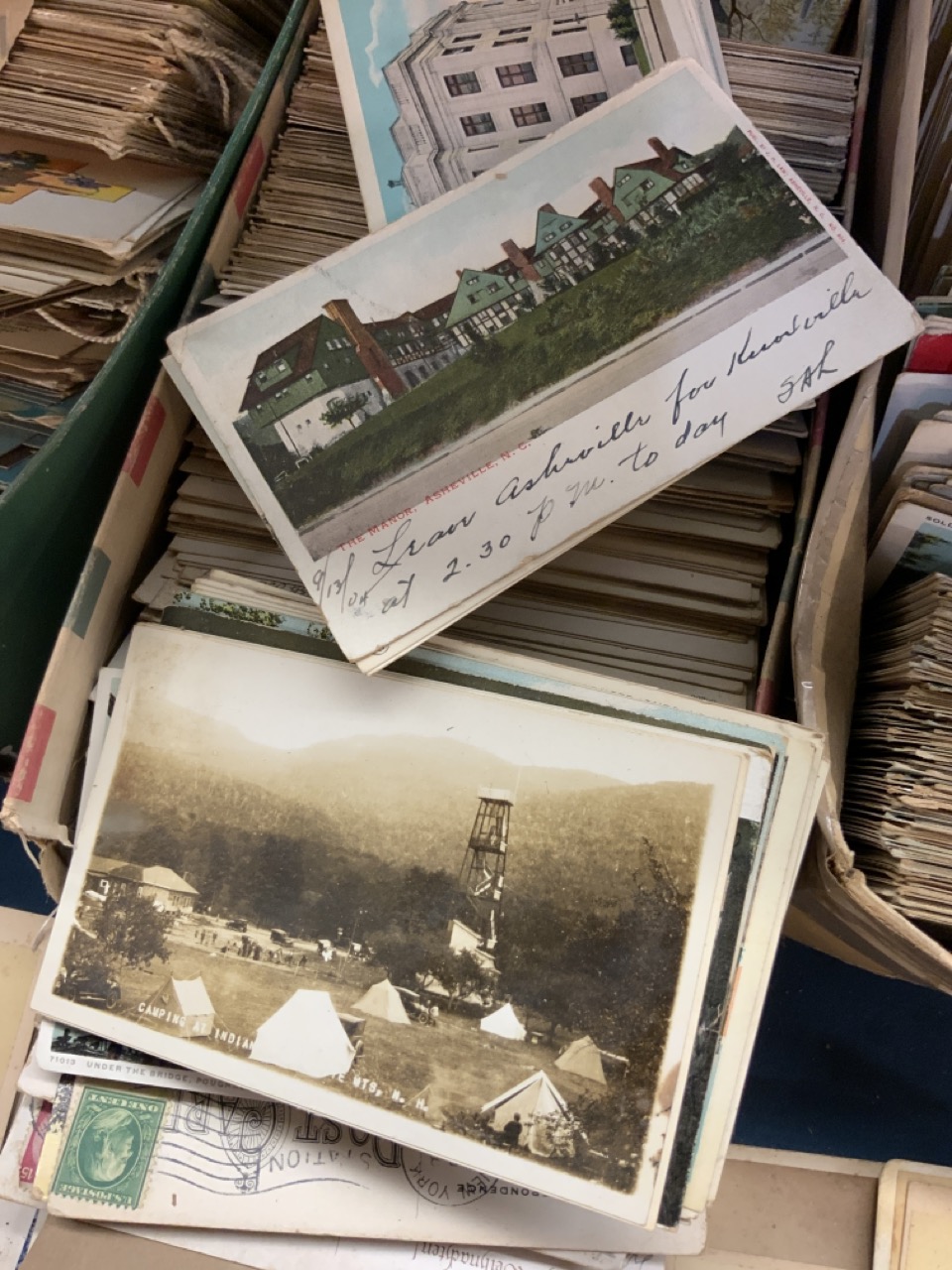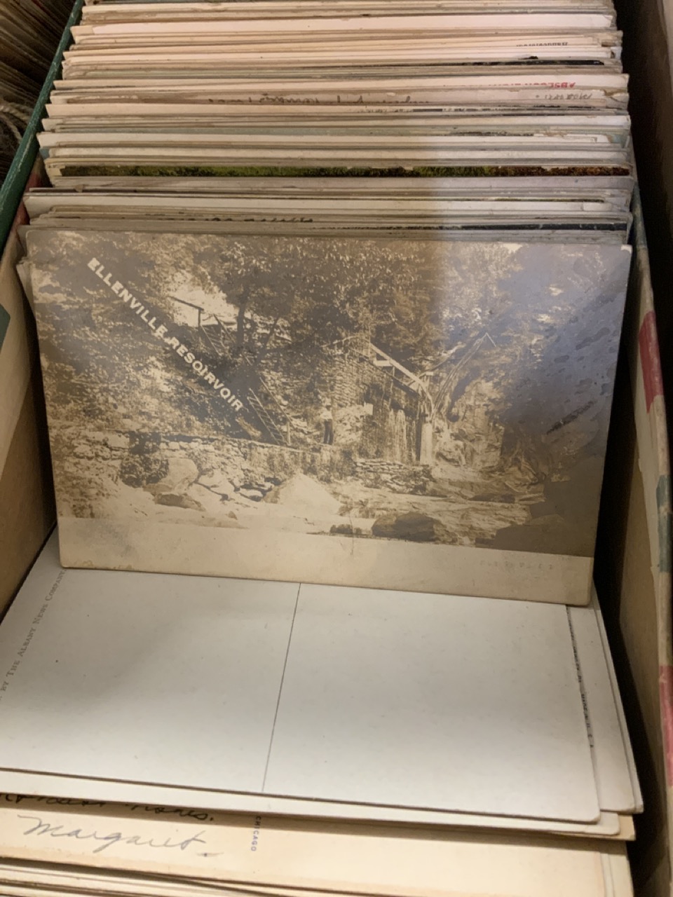 Three shoe boxes full of unsorted postcards. Internationa, Local Hudson Valley, States, Holidays and stack of CDV cards including Ulysses S. Grant , Johnson, Italian General and much more! Please sse photograph preview.