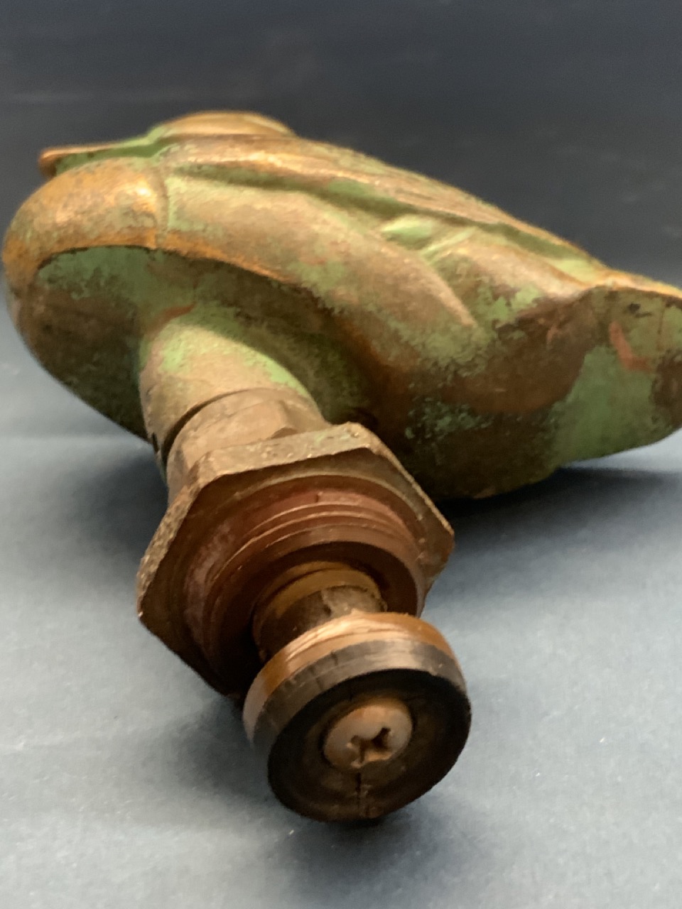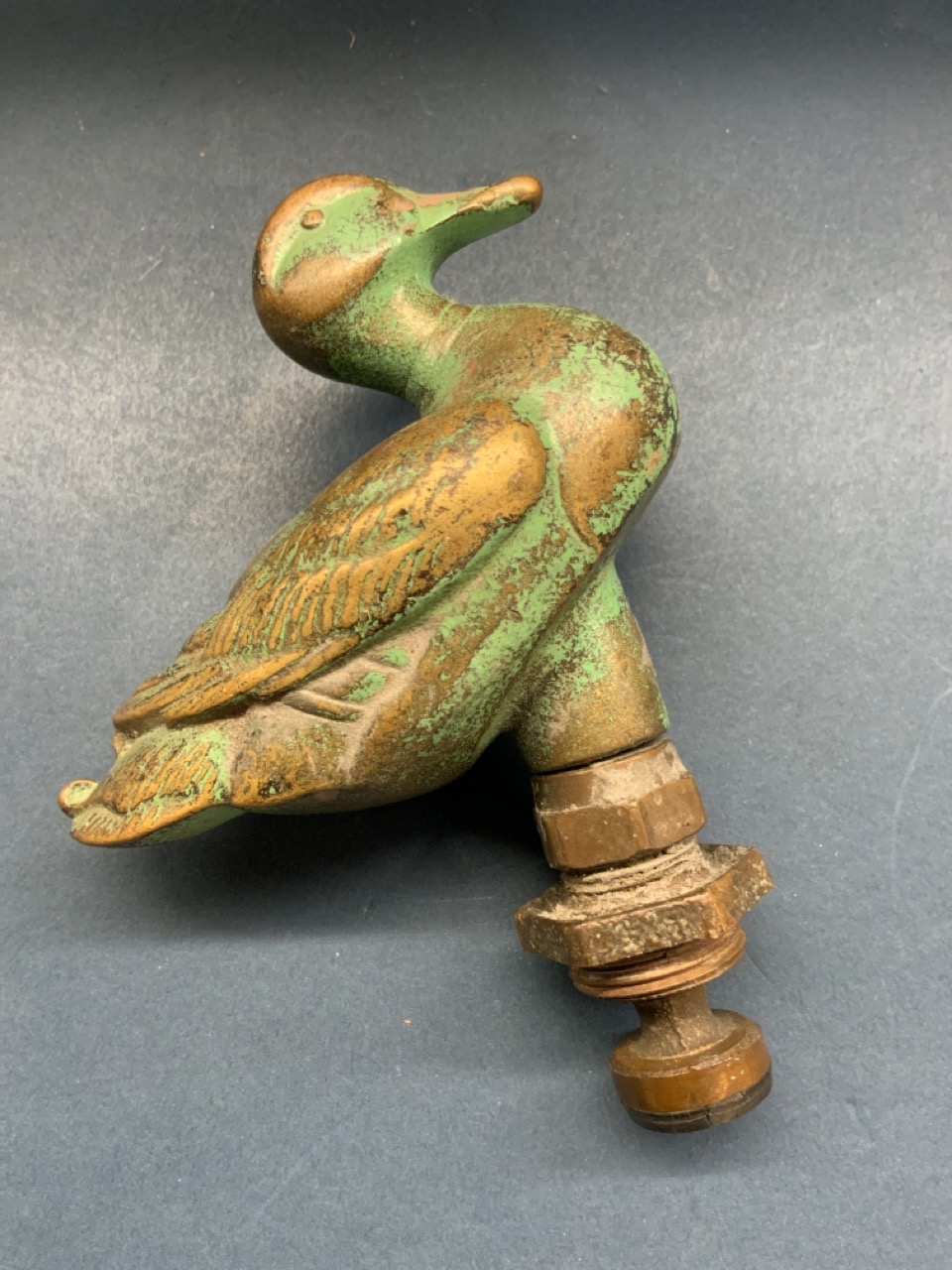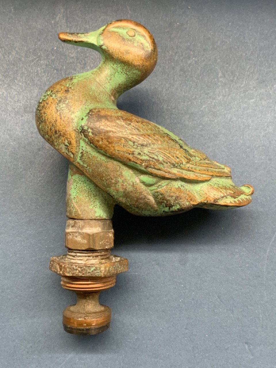 A brass duck water spicket handle knob.