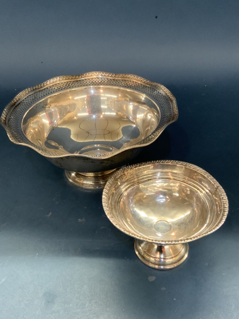 Two (2) weighted sterling silver serving bowls.
