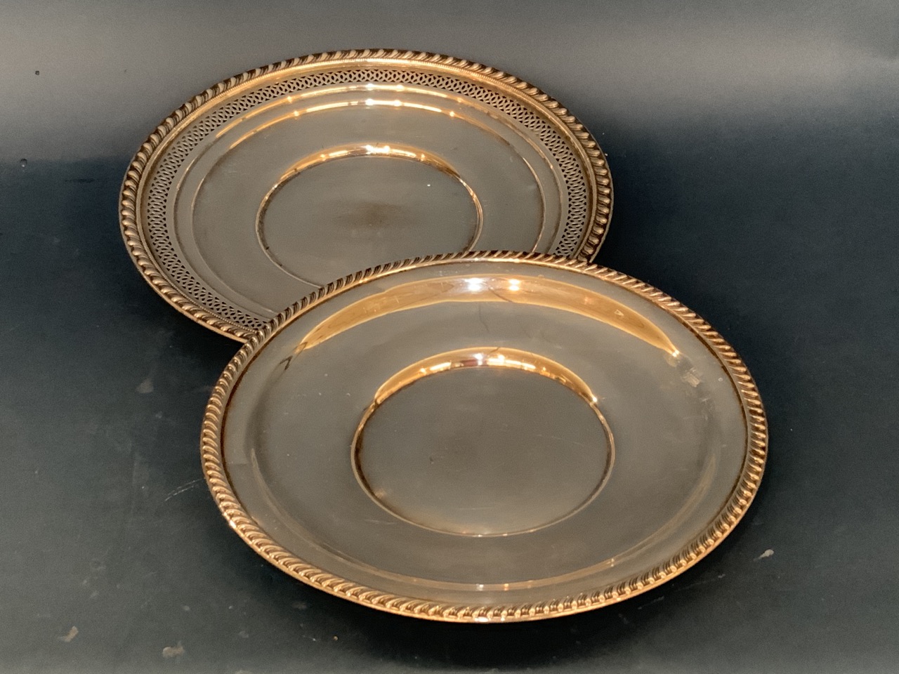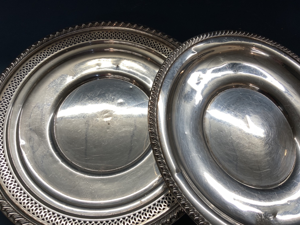 Two (2) Sterling silver serving trays.