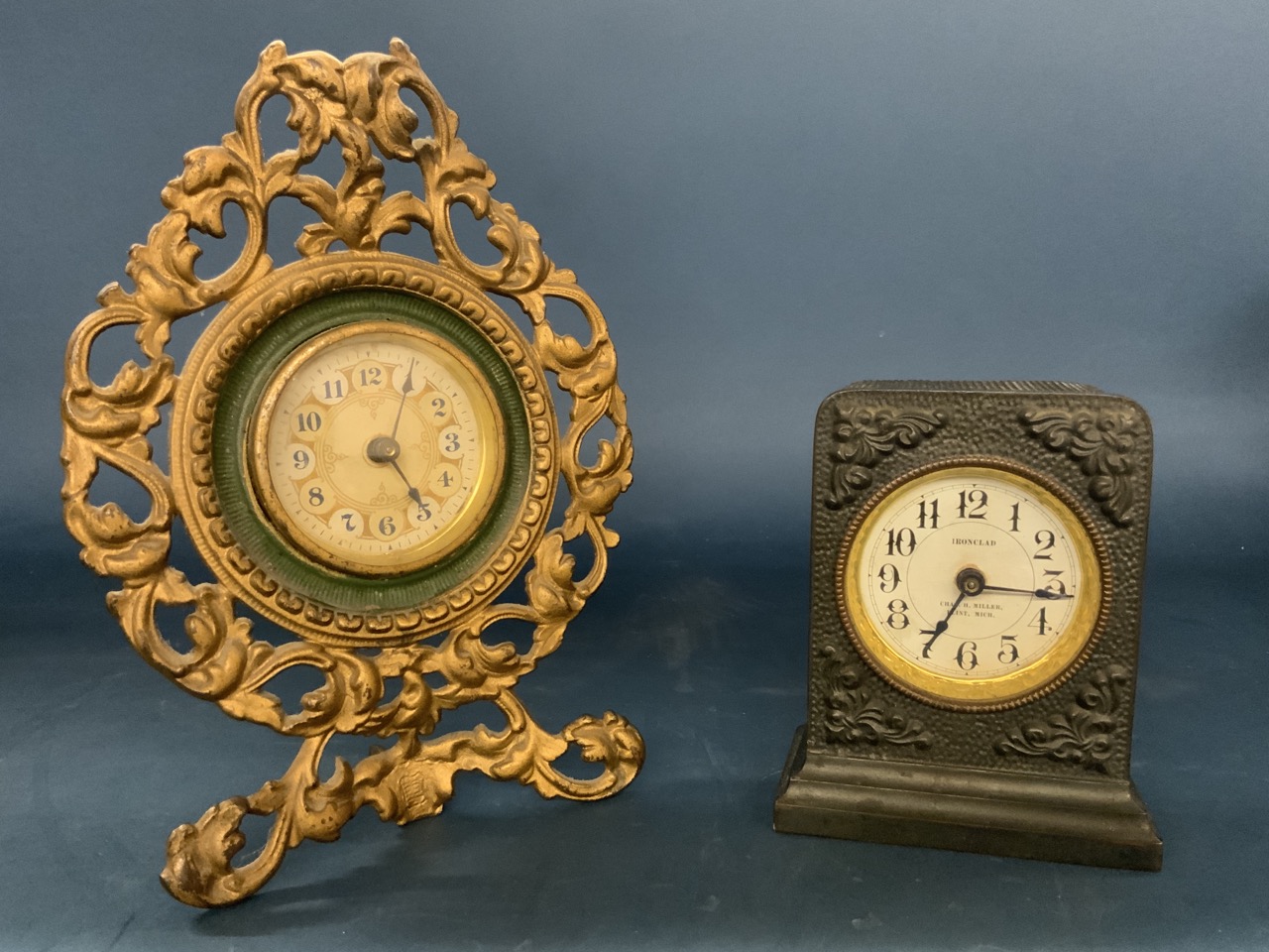 Charles H. Miller Flint Michigan by Western 5" X 4 1/4" X 2 1/2" and Easel Back Clock 9" X 7"